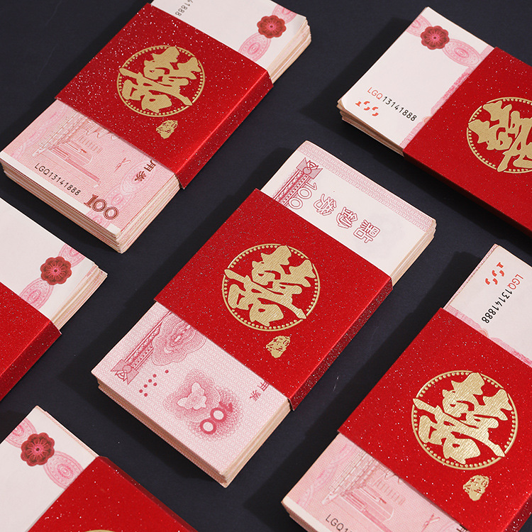 万元封喜字捆钱扎钱卡套婚喜庆用品批发结婚订婚聘金彩礼万元钱套