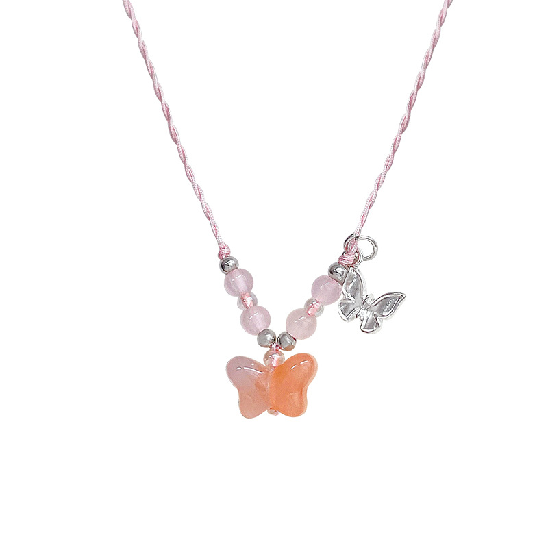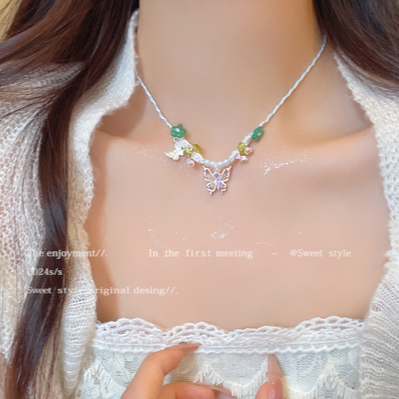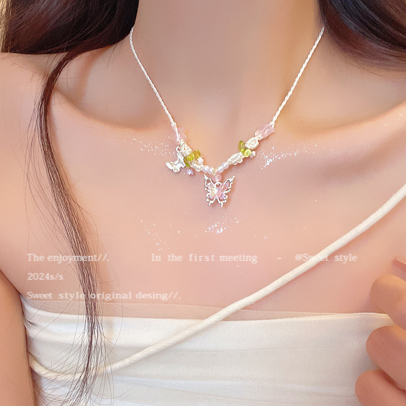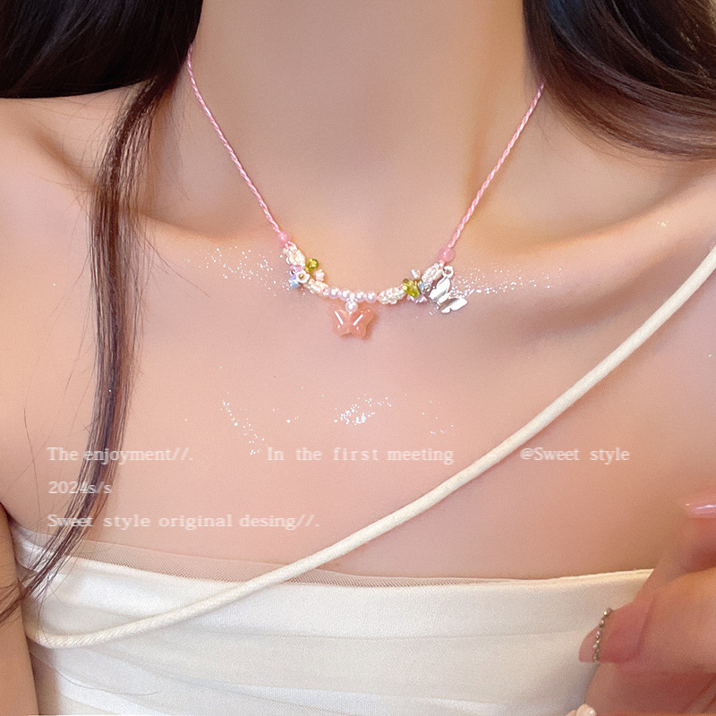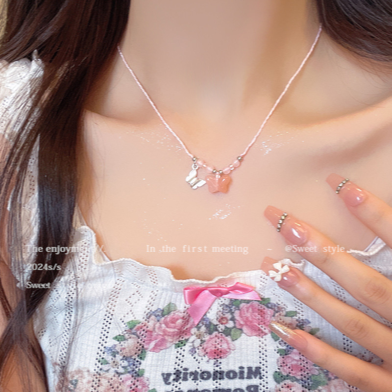 轻奢小众百搭气质锁骨链颈链小红书爆款甜美气质串珠蝴蝶项链女
