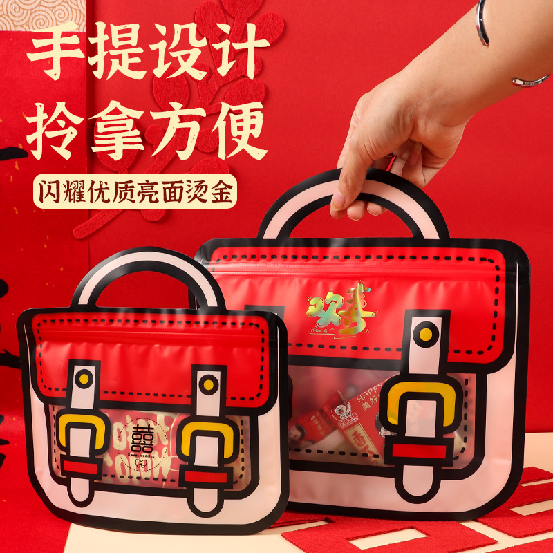 现货喜糖袋备婚结婚用品婚庆创意卡通手提自立自封喜糖包装礼品袋