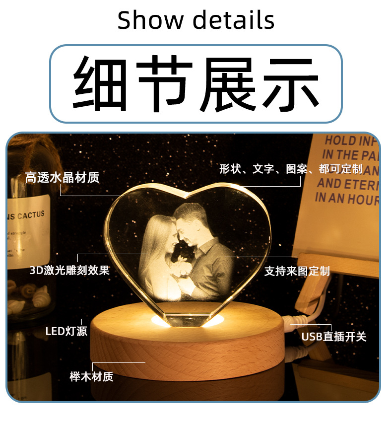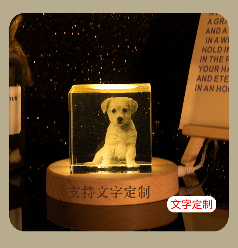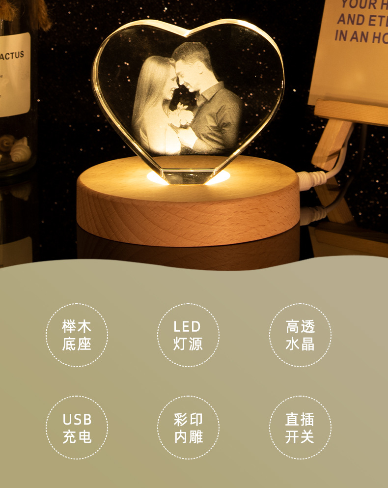 水晶3D内雕创意照片摆件DIY图案刻字情侣装饰品节日礼物书桌摆件
