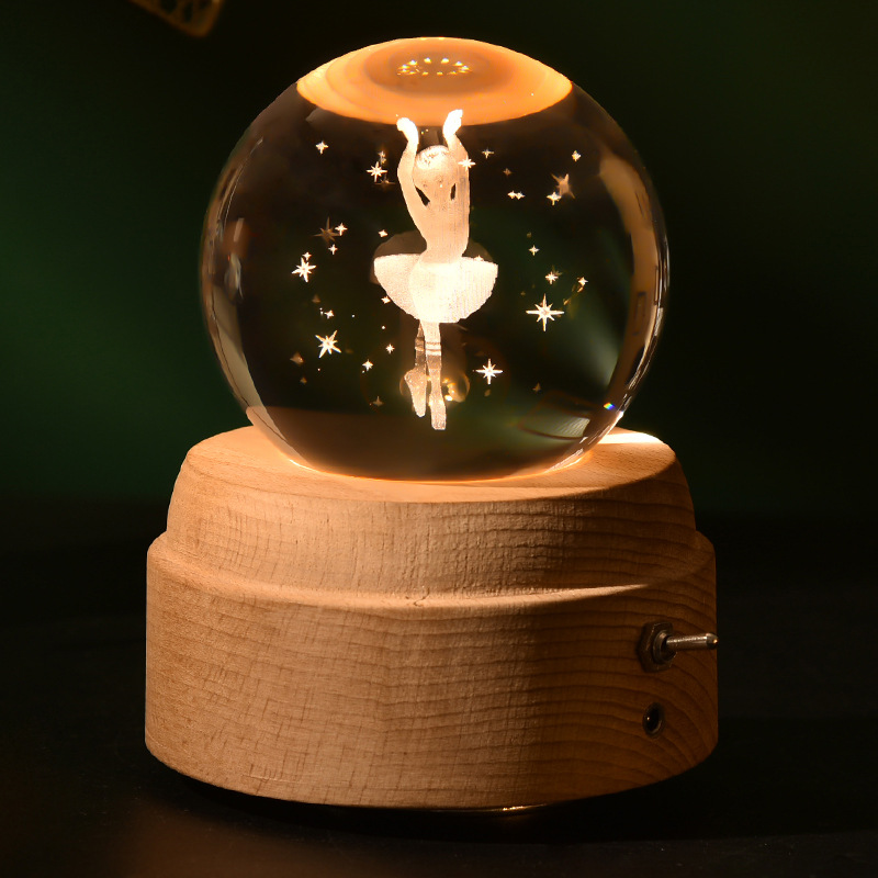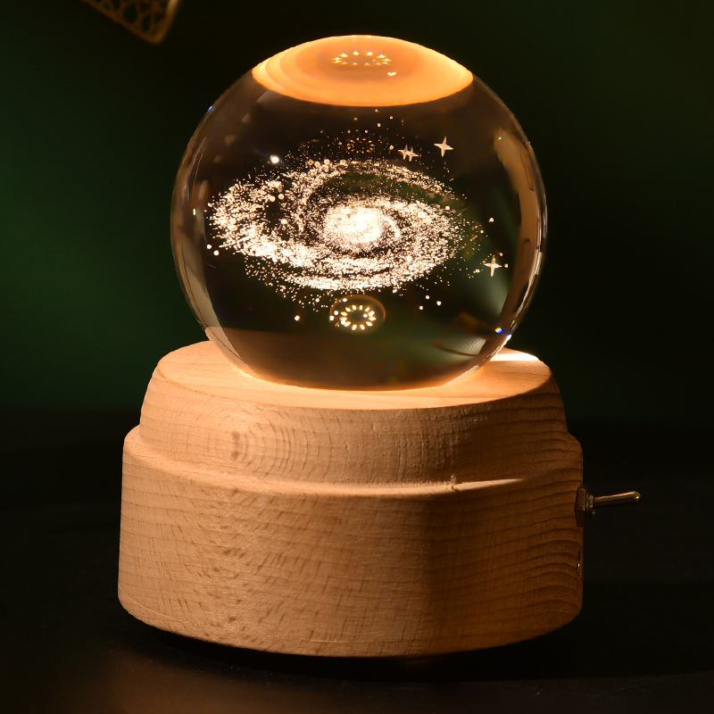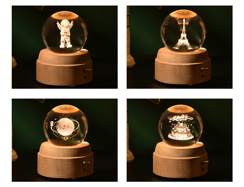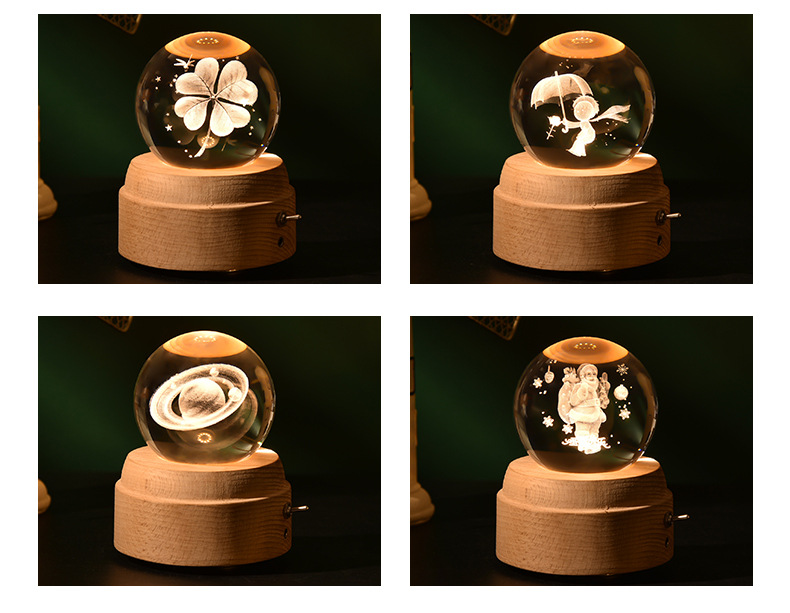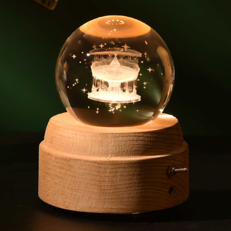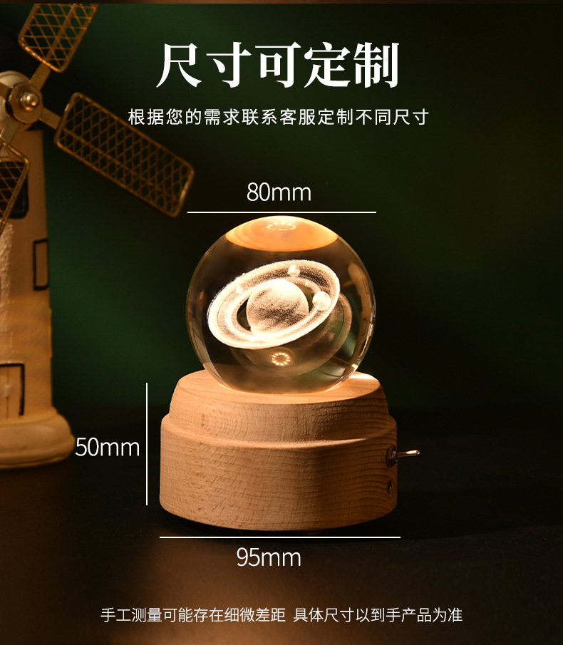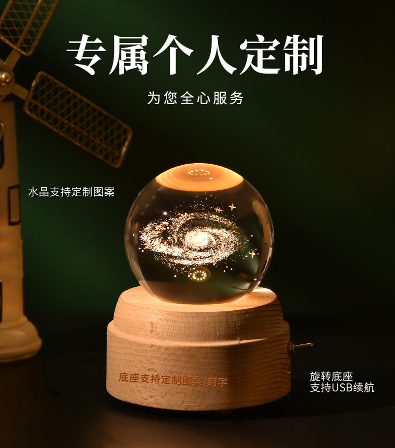 跨境发光水晶球3d内雕水晶拨动旋转八音盒创意节日礼物小夜灯跨境