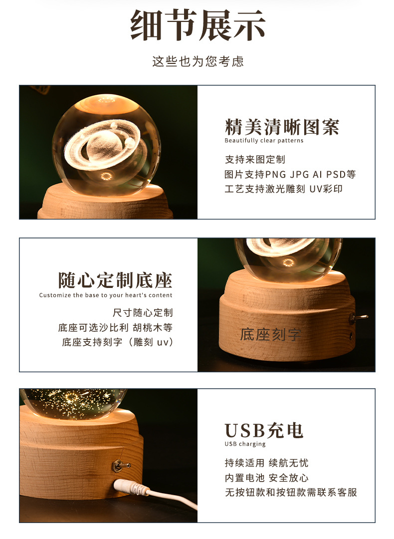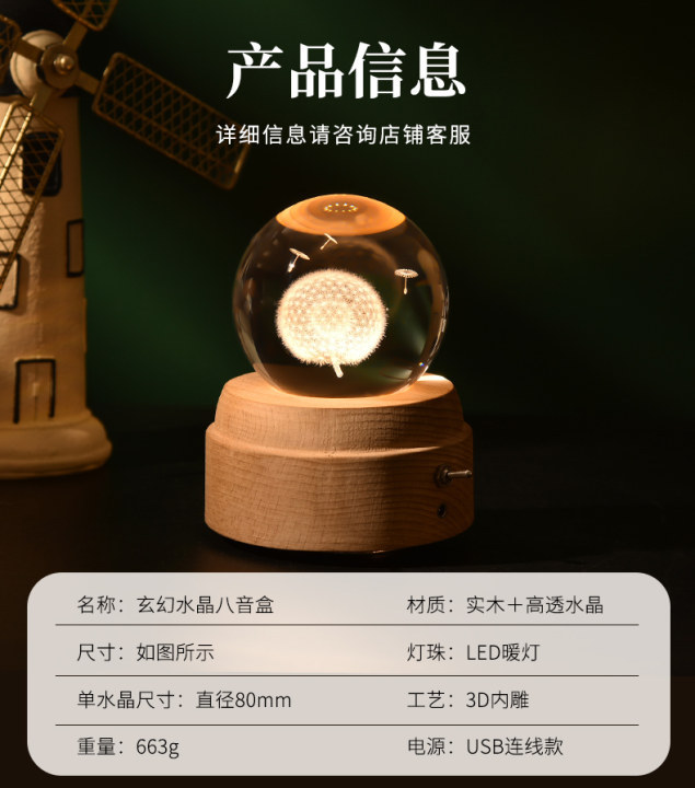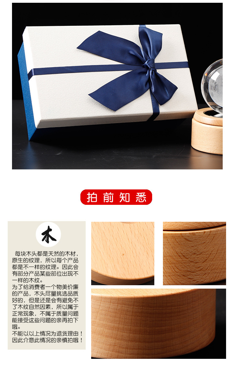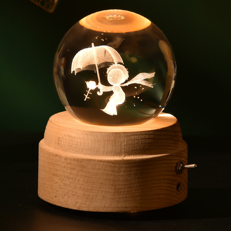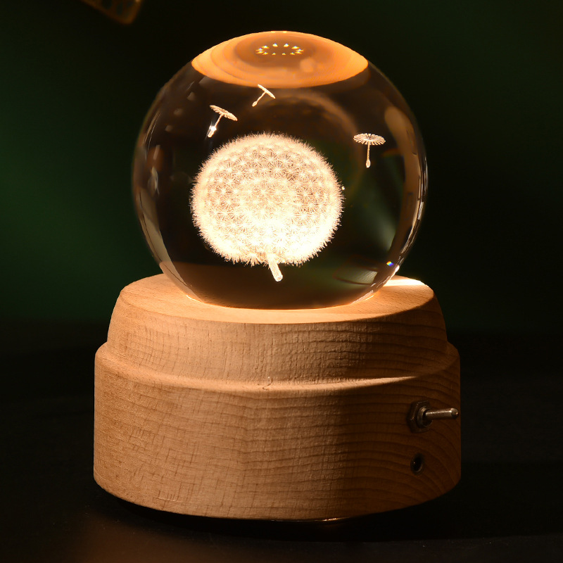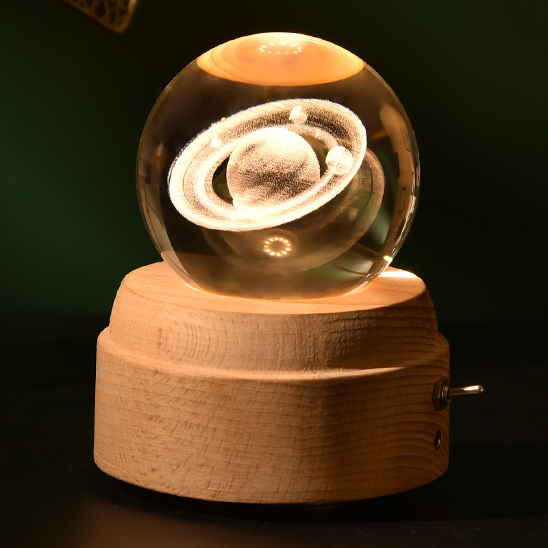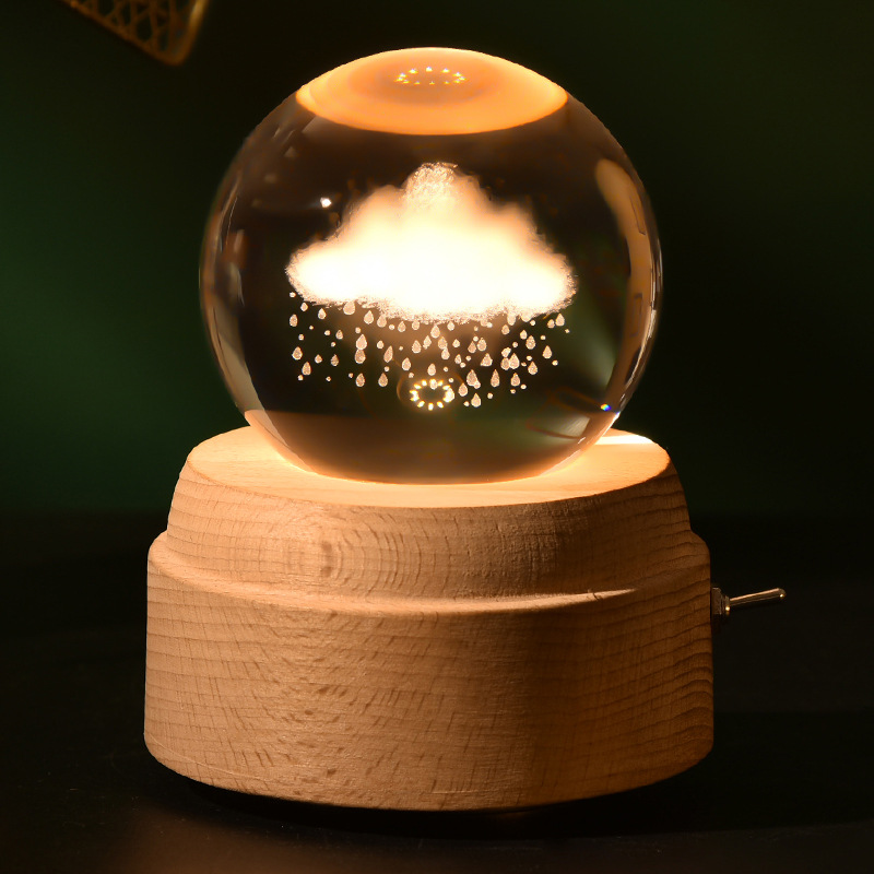 跨境发光水晶球3d内雕水晶拨动旋转八音盒创意节日礼物小夜灯跨境