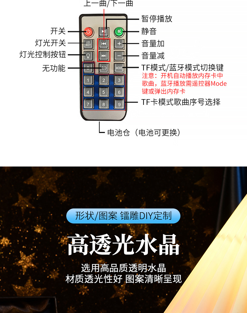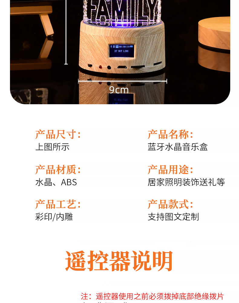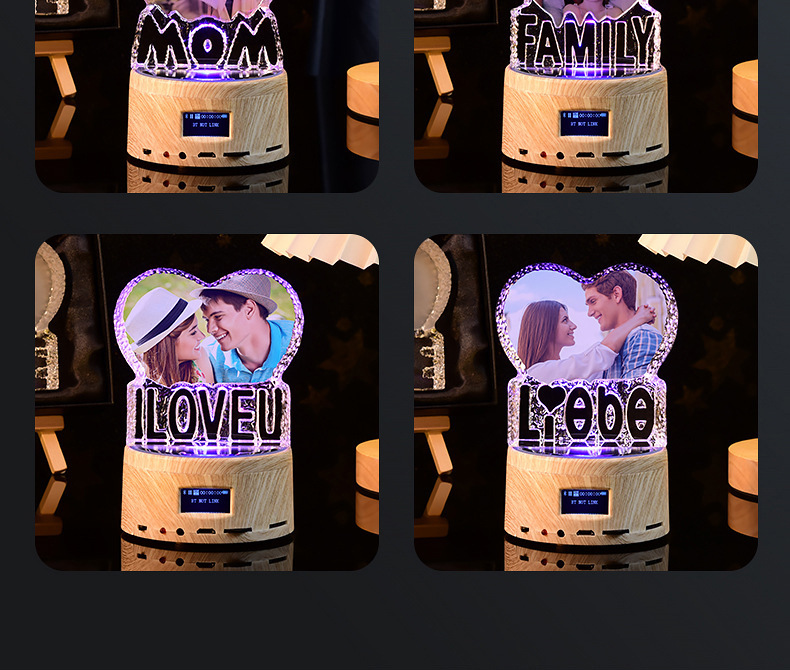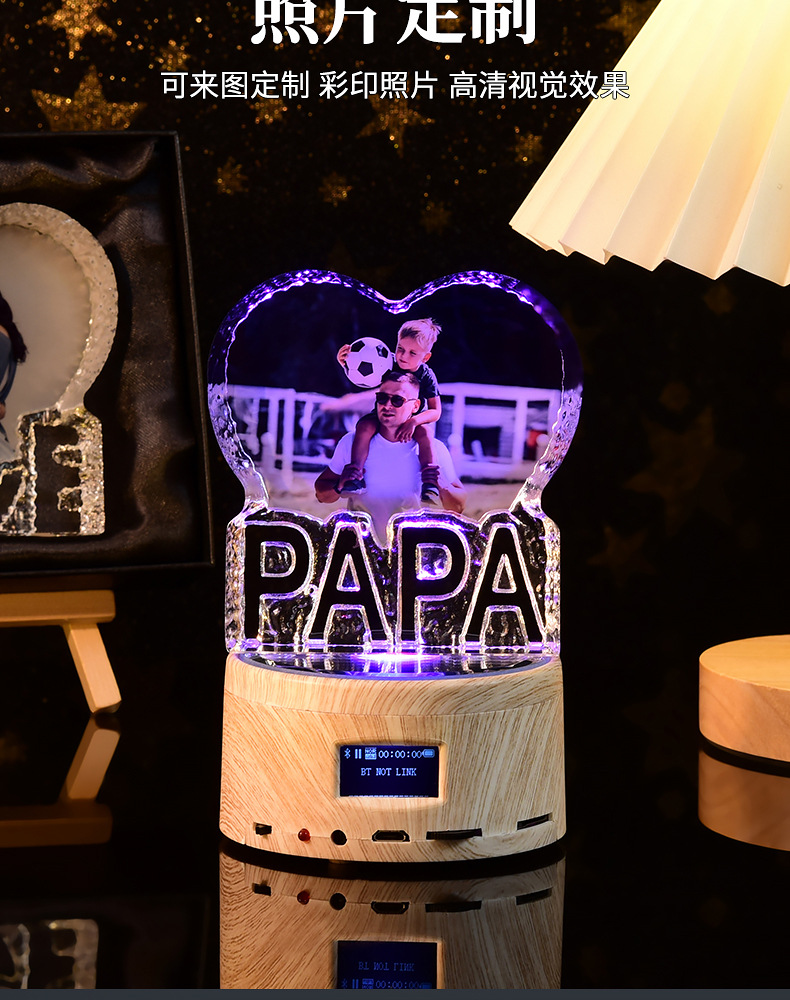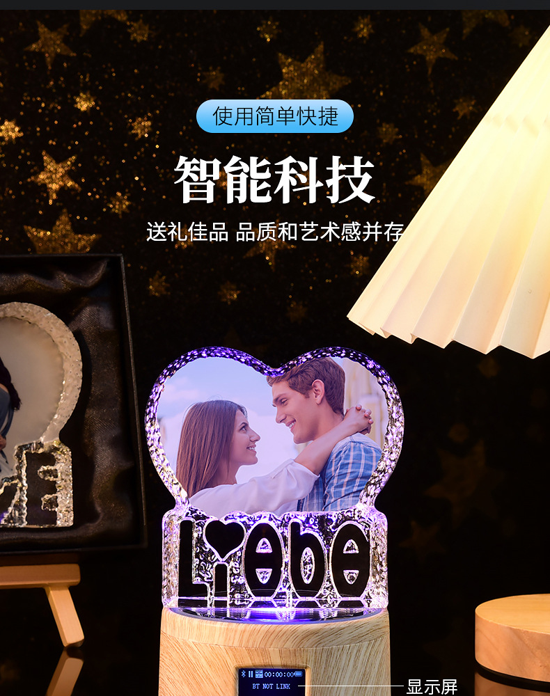 跨境水晶蓝牙音乐盒DIY照片内雕纪念品创意摆件礼品实木底座批发