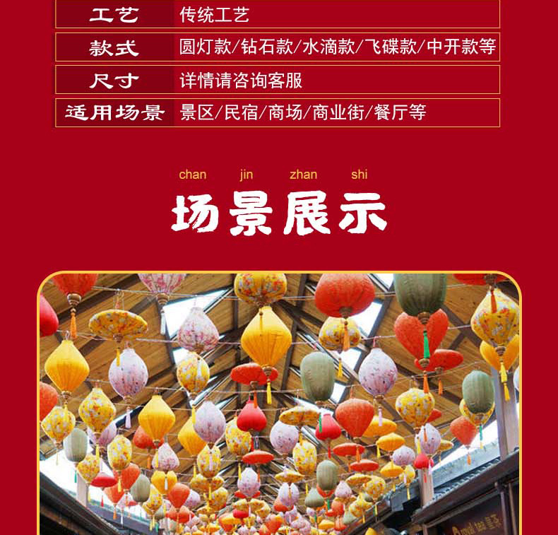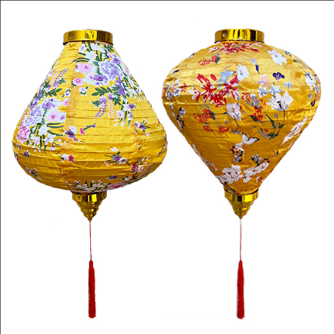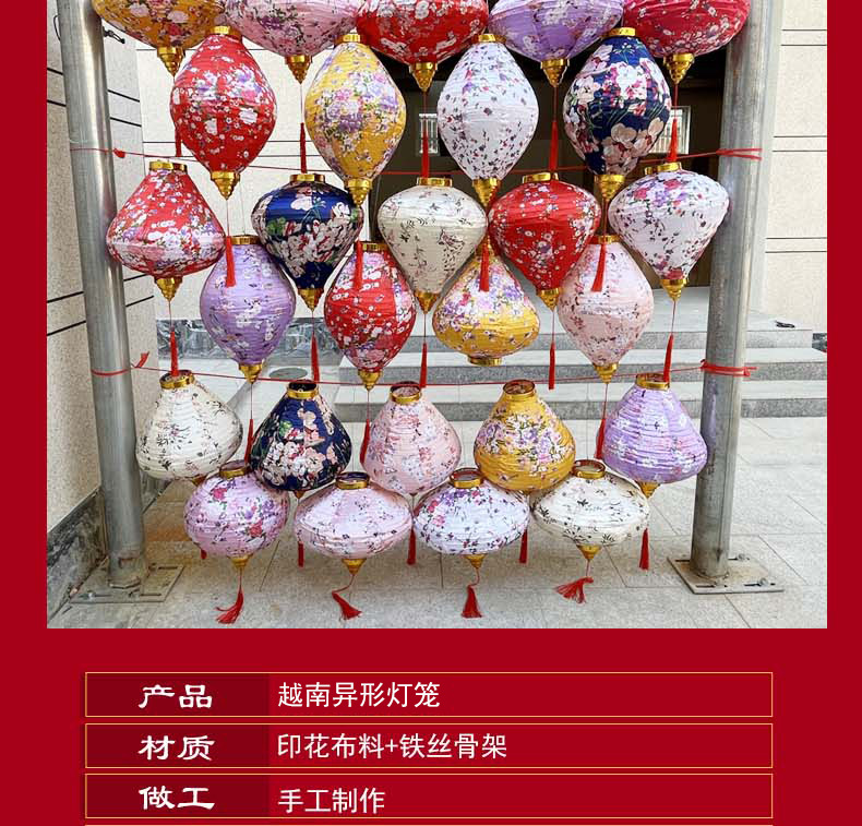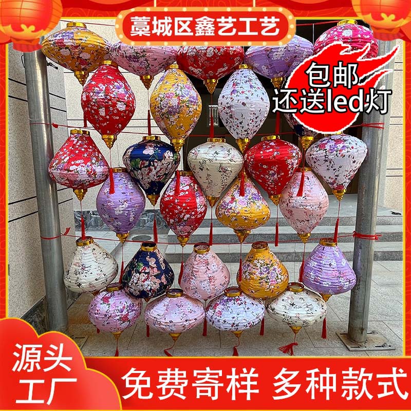 元旦花灯商业街景区夜市氛围装饰越南异形花布灯笼批发绸缎灯笼
