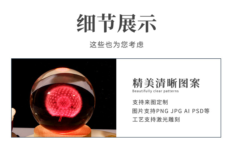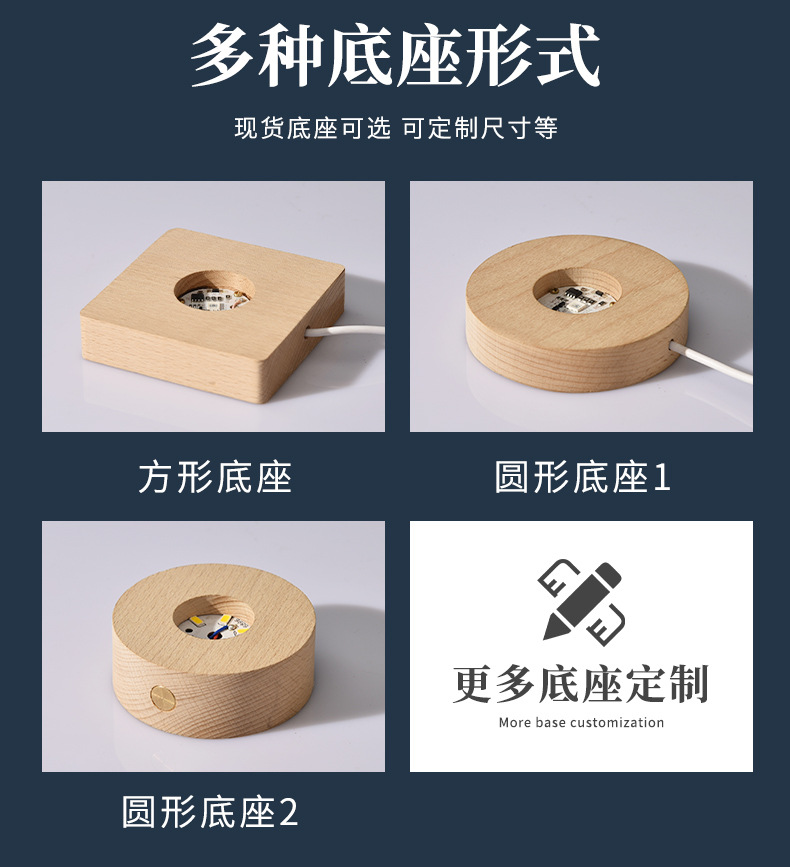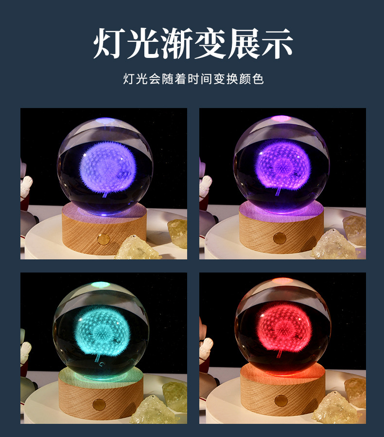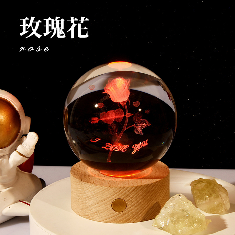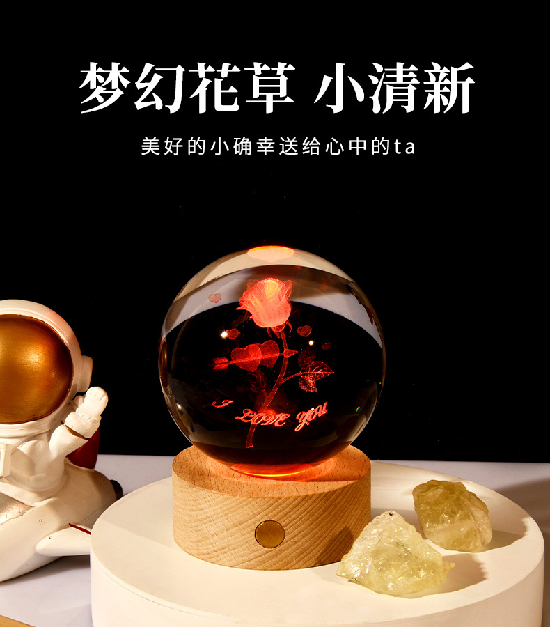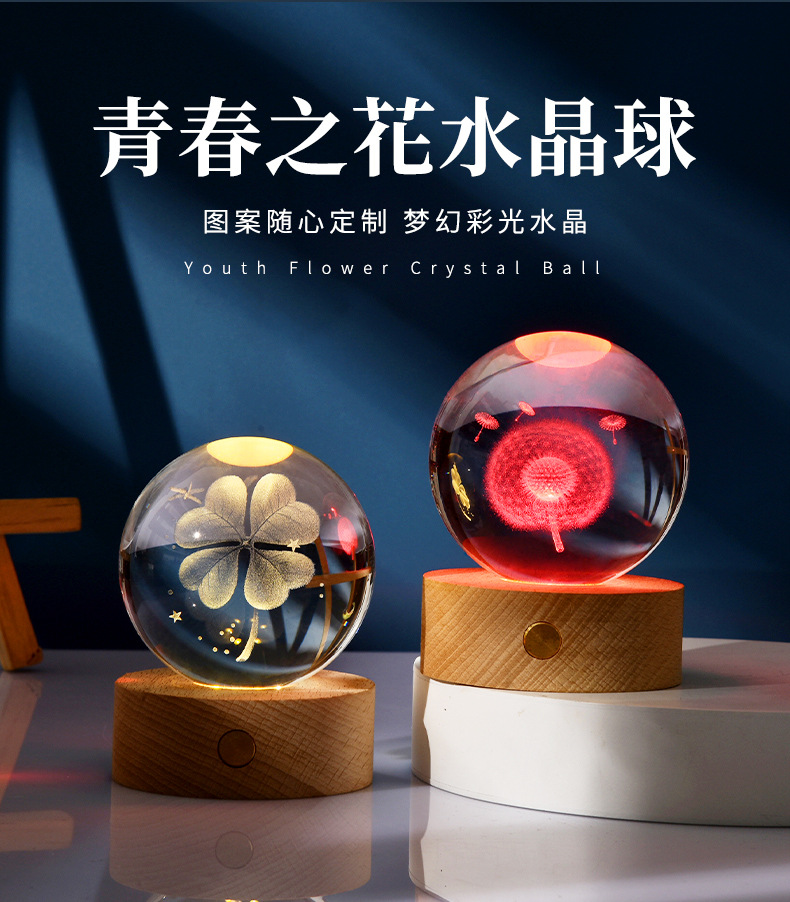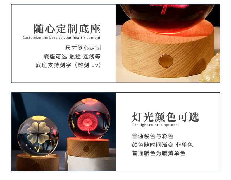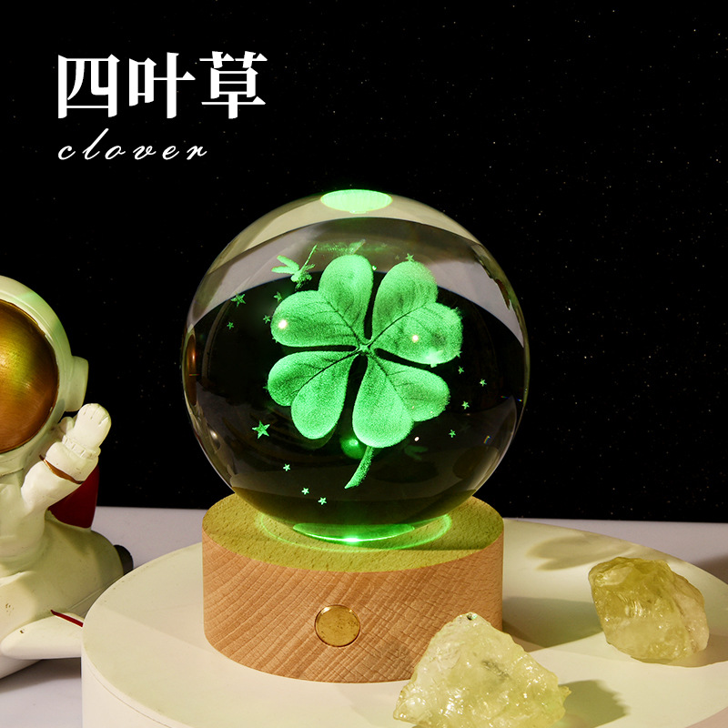 触控充电发光底座3d内雕水晶球小夜灯四叶草创意节日礼品批发跨境