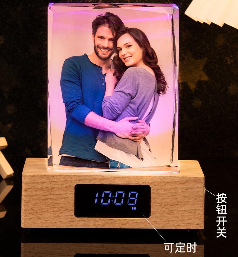 跨境水晶蓝牙音乐盒来图定制照片人像彩印新婚礼物节日纪念品摆件