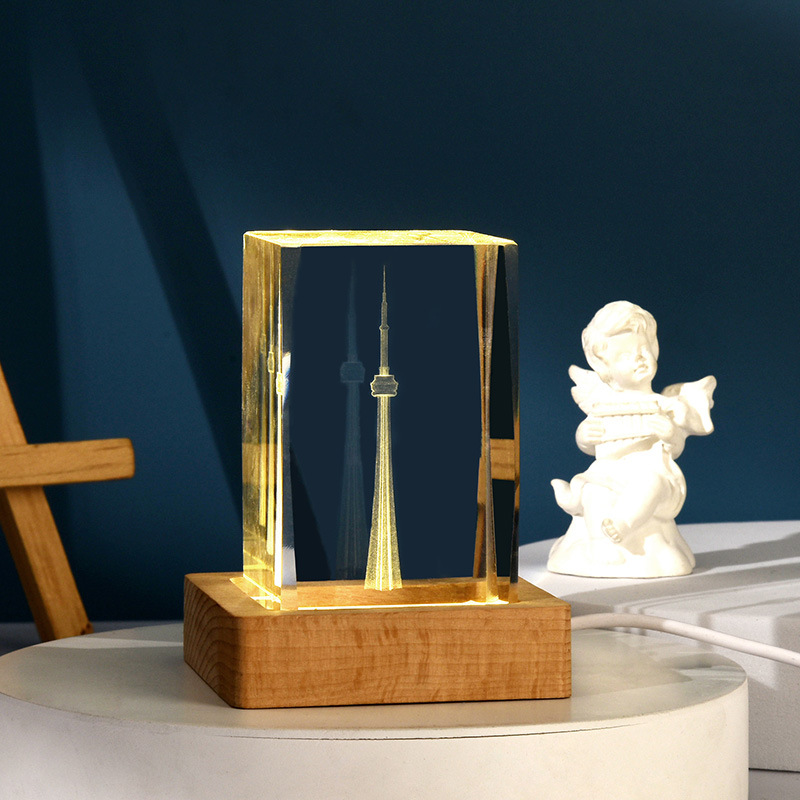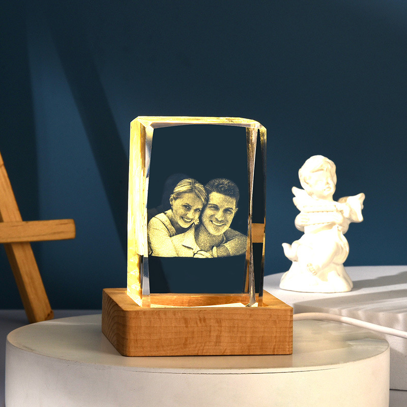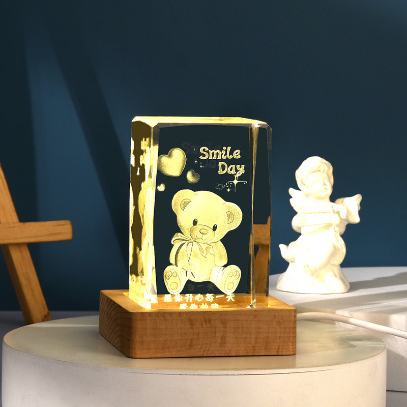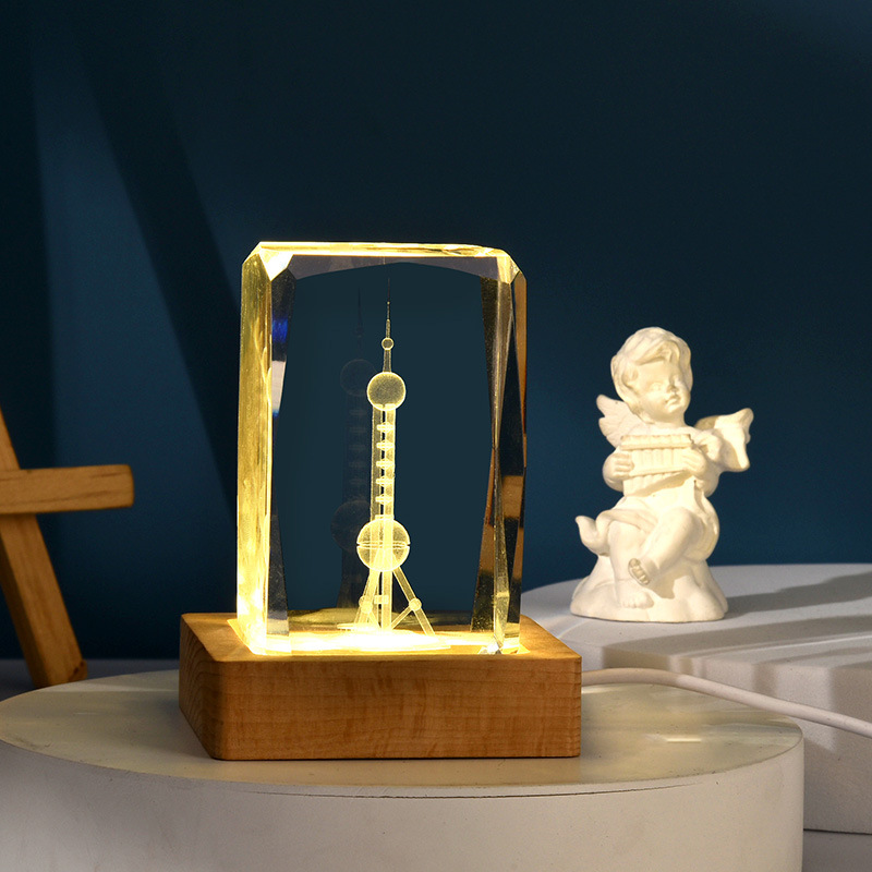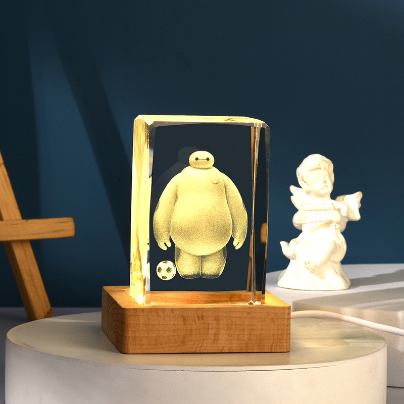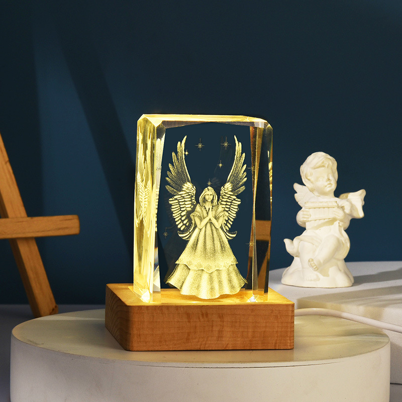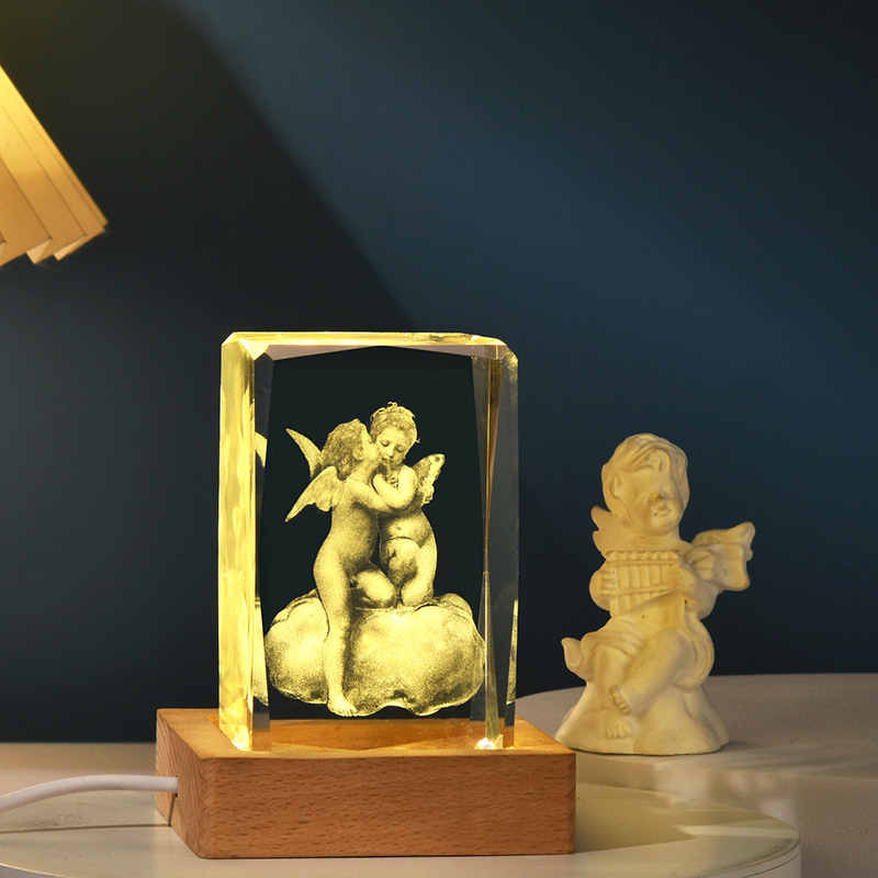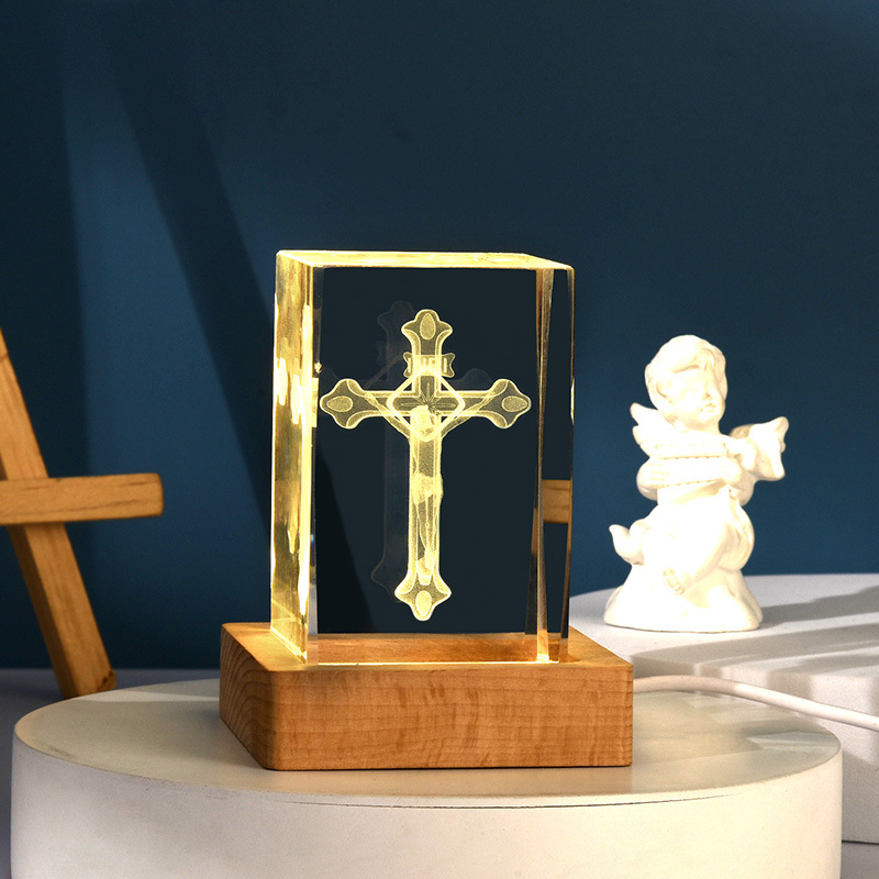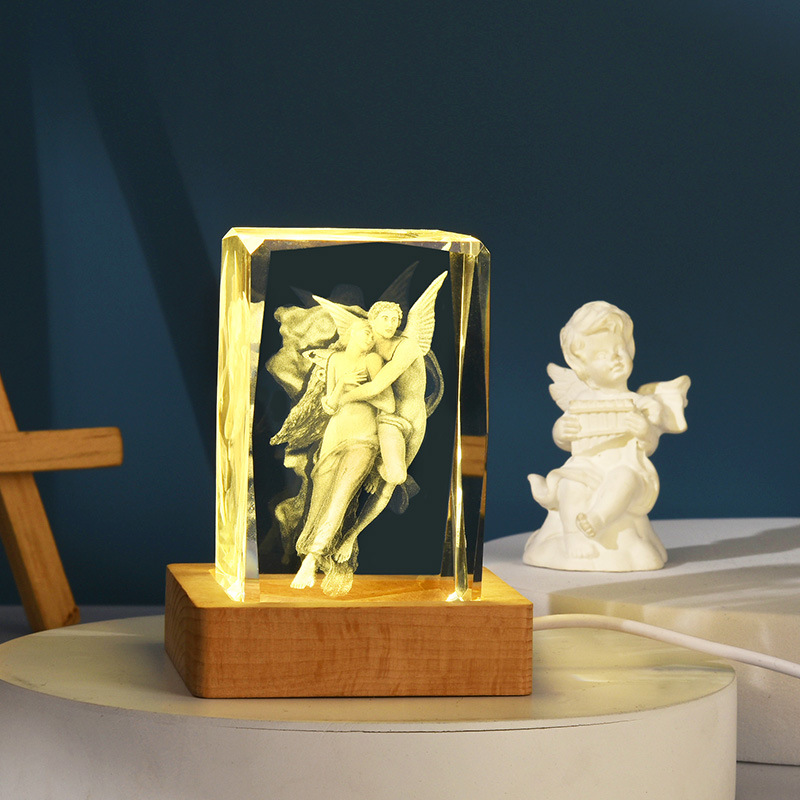 佛像雕像方体水晶摆件木制底座带LED灯充电款USB连线款发光摆件
