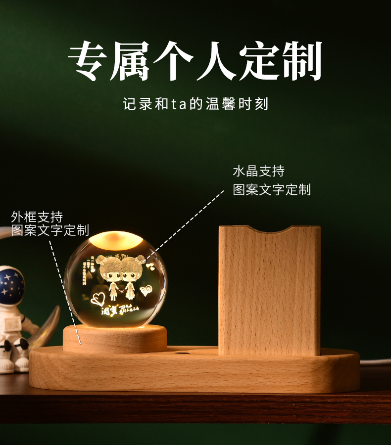 高档水晶内雕发光摆件工艺品带灯带底座创意送礼老师男女朋友礼品