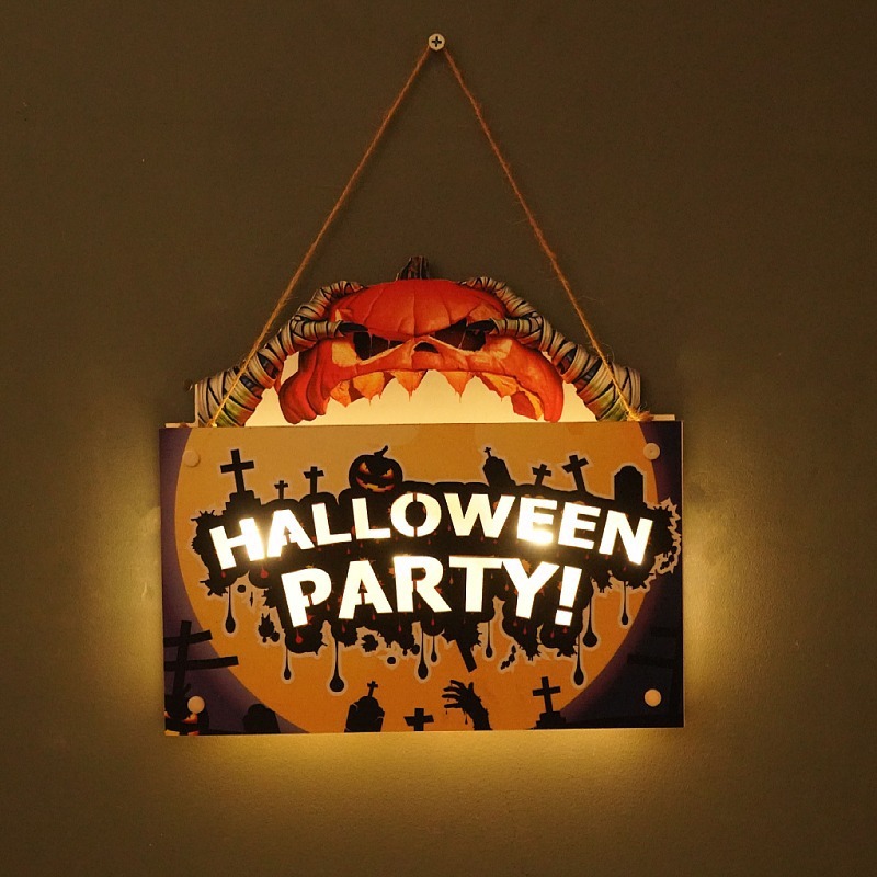 外贸专供新款万圣节恐怖幽灵鬼木质门牌挂摆件道具南瓜灯工艺品