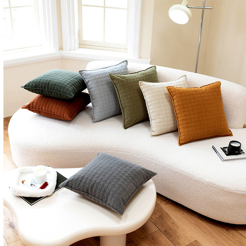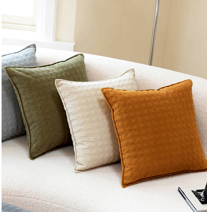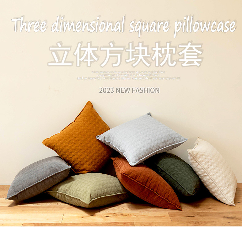 纯色绗缝抱枕套磨砂绒加厚靠垫套立体方块沙发北欧简约靠背套批发