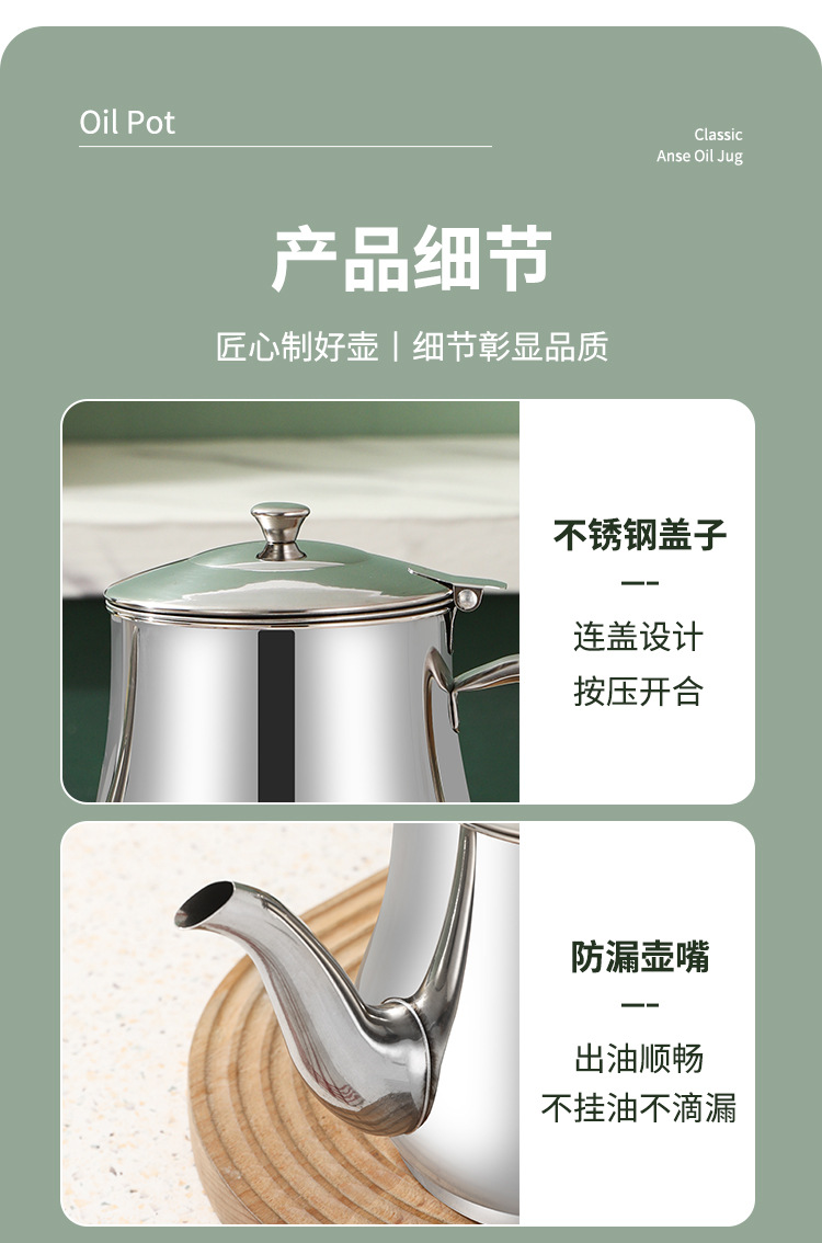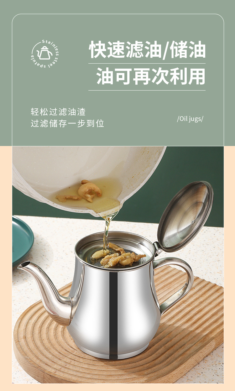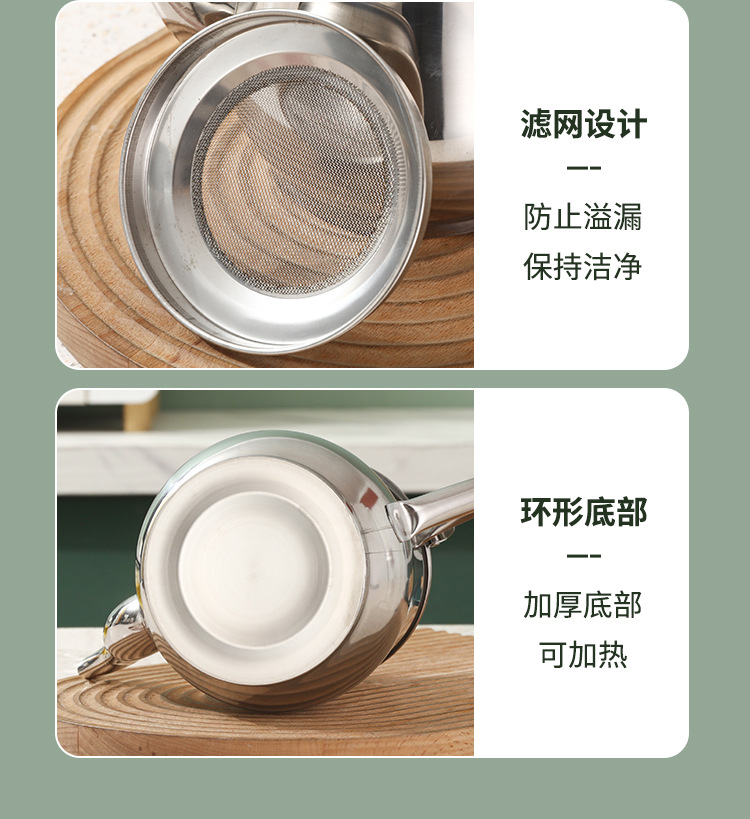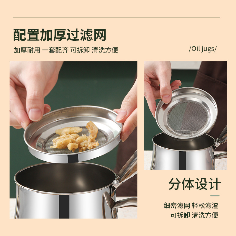 不锈钢油壶安士壶家用储油过滤带滤网大号油罐油瓶厨房多用酱醋壶
