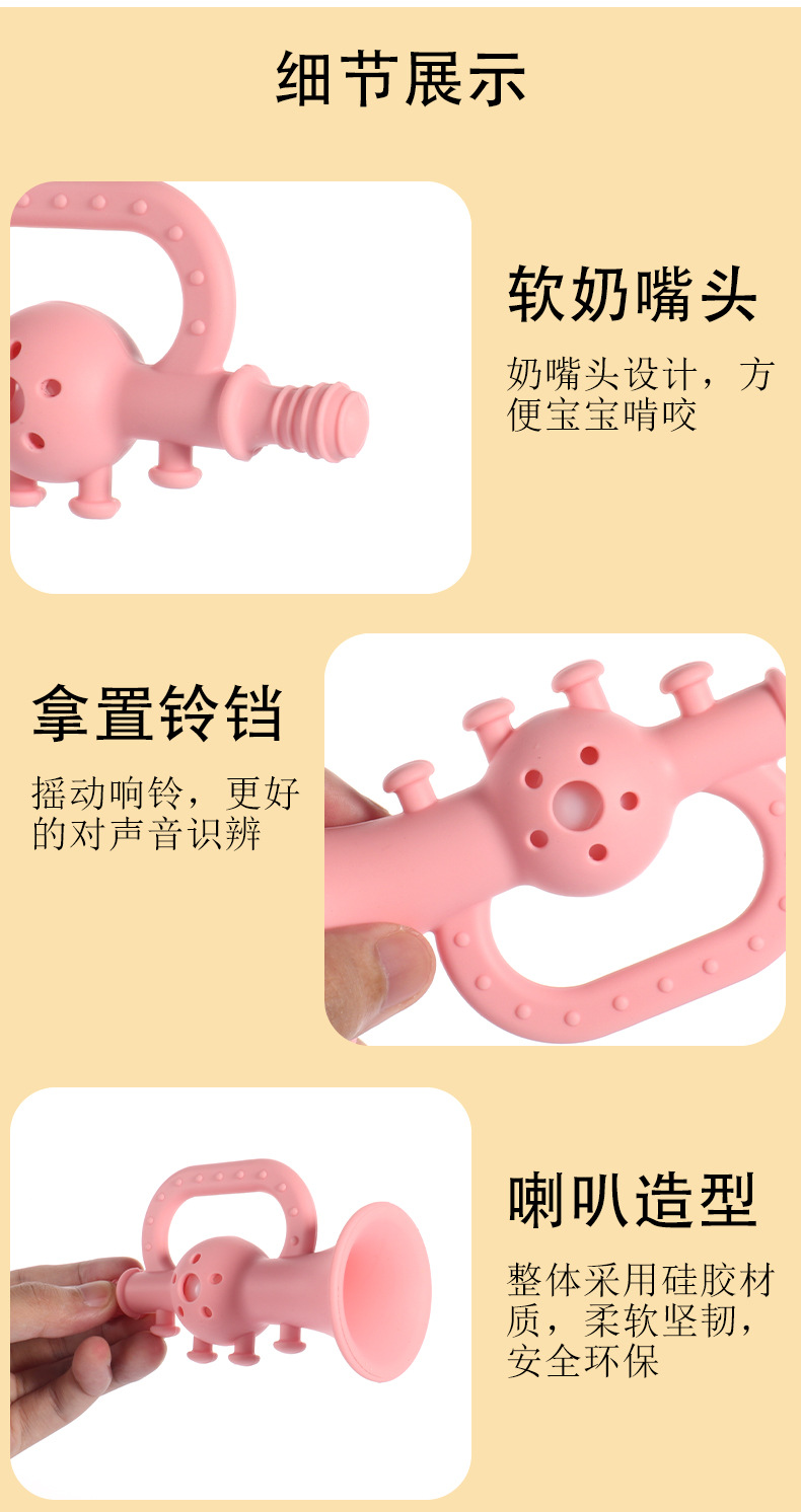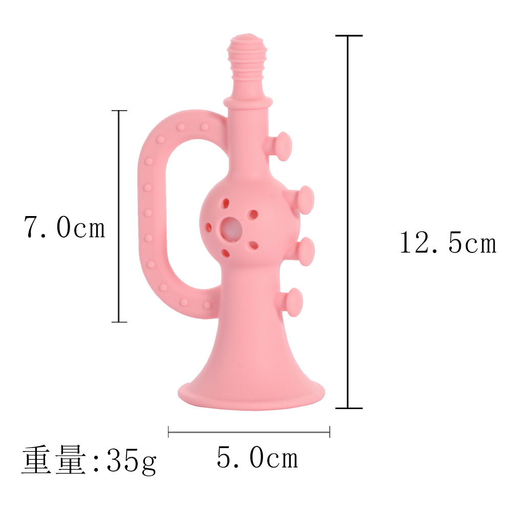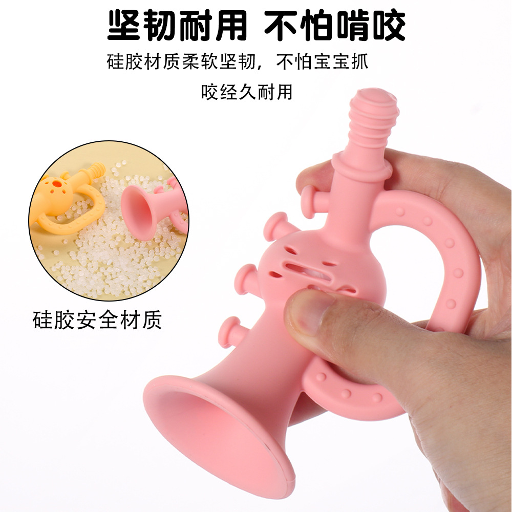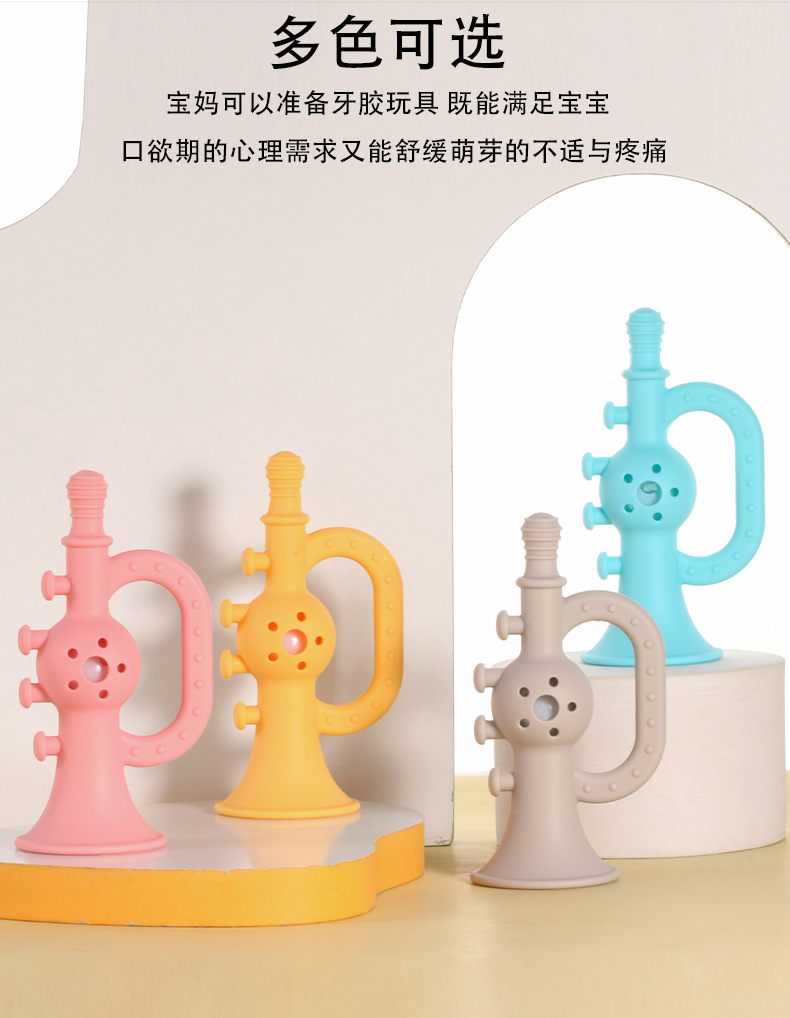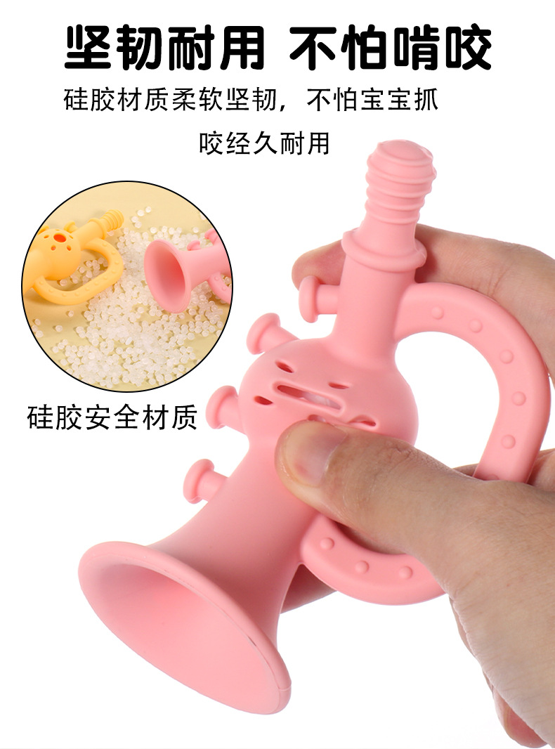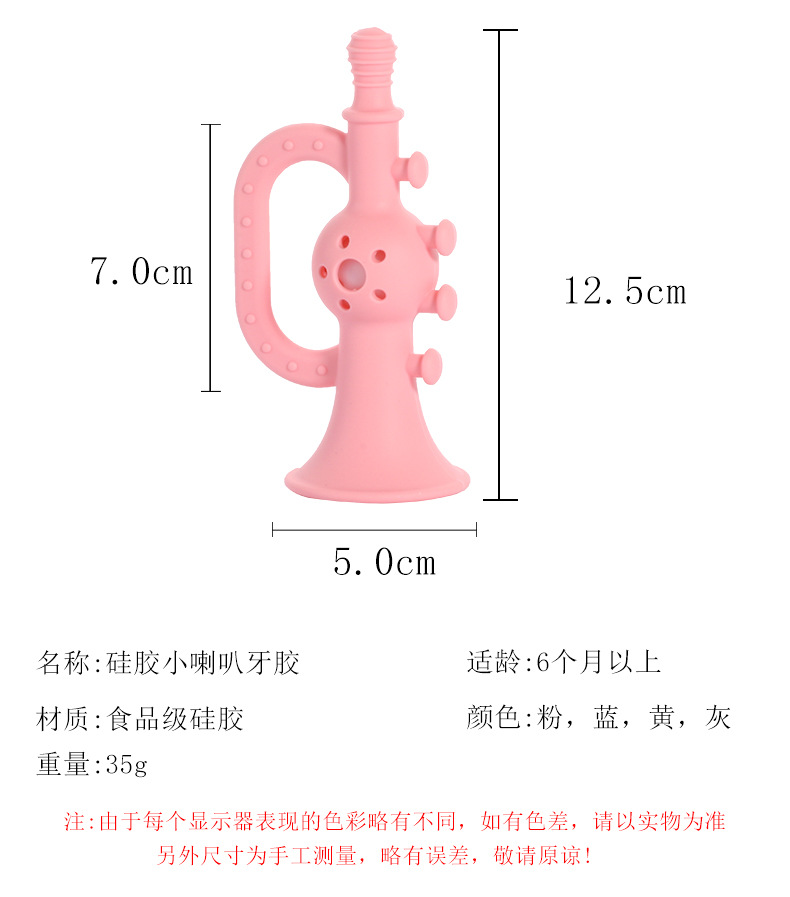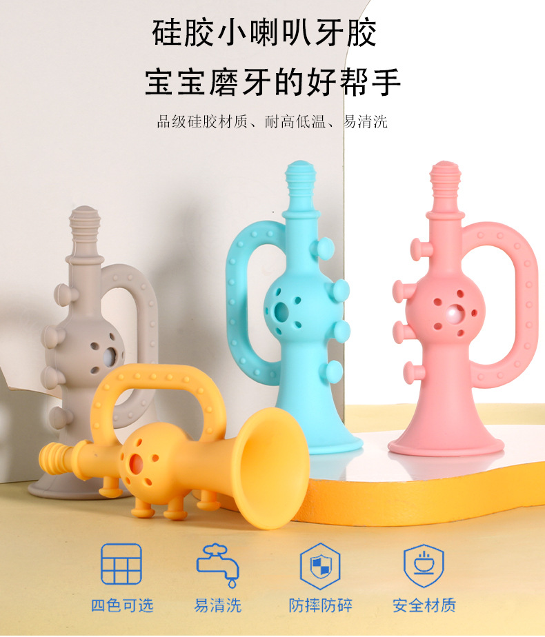 跨境热销小喇叭牙胶食品级铂金硅胶婴儿磨牙出牙玩具宝宝防吃手