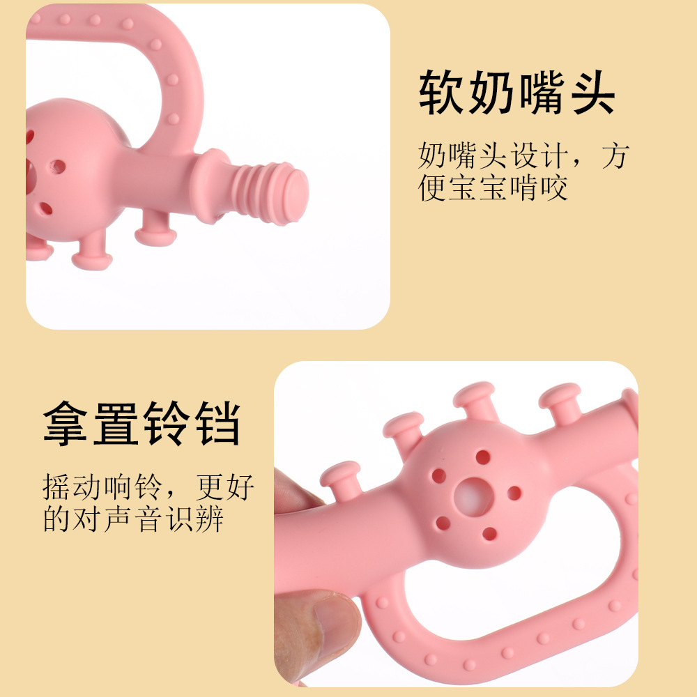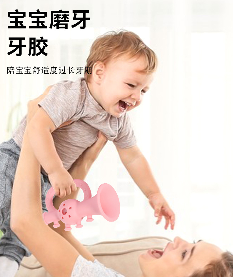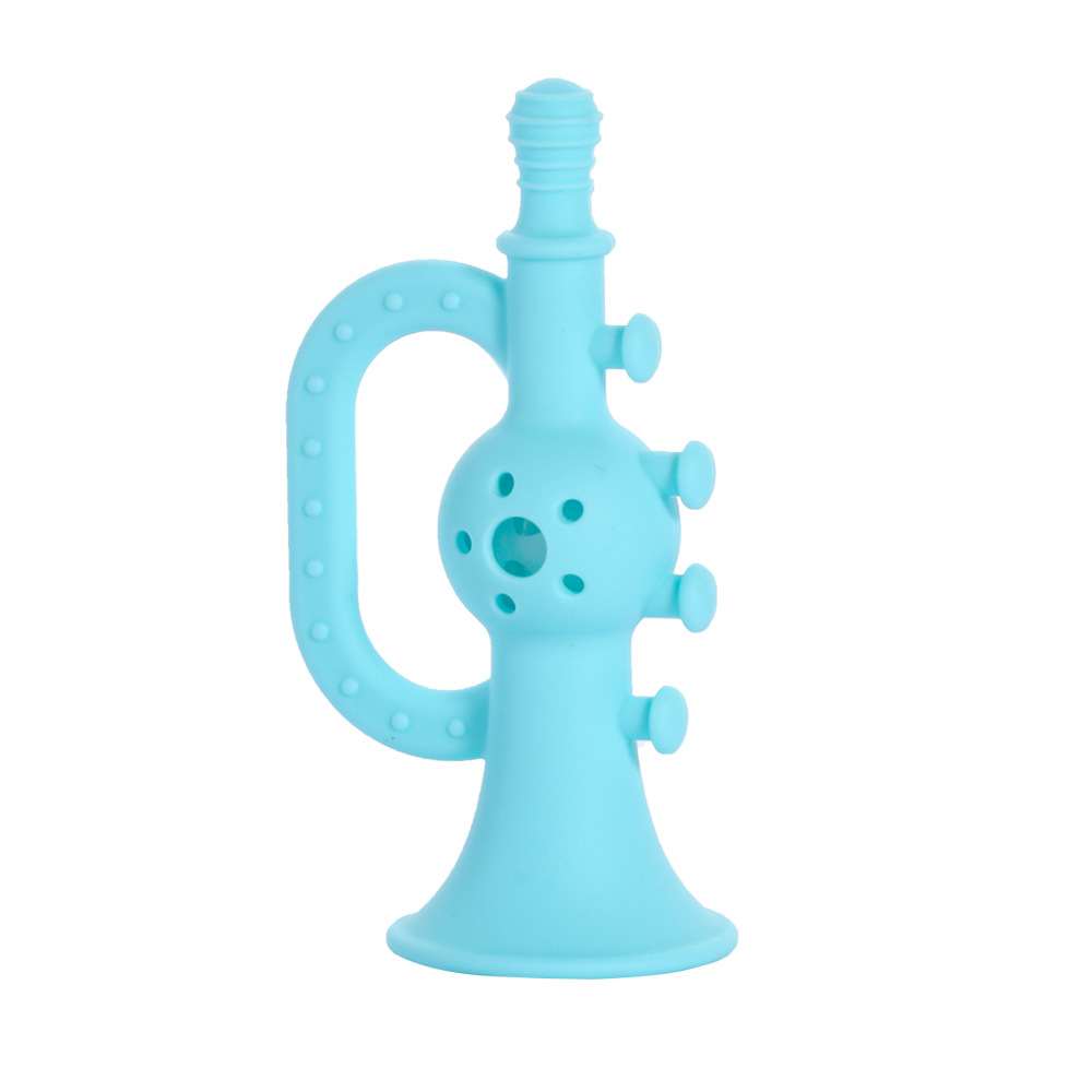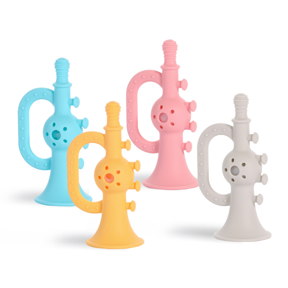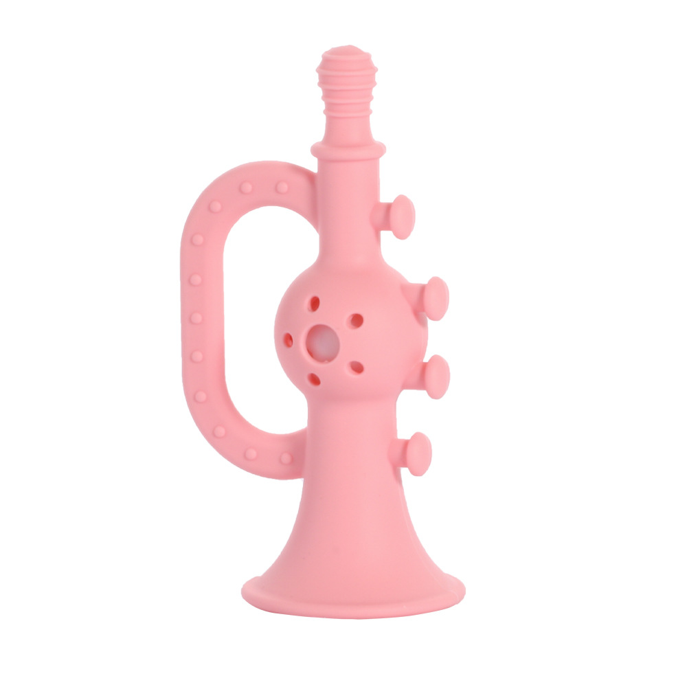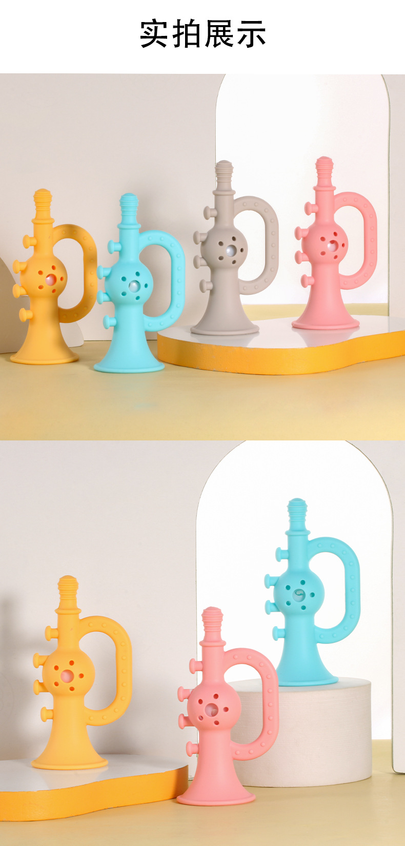 跨境热销小喇叭牙胶食品级铂金硅胶婴儿磨牙出牙玩具宝宝防吃手