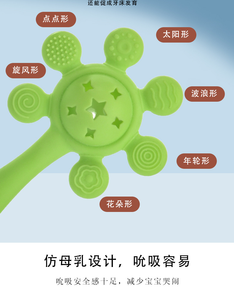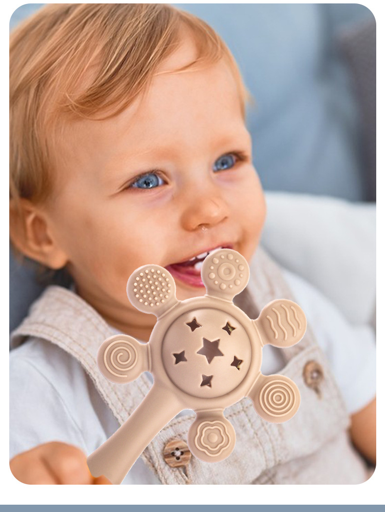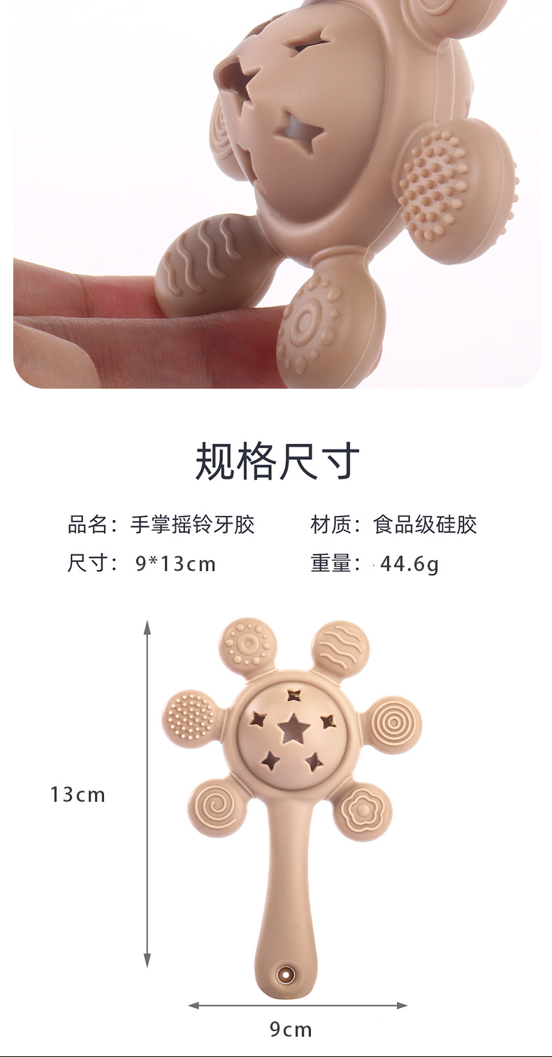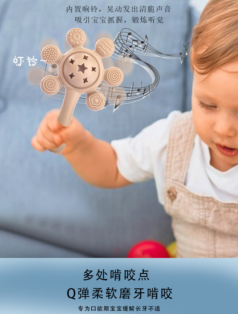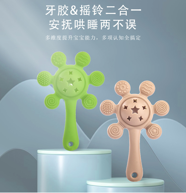 新款食品级硅胶摇铃跨境牙胶宝宝安抚防吃手可水煮摩天轮磨牙棒