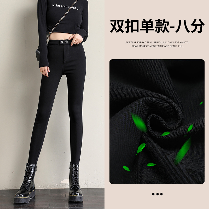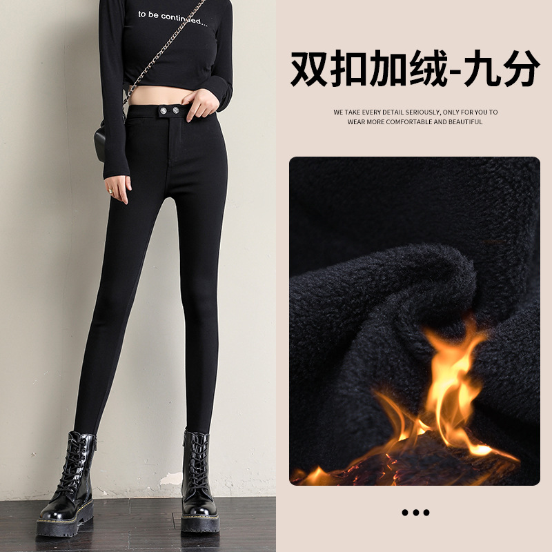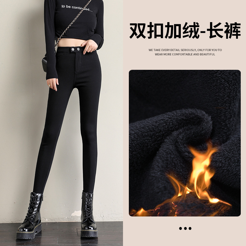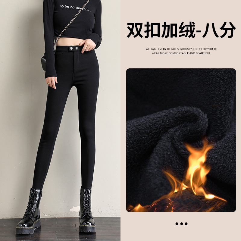 加绒打底裤女春秋外穿2024新款秋冬加厚紧身铅笔弹力黑色小脚裤子