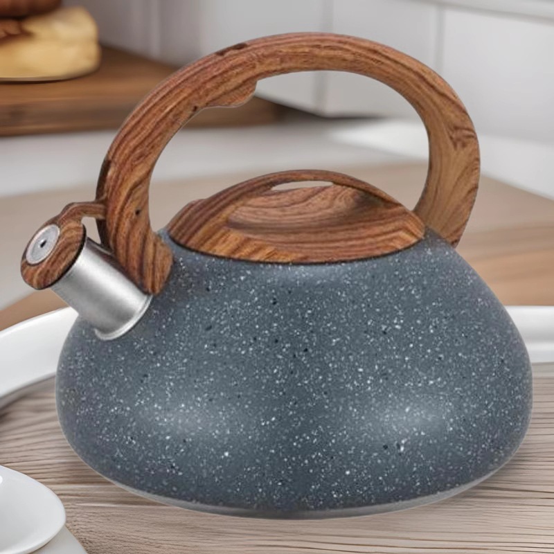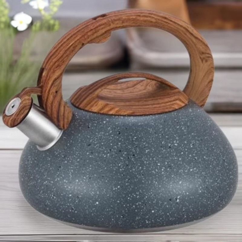 3L木纹手柄鸣笛水壶批发跨境厨房用品喷漆撒点鸣音烧水壶煮水壶