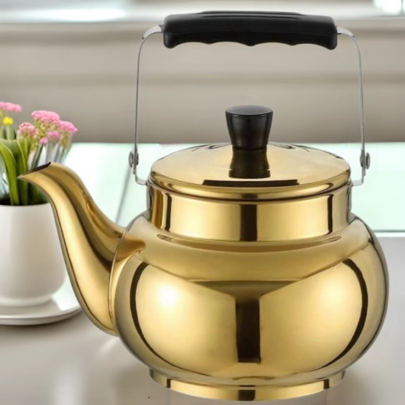 不锈钢锤纹壶带滤网茶壶 饭店水壶酒店泡茶壶外贸出口水壶金色壶