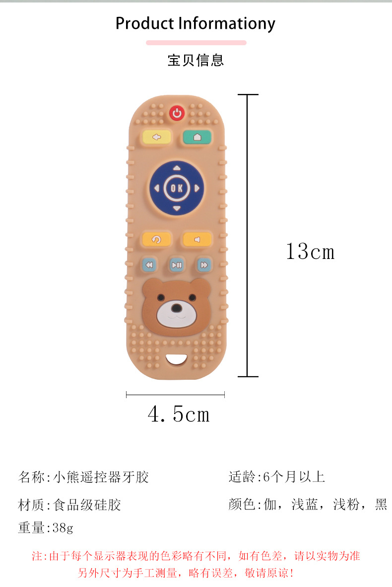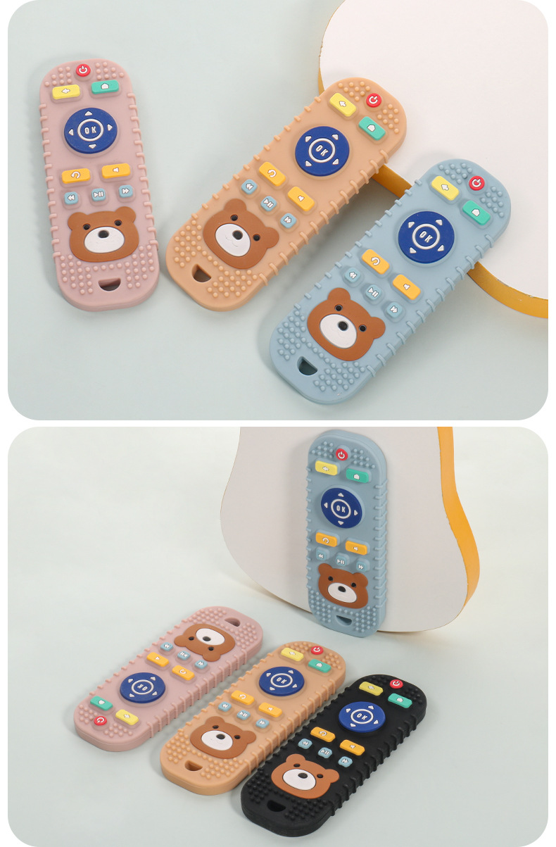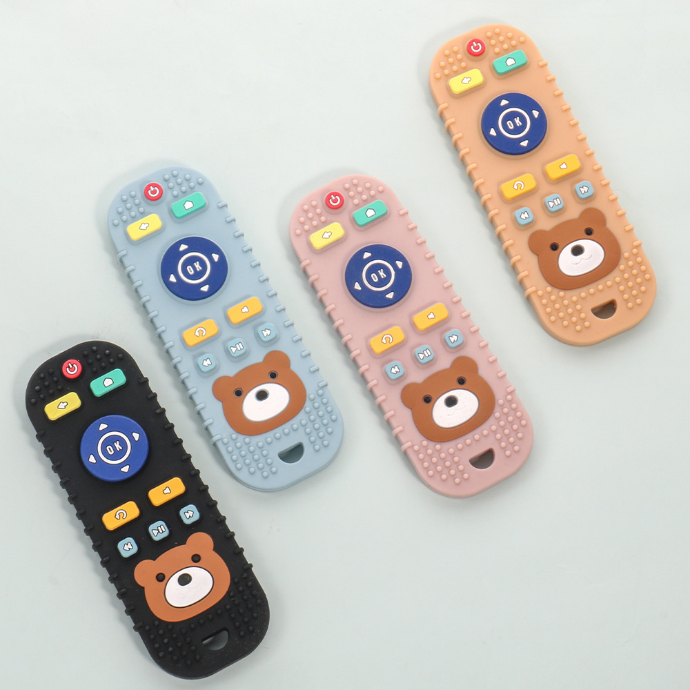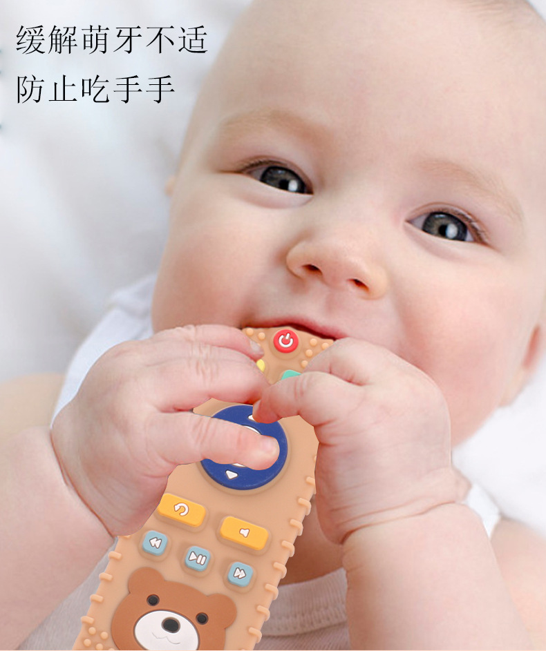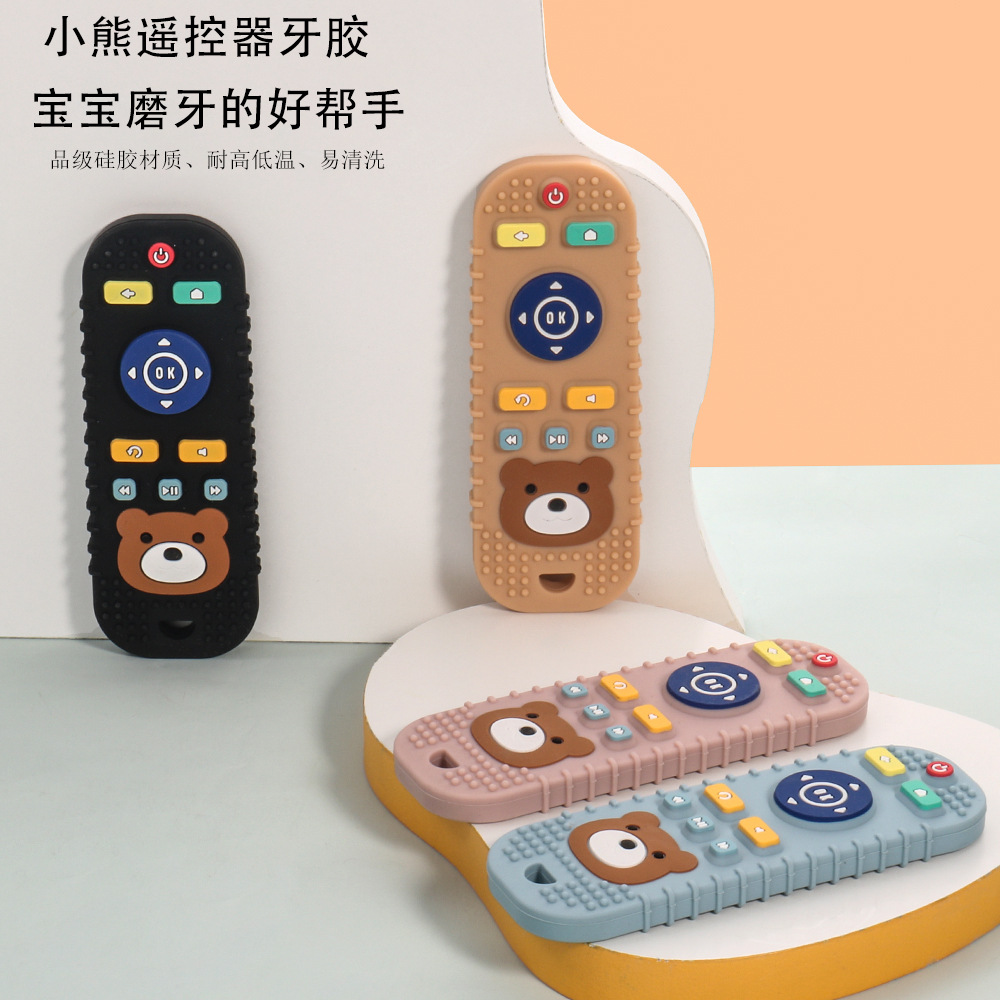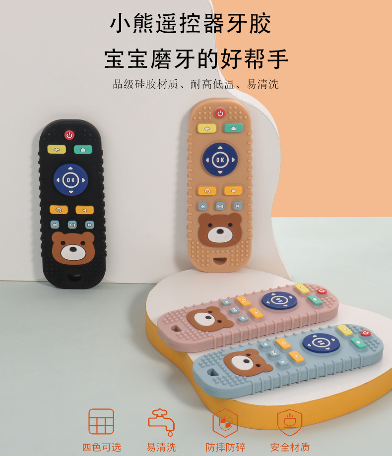 跨境儿童食品级硅胶仿真遥控器牙胶磨牙安抚防吃手卡通小熊牙胶