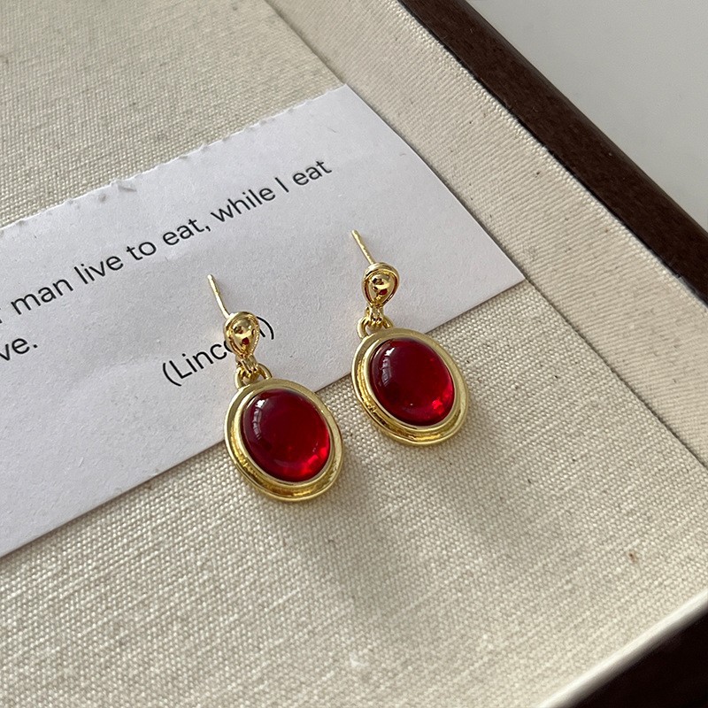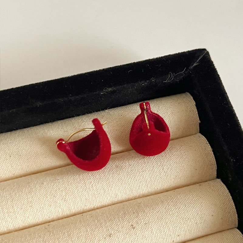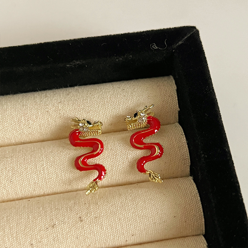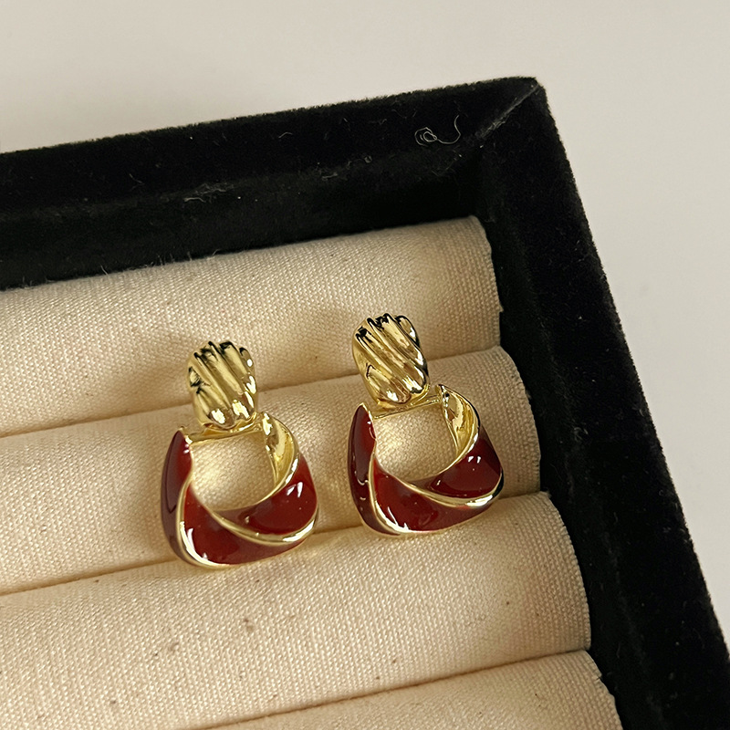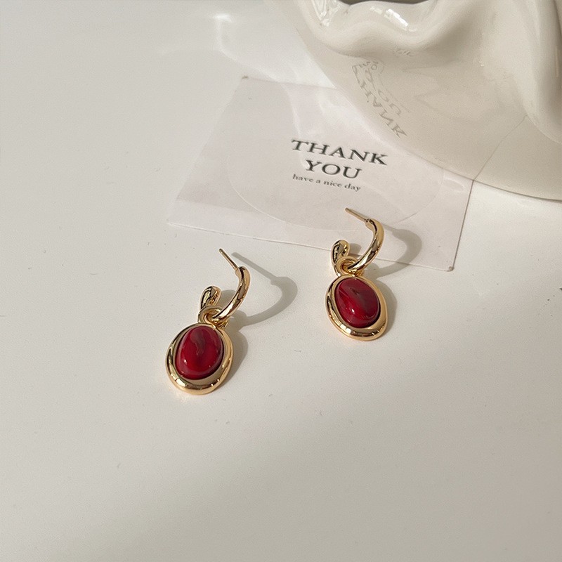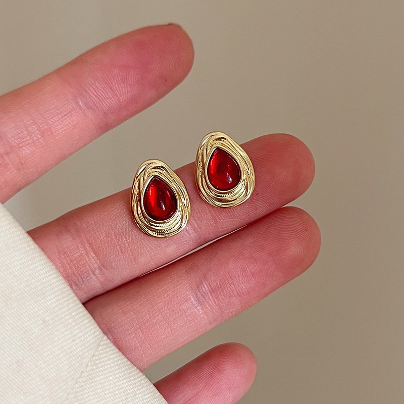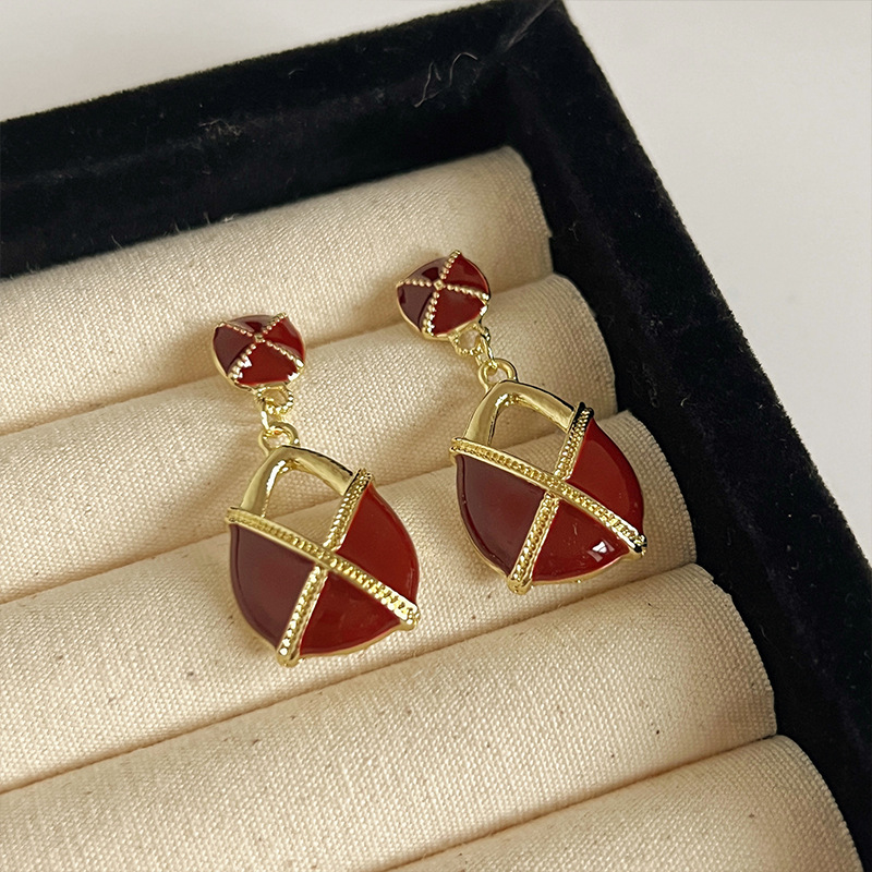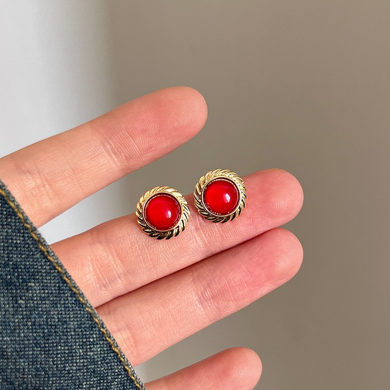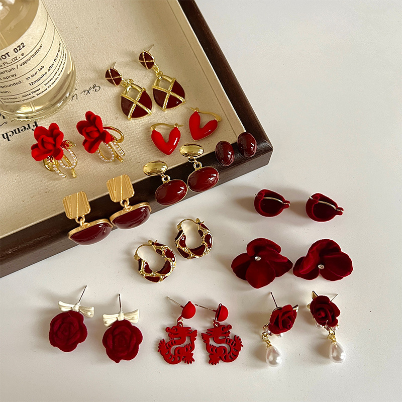 红色耳环女复古港风高级感耳钉2023新款爆款独特小众秋冬过年耳饰