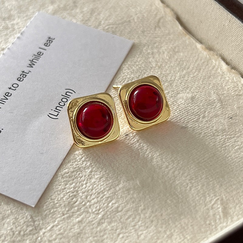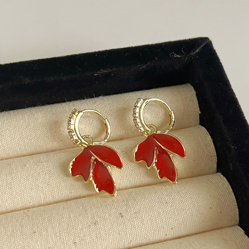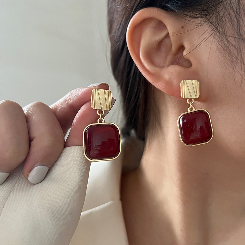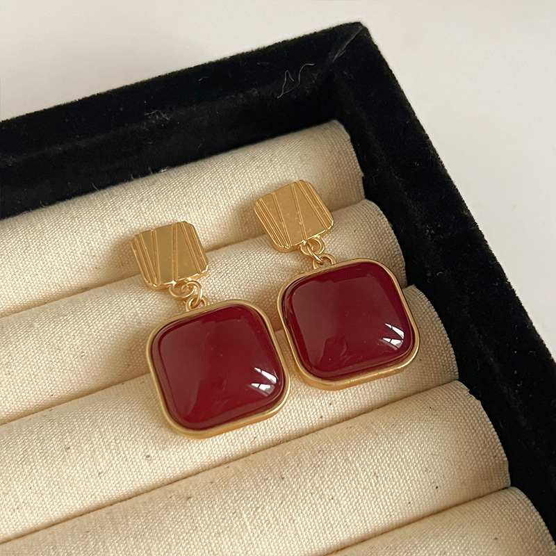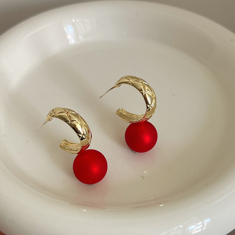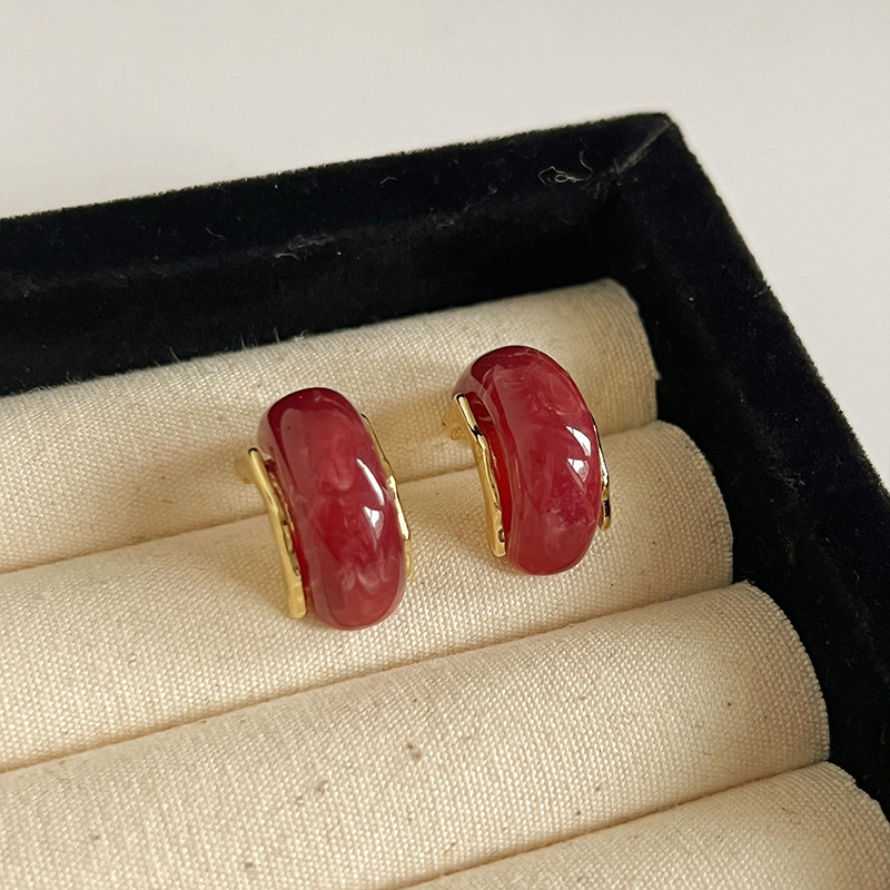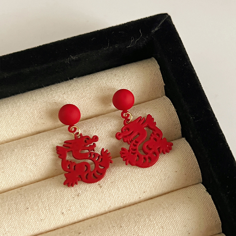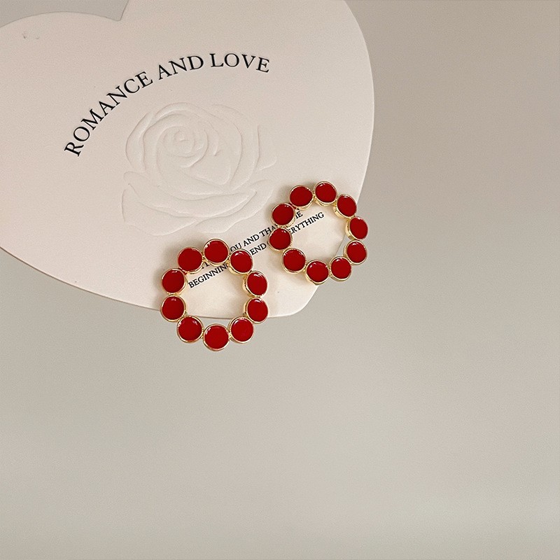 红色耳环女复古港风高级感耳钉2023新款爆款独特小众秋冬过年耳饰