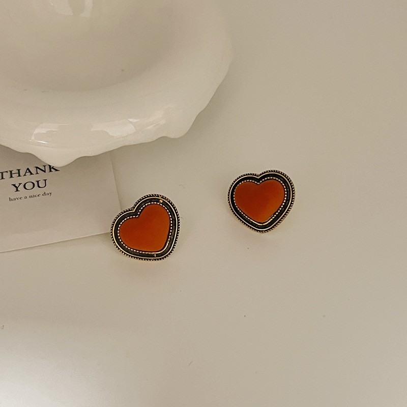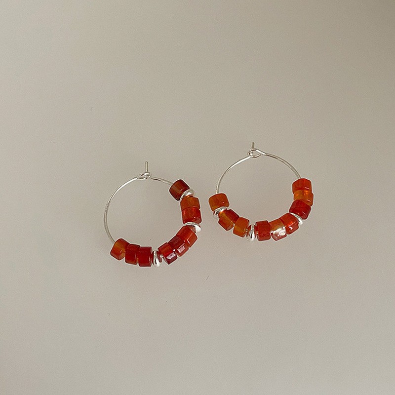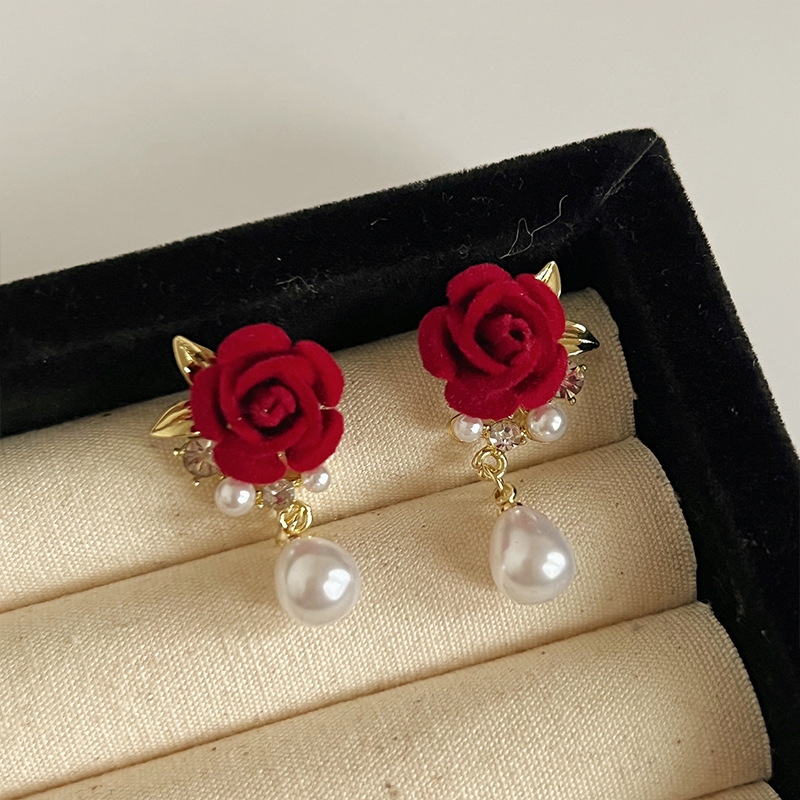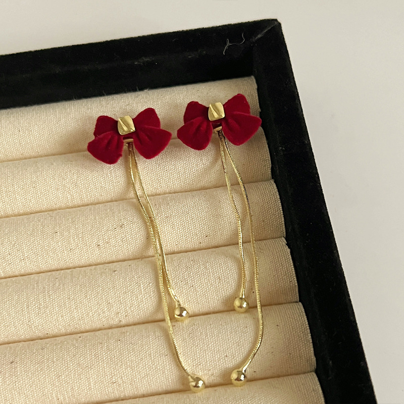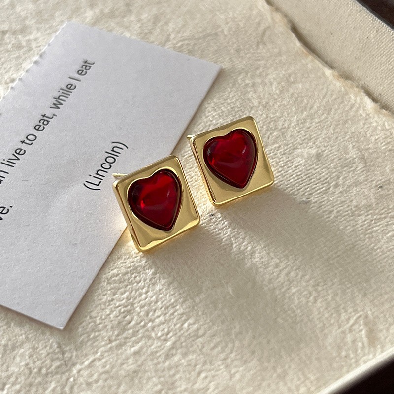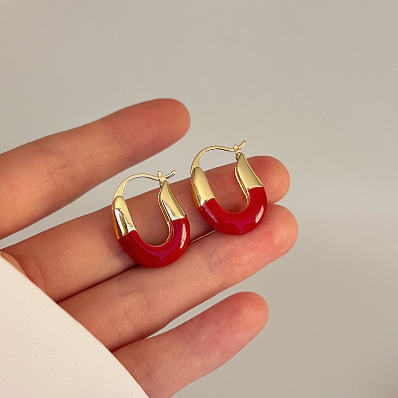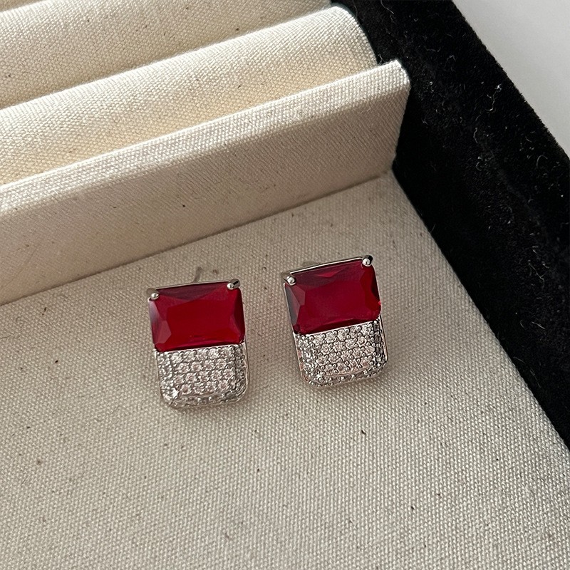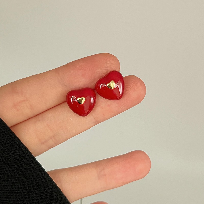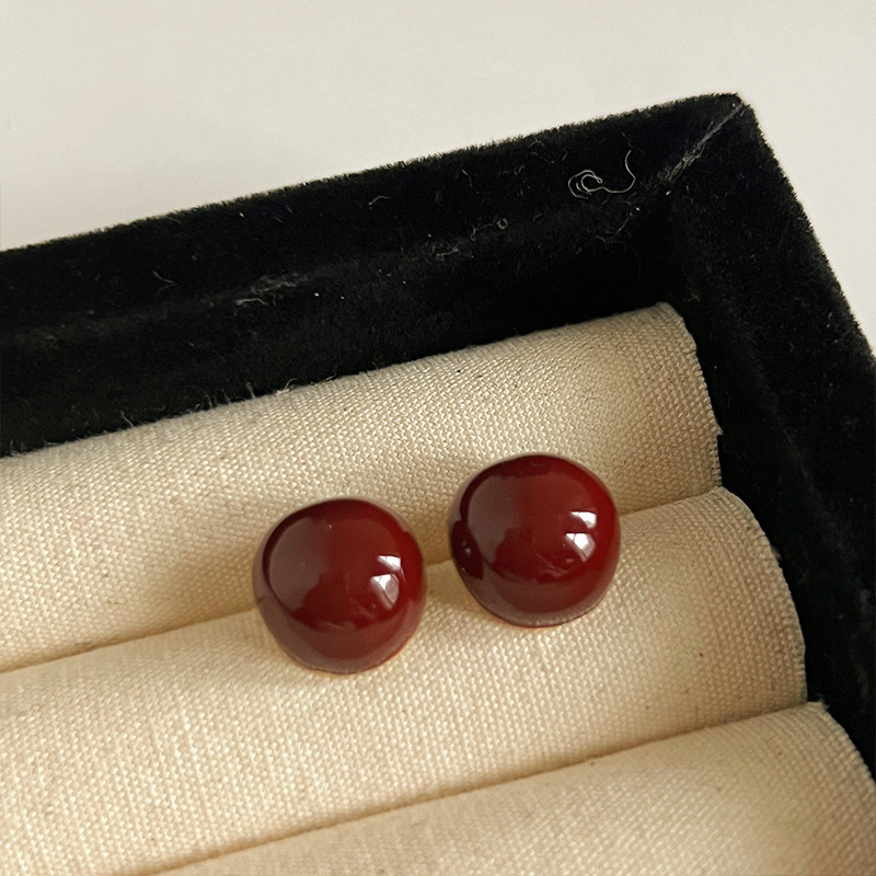 红色耳环女复古港风高级感耳钉2023新款爆款独特小众秋冬过年耳饰
