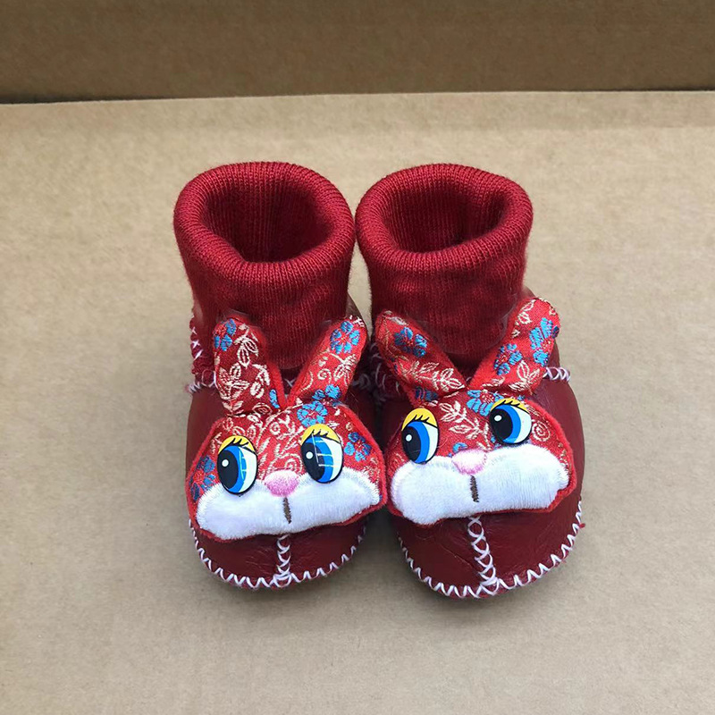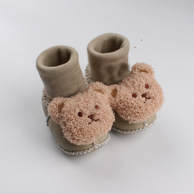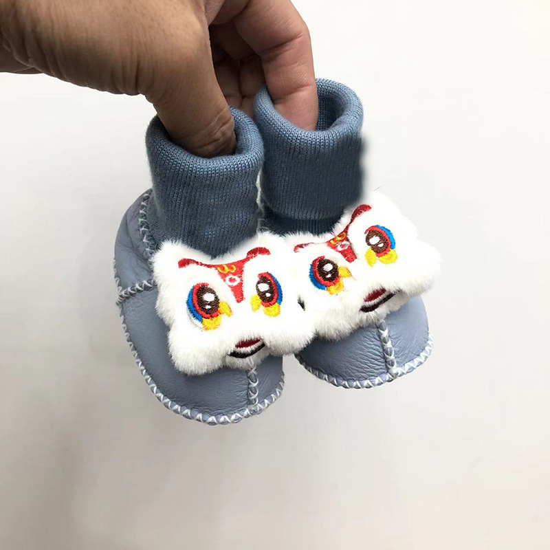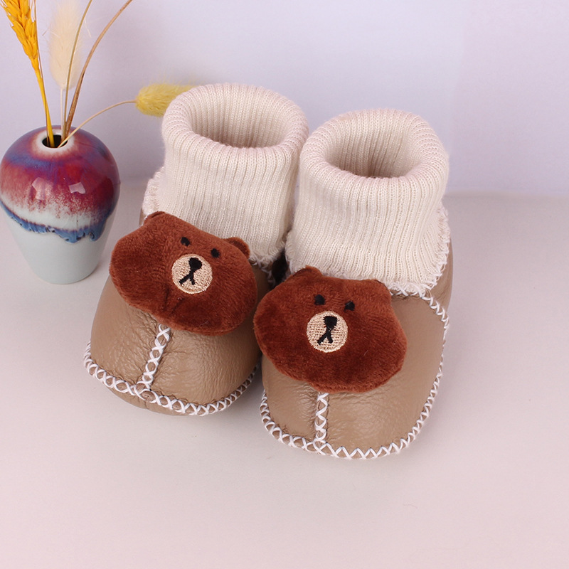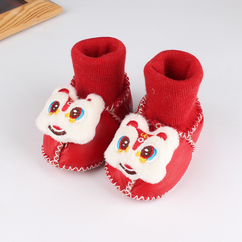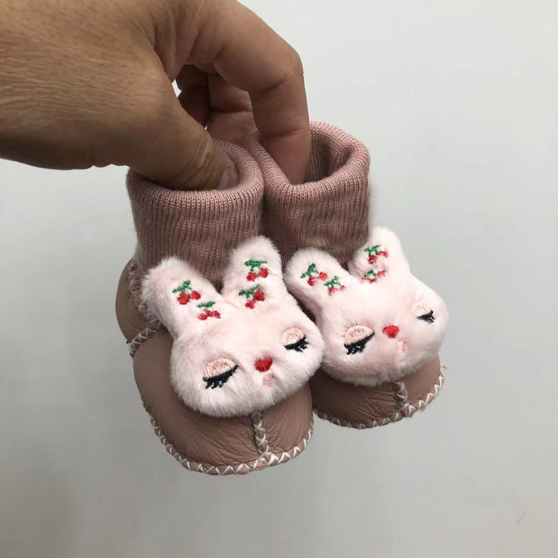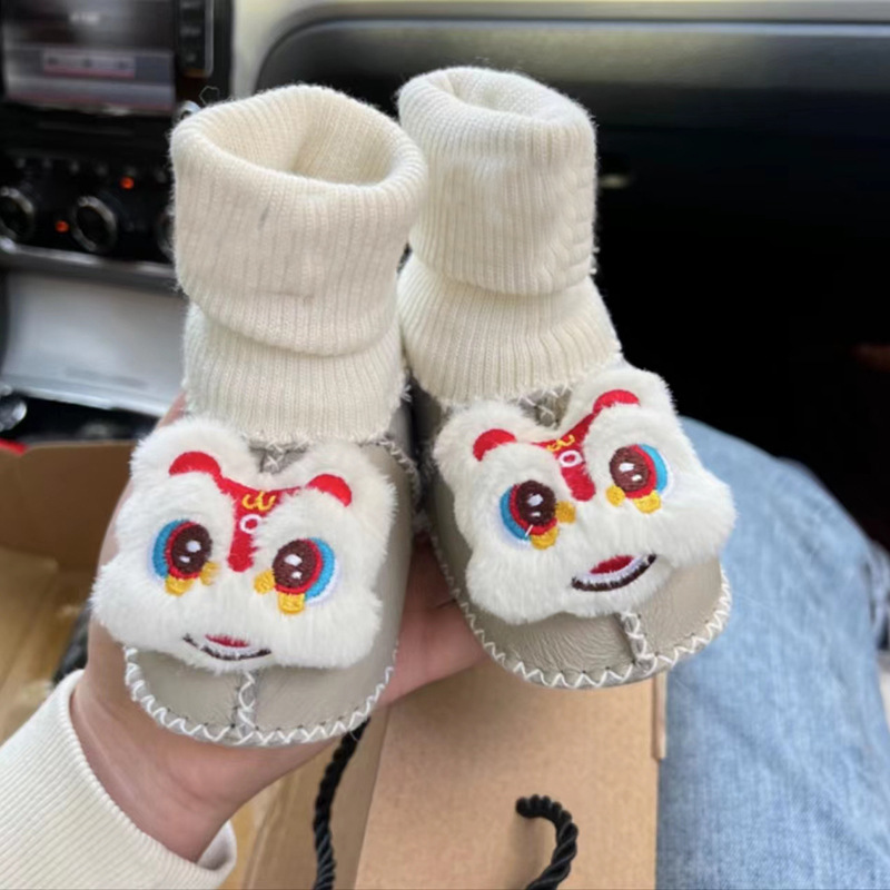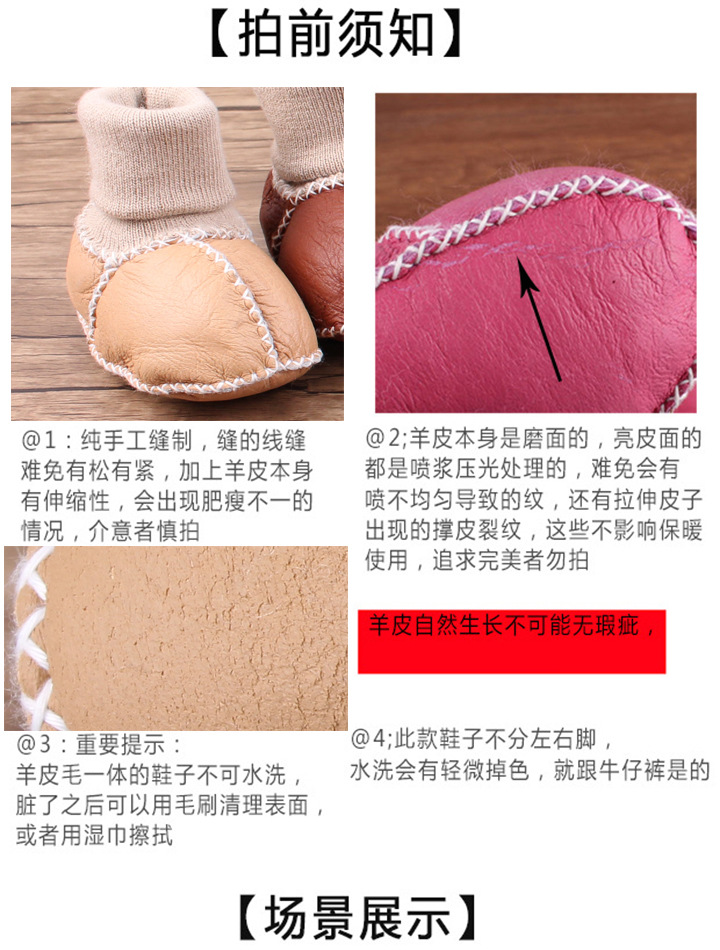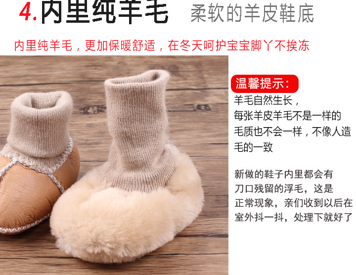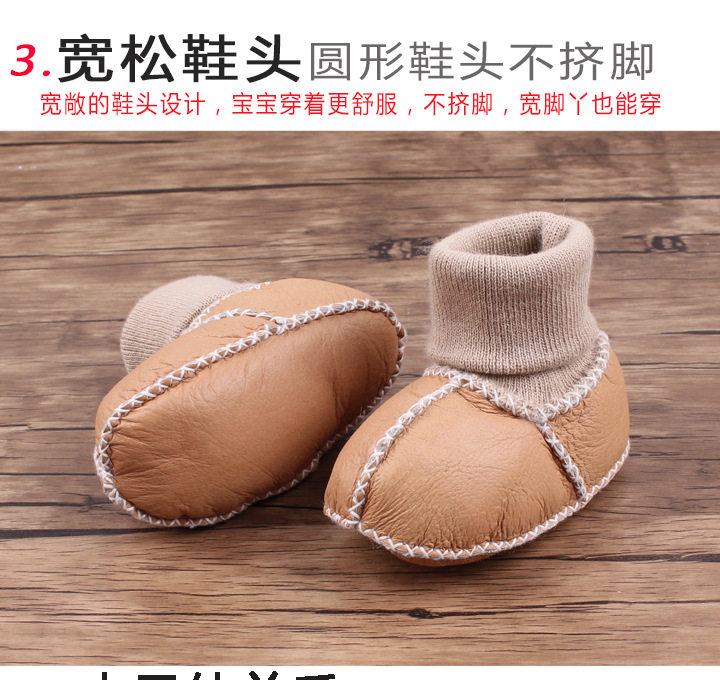 秋冬季皮毛一体婴儿鞋袜加厚新生儿鞋子0-1岁宝宝鞋防滑软底鞋
