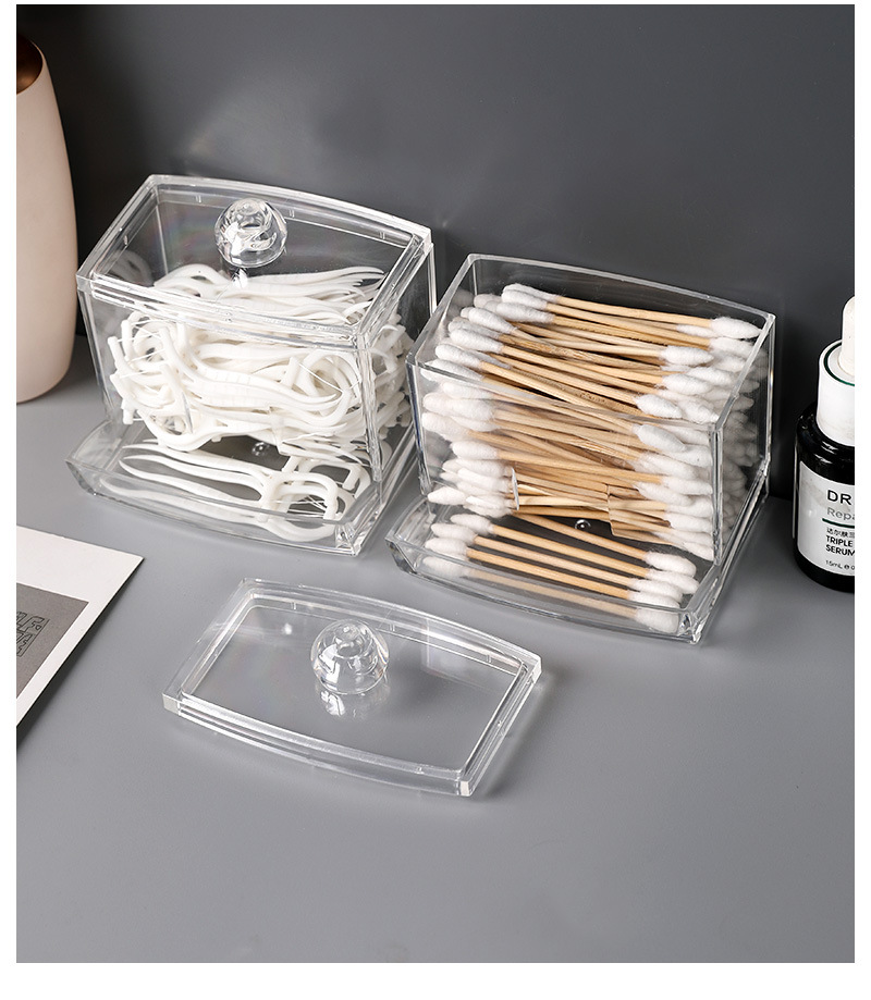 化妆棉棉签收纳盒卸妆棉牙签线透明盒子桌面美妆蛋化妆品储物盒