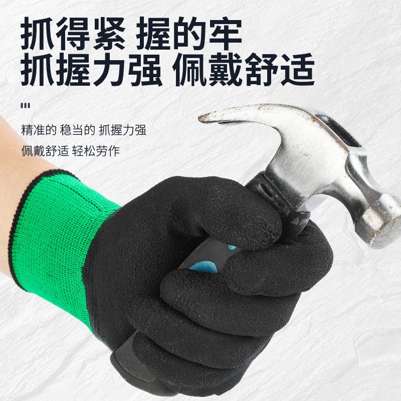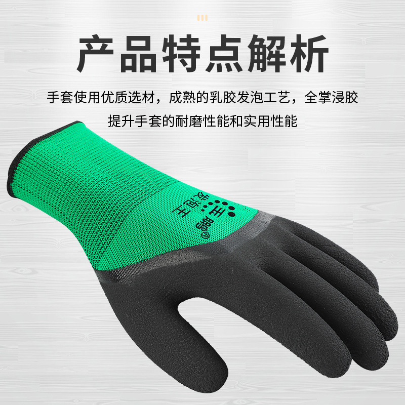 手套劳保耐磨工作橡胶乳胶发泡王防滑防水透气加厚带胶男劳动干活