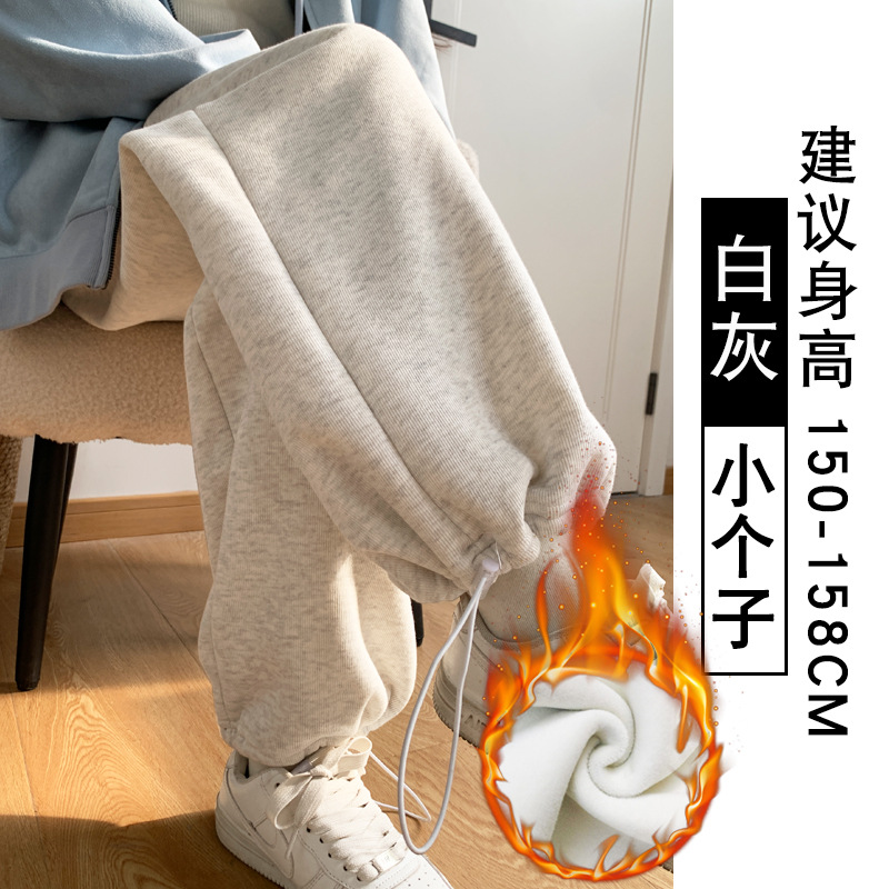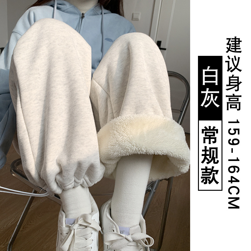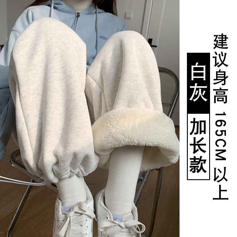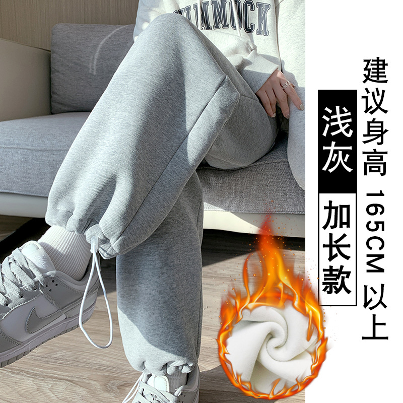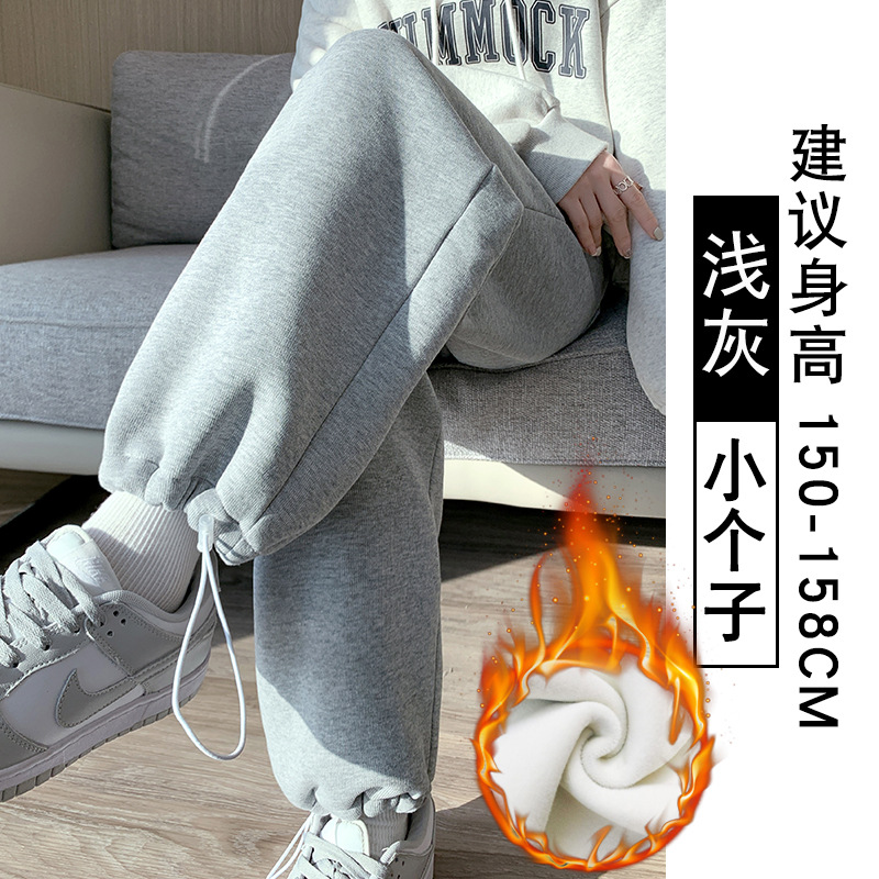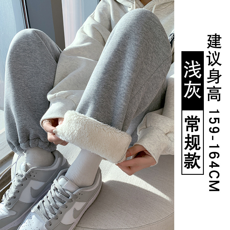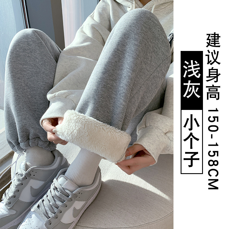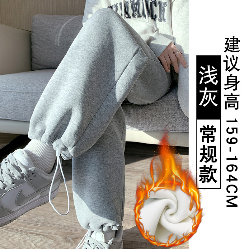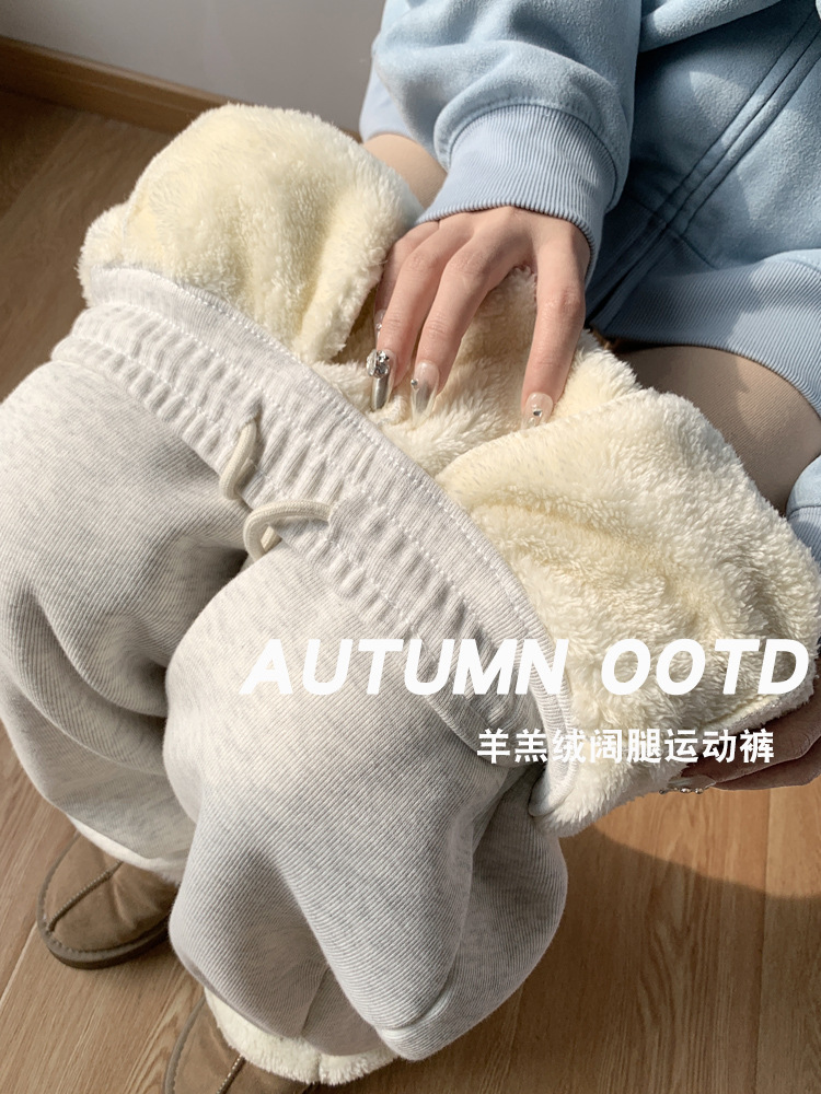 灰色羊羔绒运动裤女秋冬2024新款加绒棉裤束脚休闲阔腿小个子卫裤