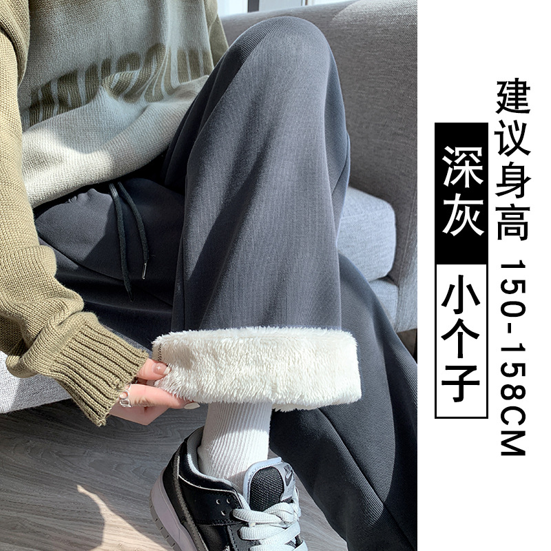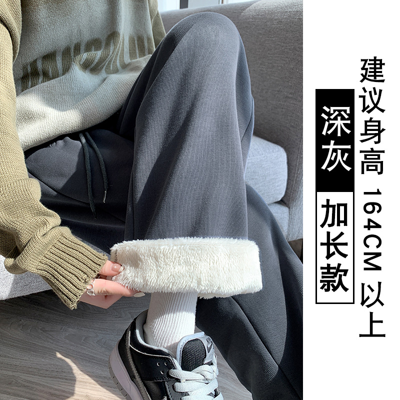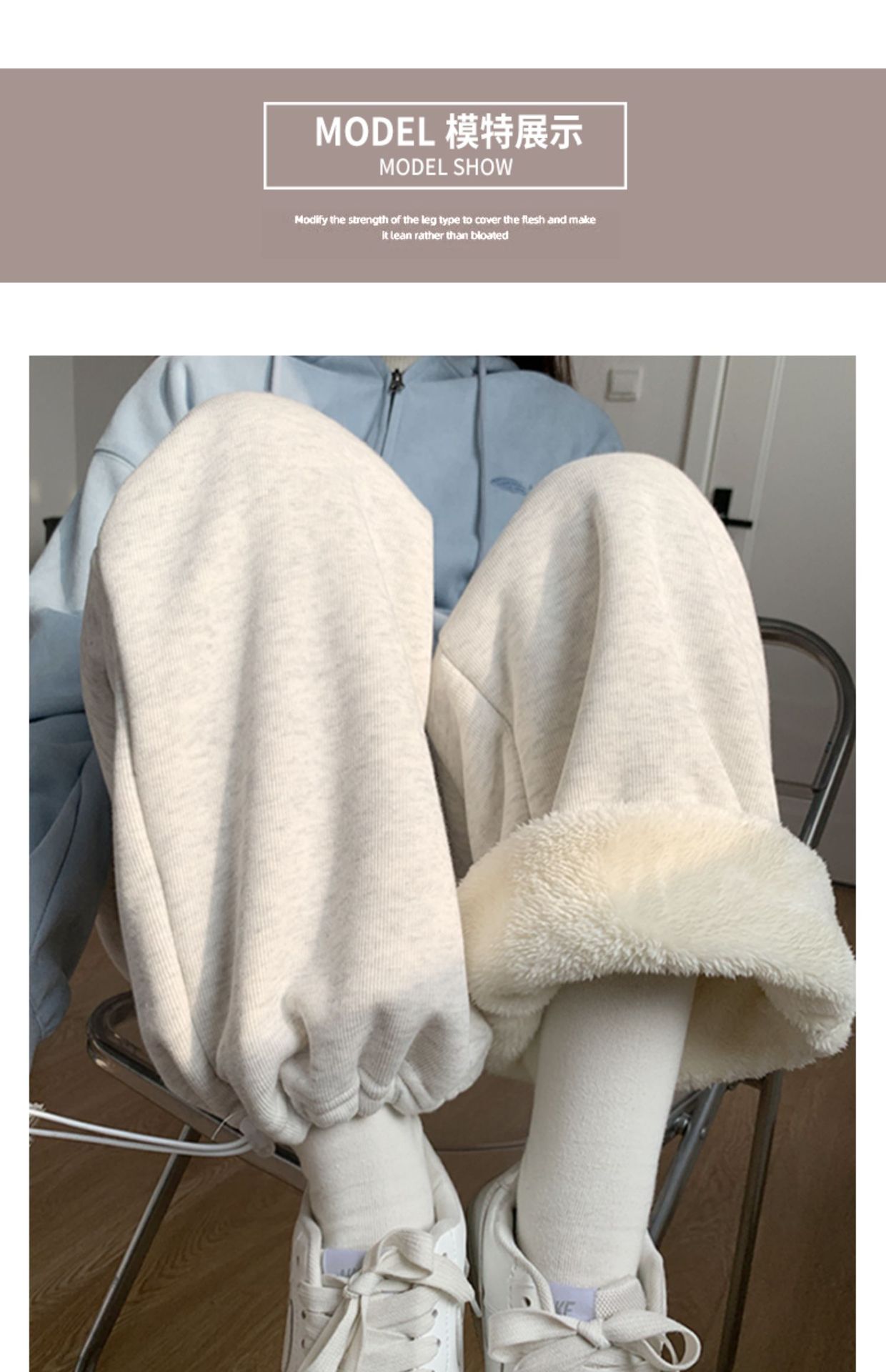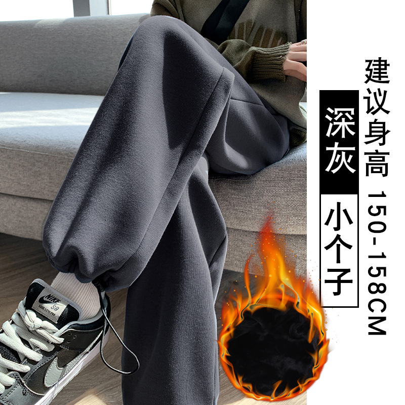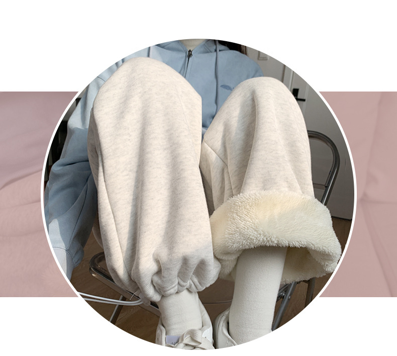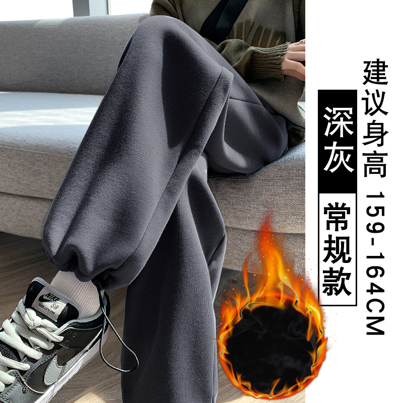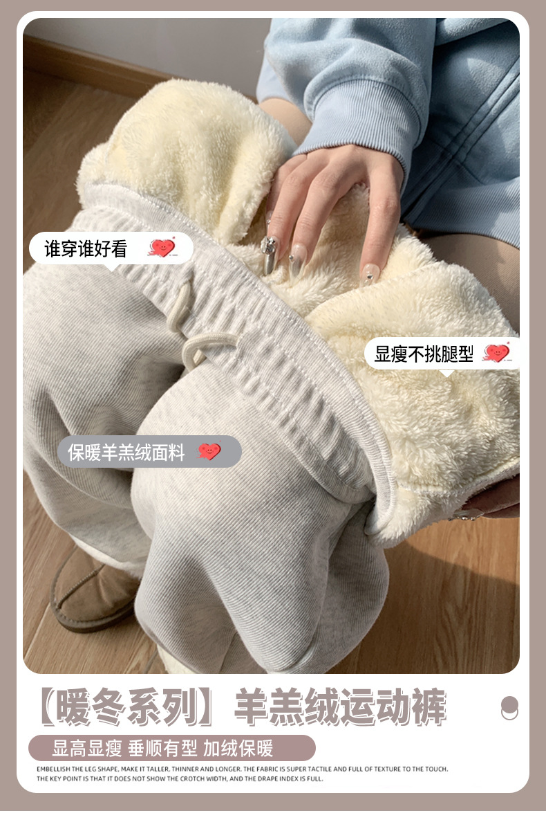灰色羊羔绒运动裤女秋冬2024新款加绒棉裤束脚休闲阔腿小个子卫裤