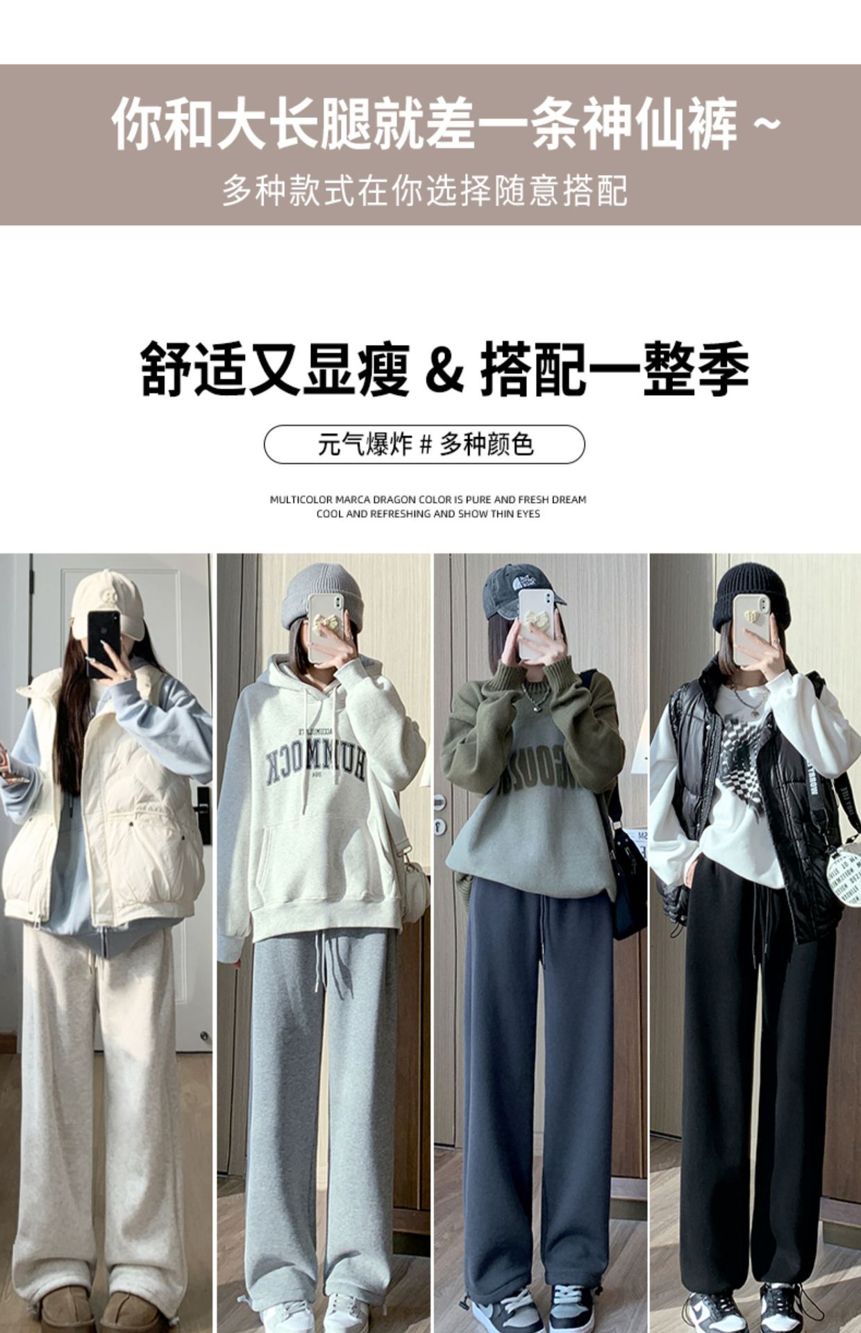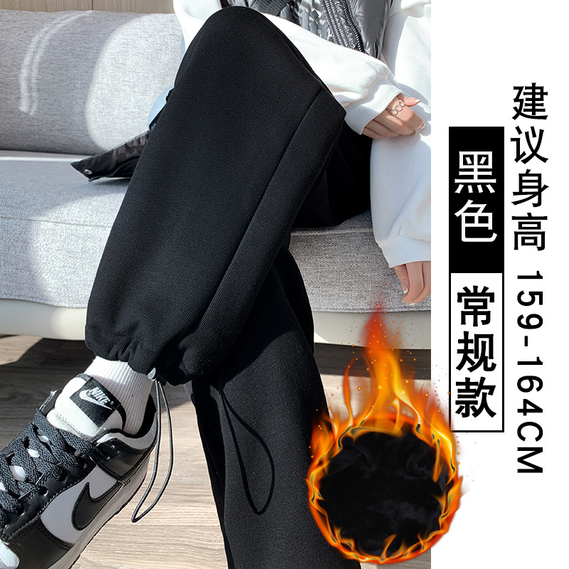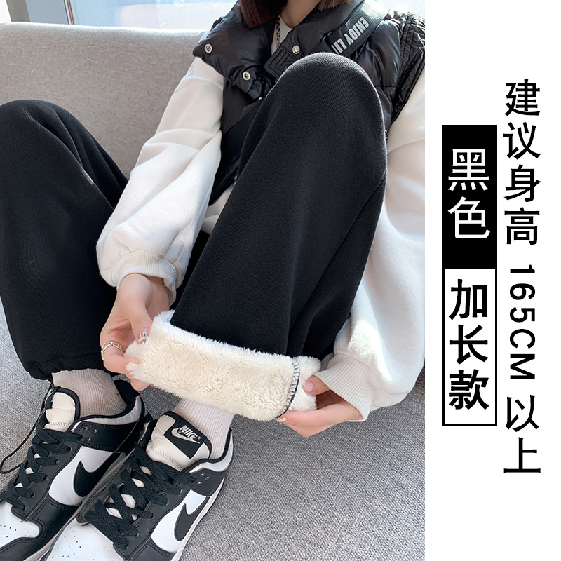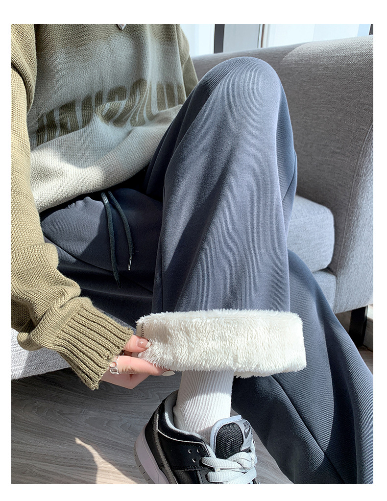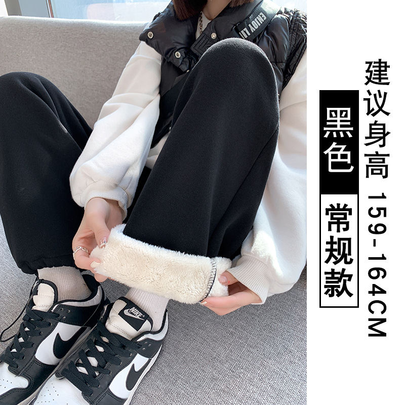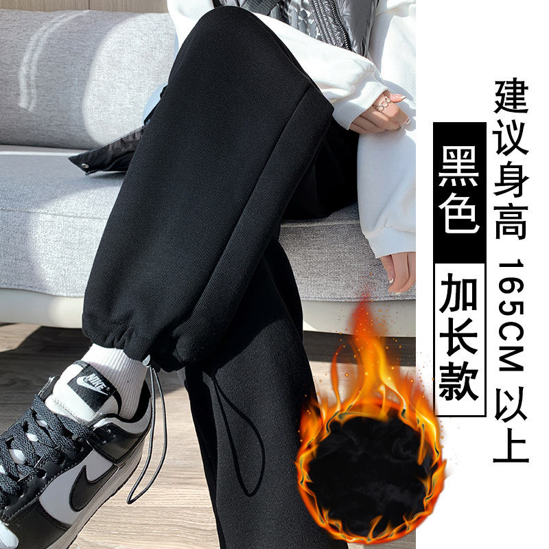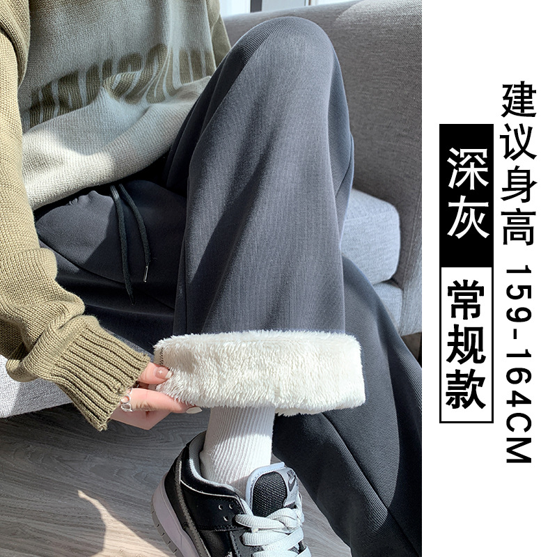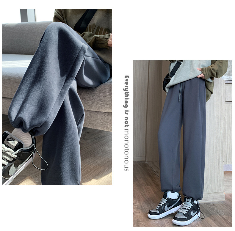 灰色羊羔绒运动裤女秋冬2024新款加绒棉裤束脚休闲阔腿小个子卫裤
