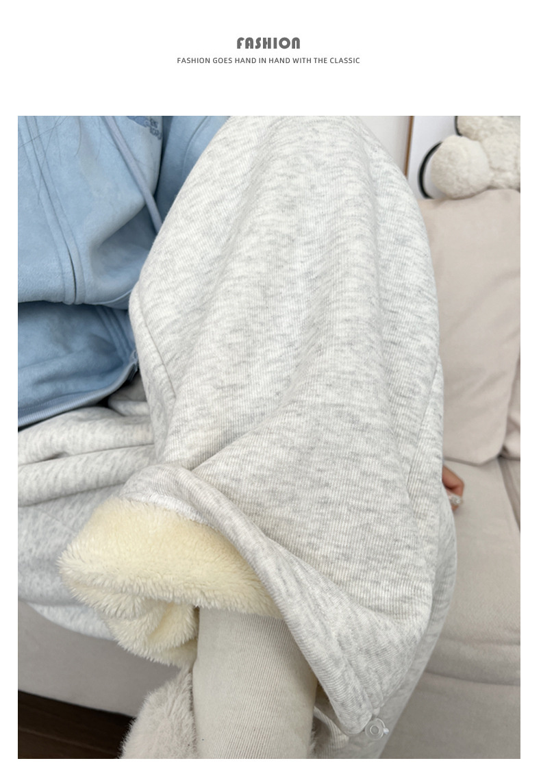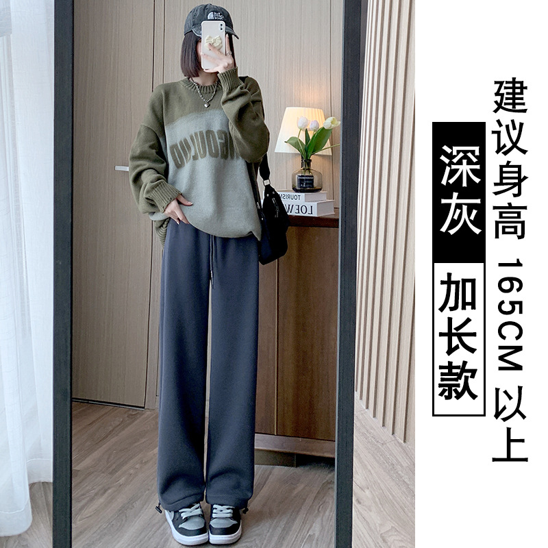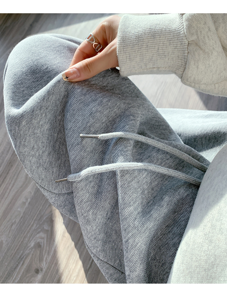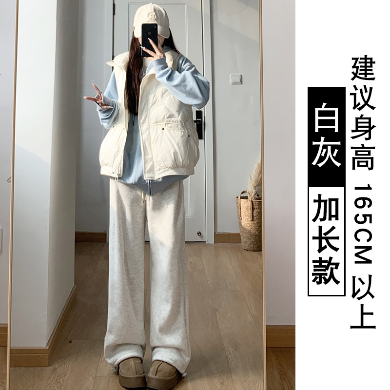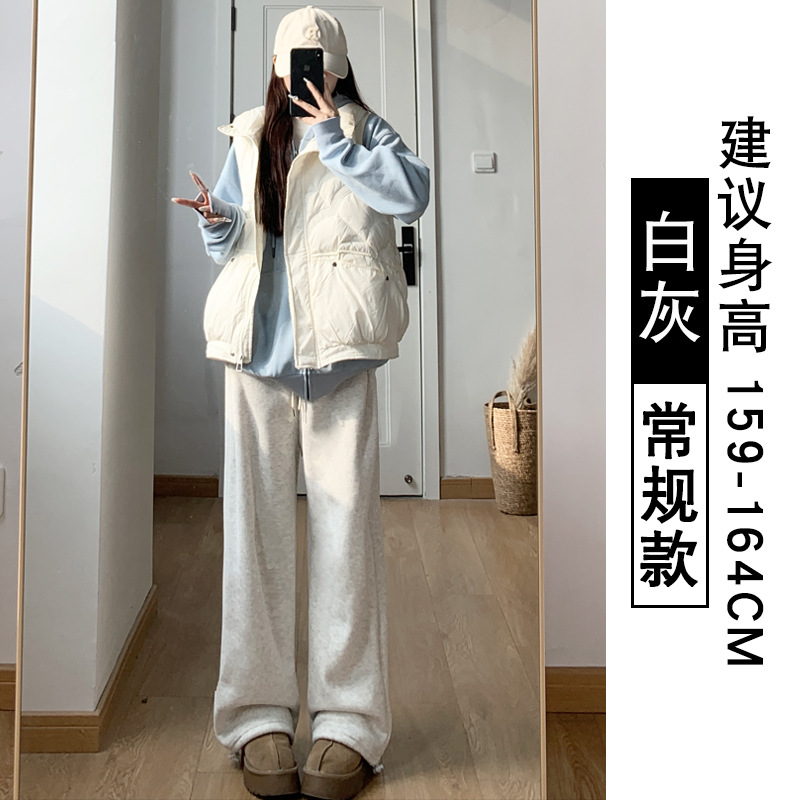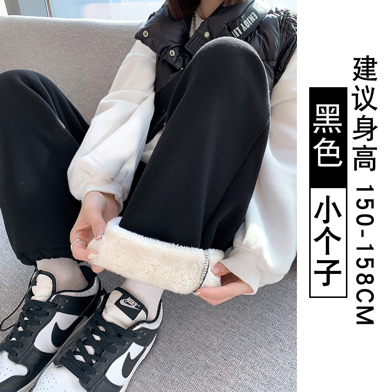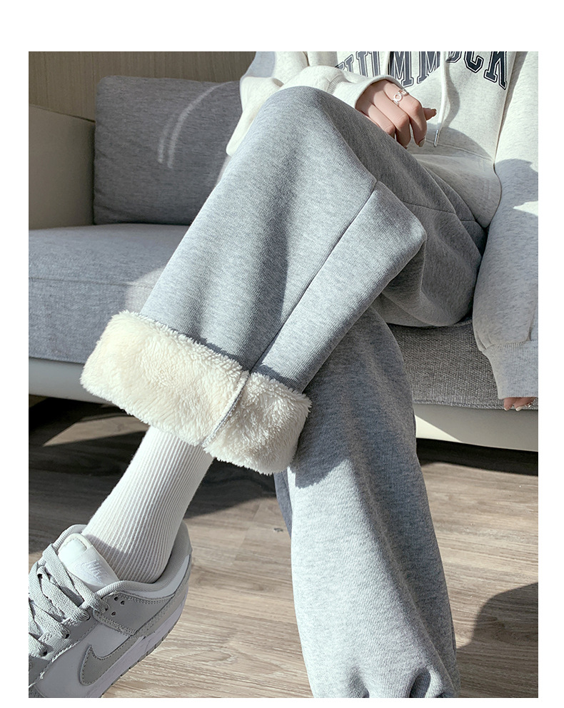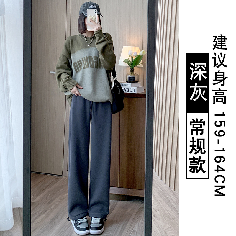 灰色羊羔绒运动裤女秋冬2024新款加绒棉裤束脚休闲阔腿小个子卫裤