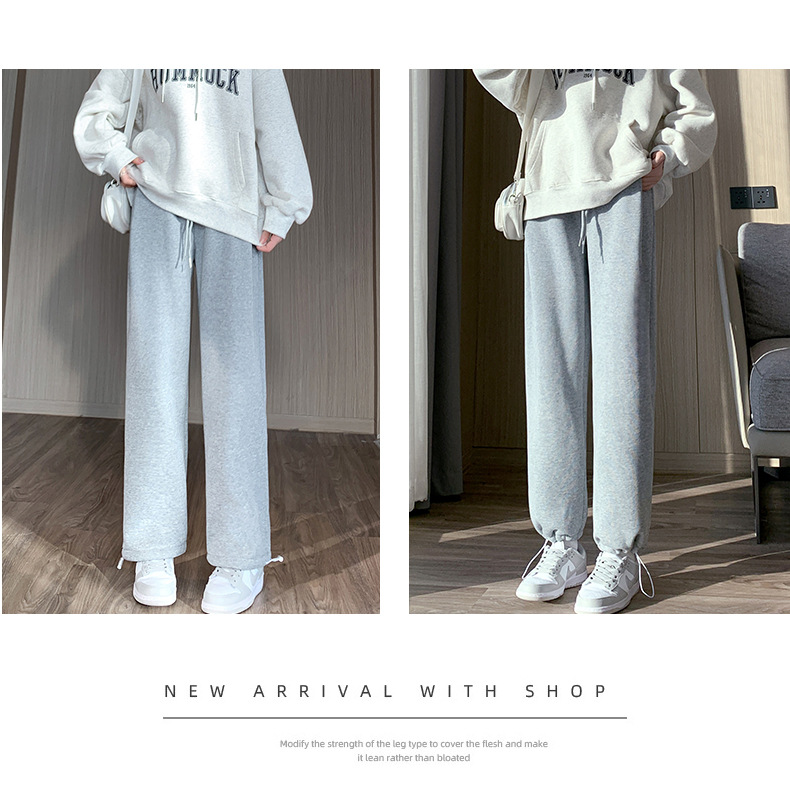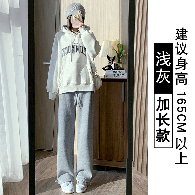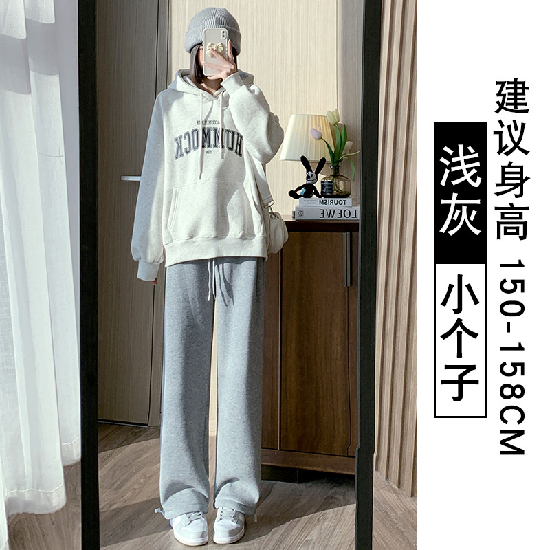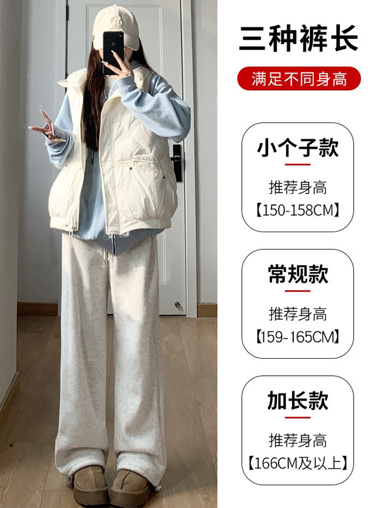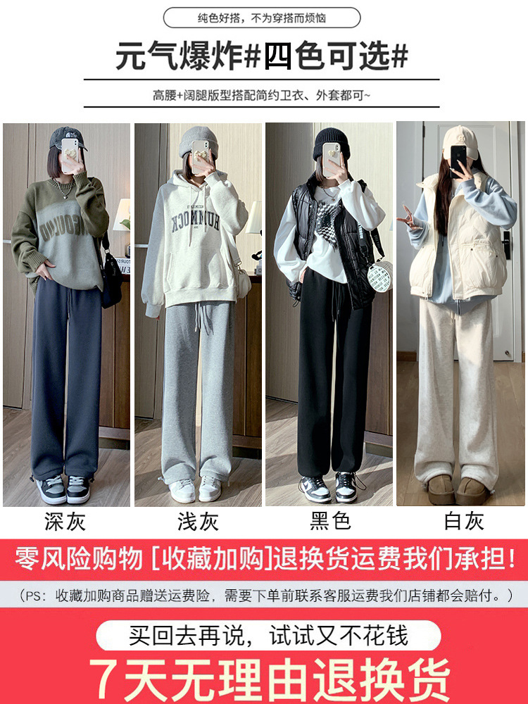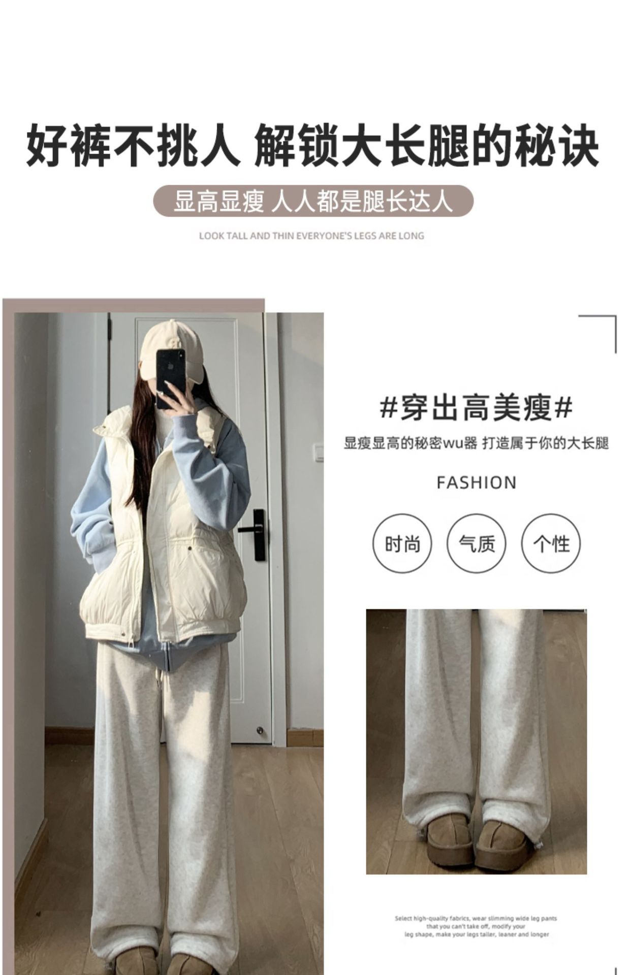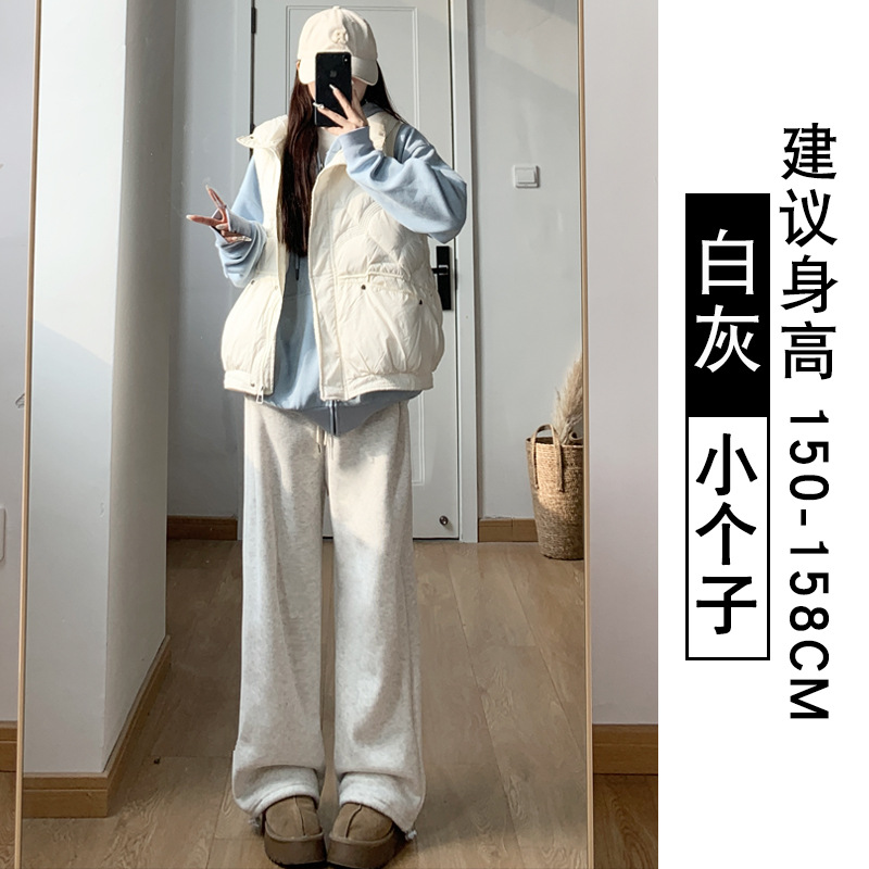 灰色羊羔绒运动裤女秋冬2024新款加绒棉裤束脚休闲阔腿小个子卫裤