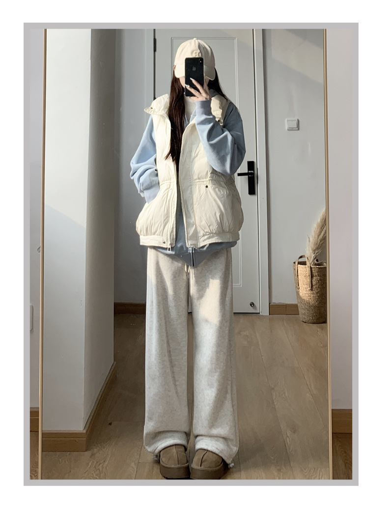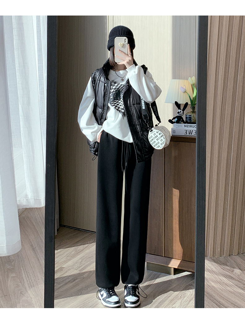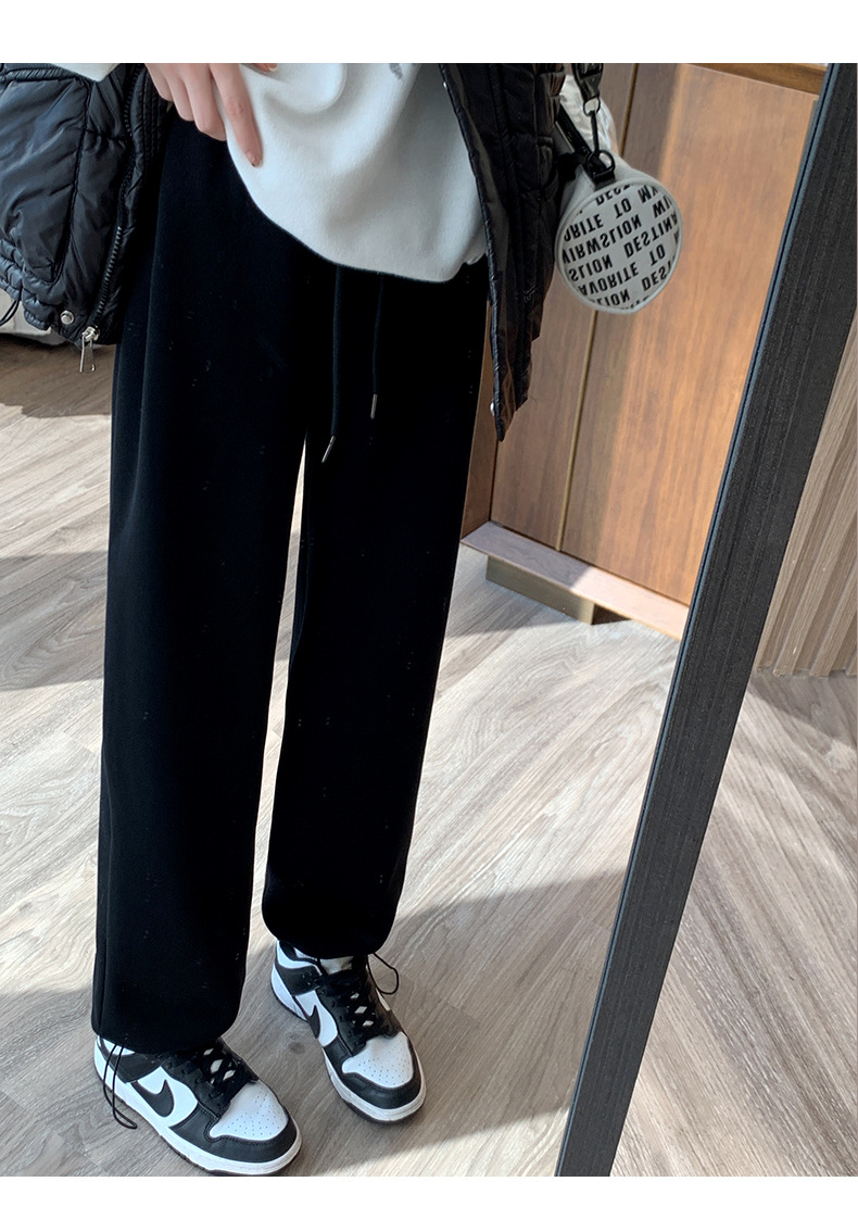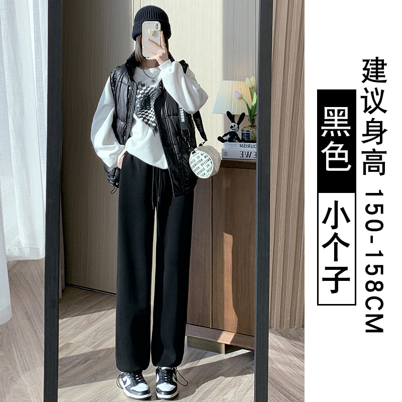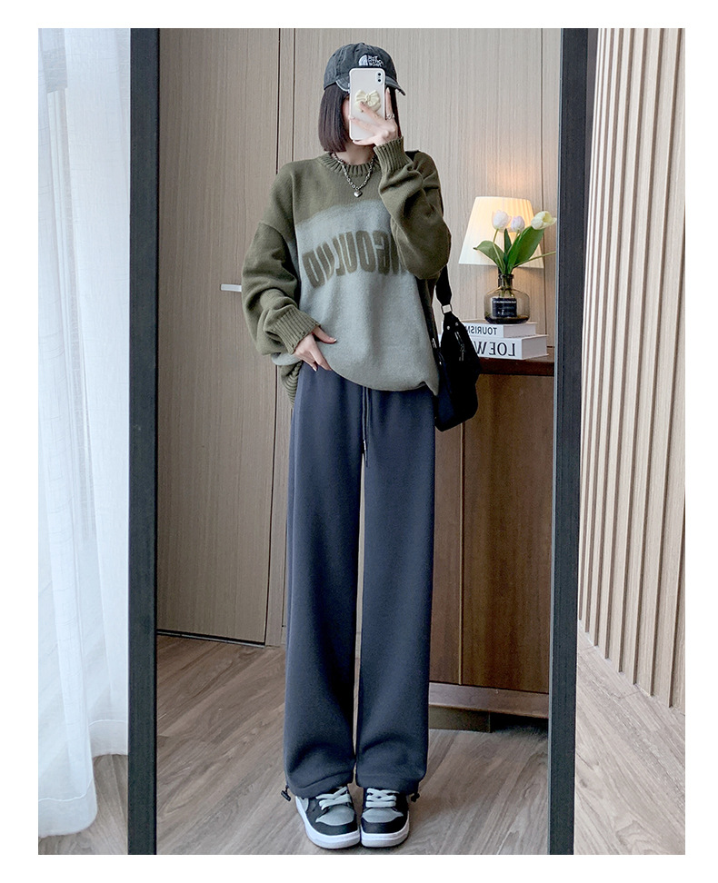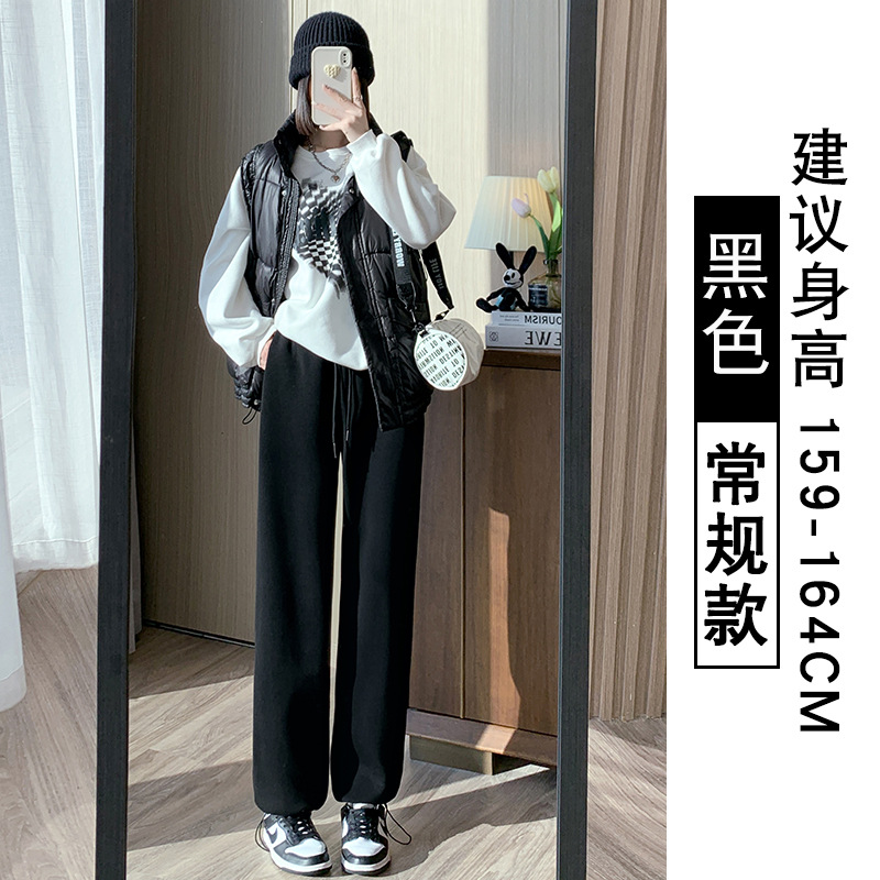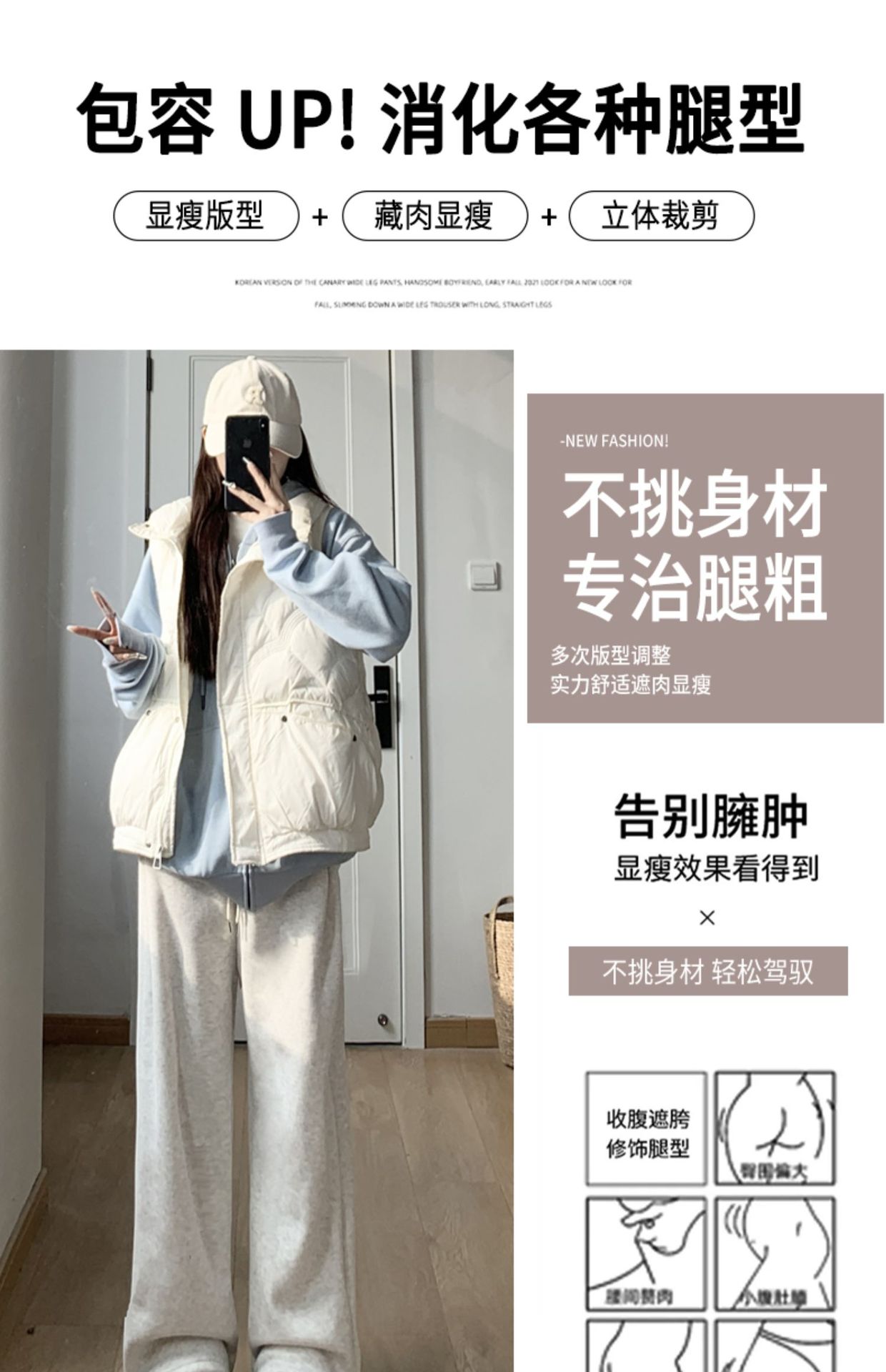 灰色羊羔绒运动裤女秋冬2024新款加绒棉裤束脚休闲阔腿小个子卫裤