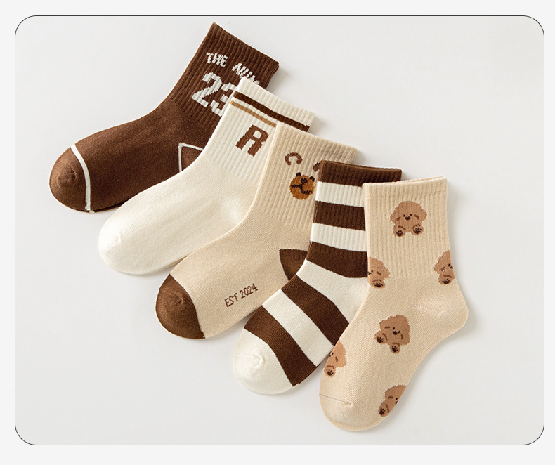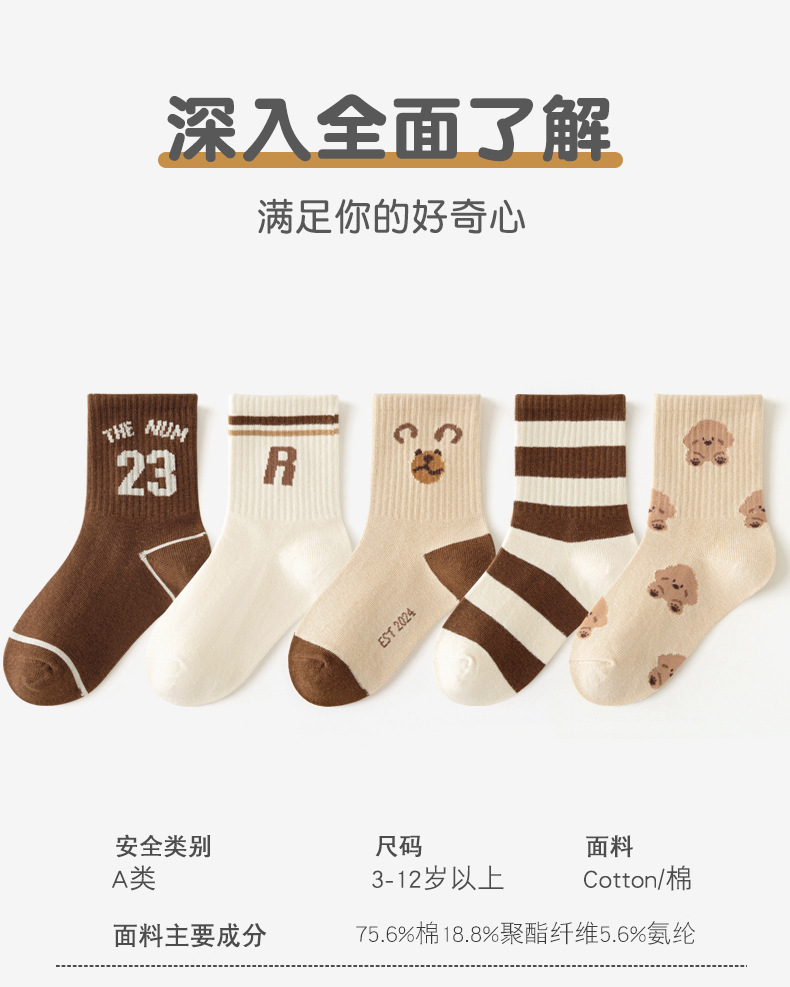 儿童袜子新款男童春秋季棉袜中筒袜卡通小熊女童运动袜青少年潮袜