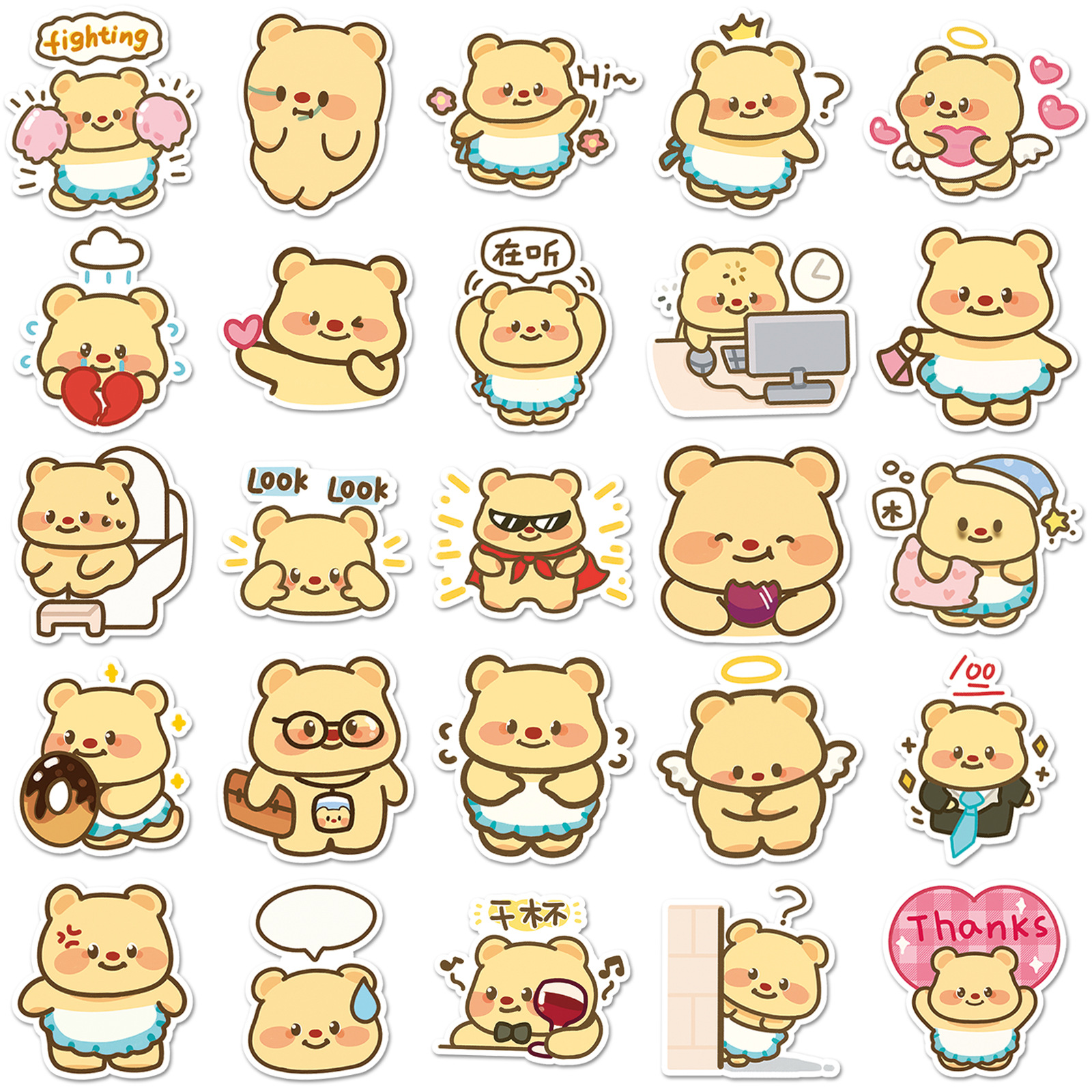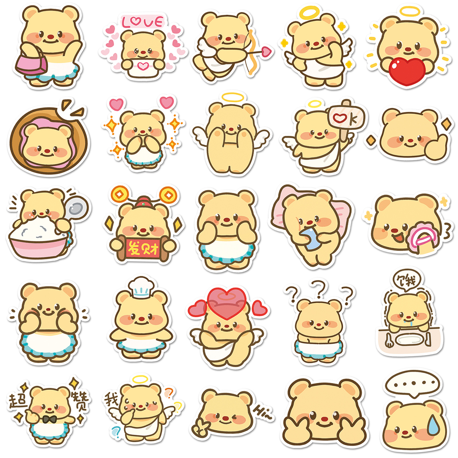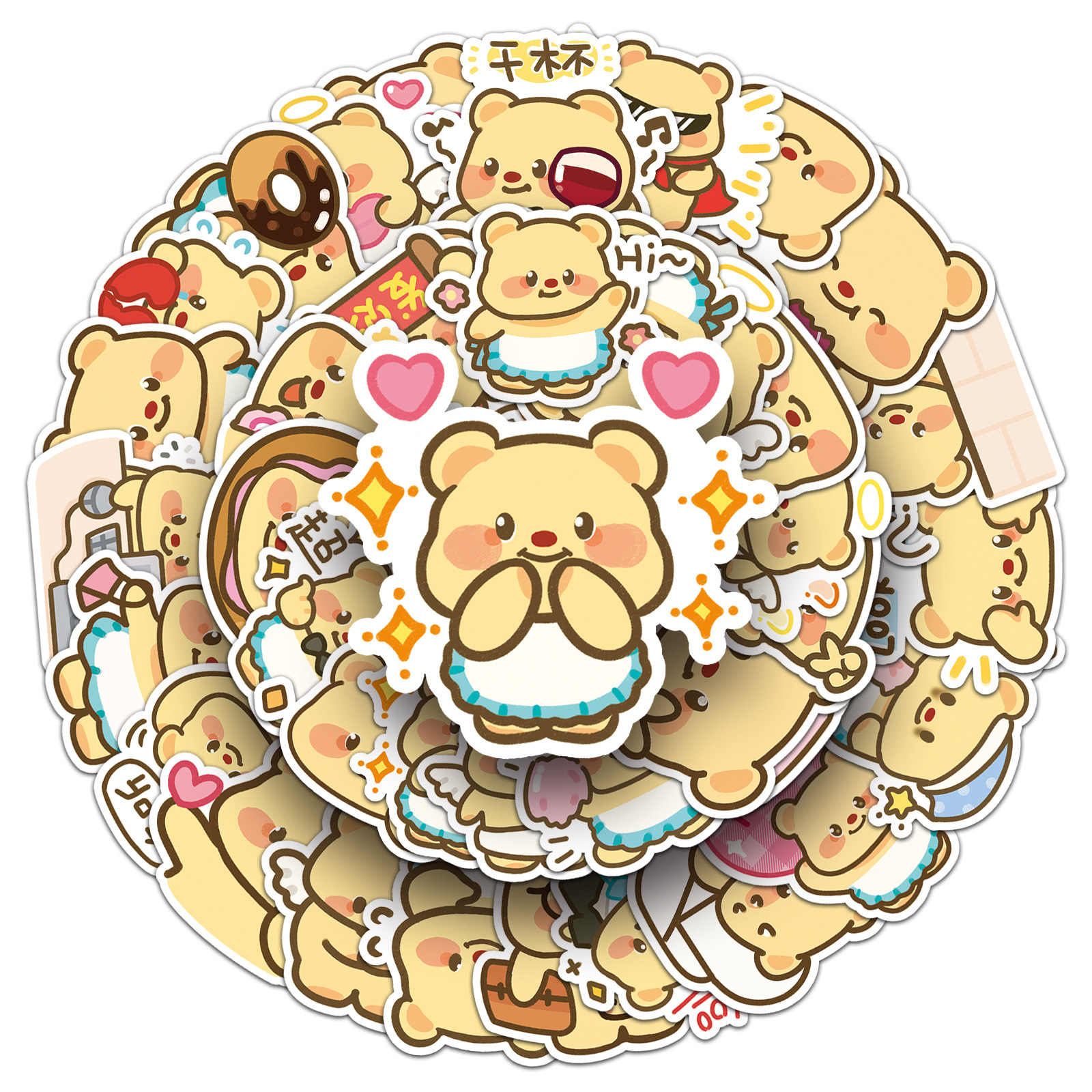 50张黄油小熊贴纸黄色卡通动物可爱防水装饰手帐本小麻薯贴纸批发