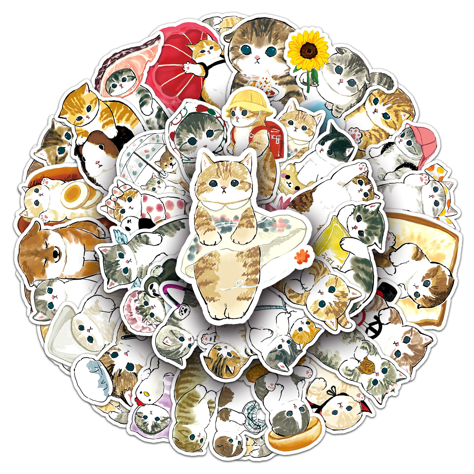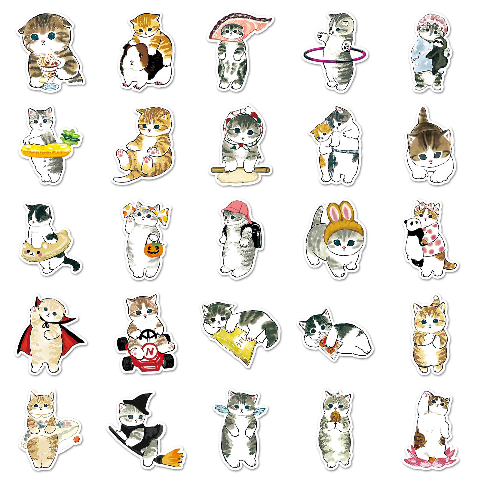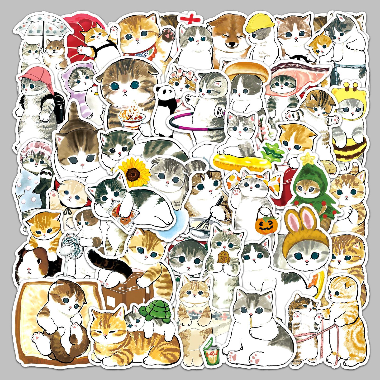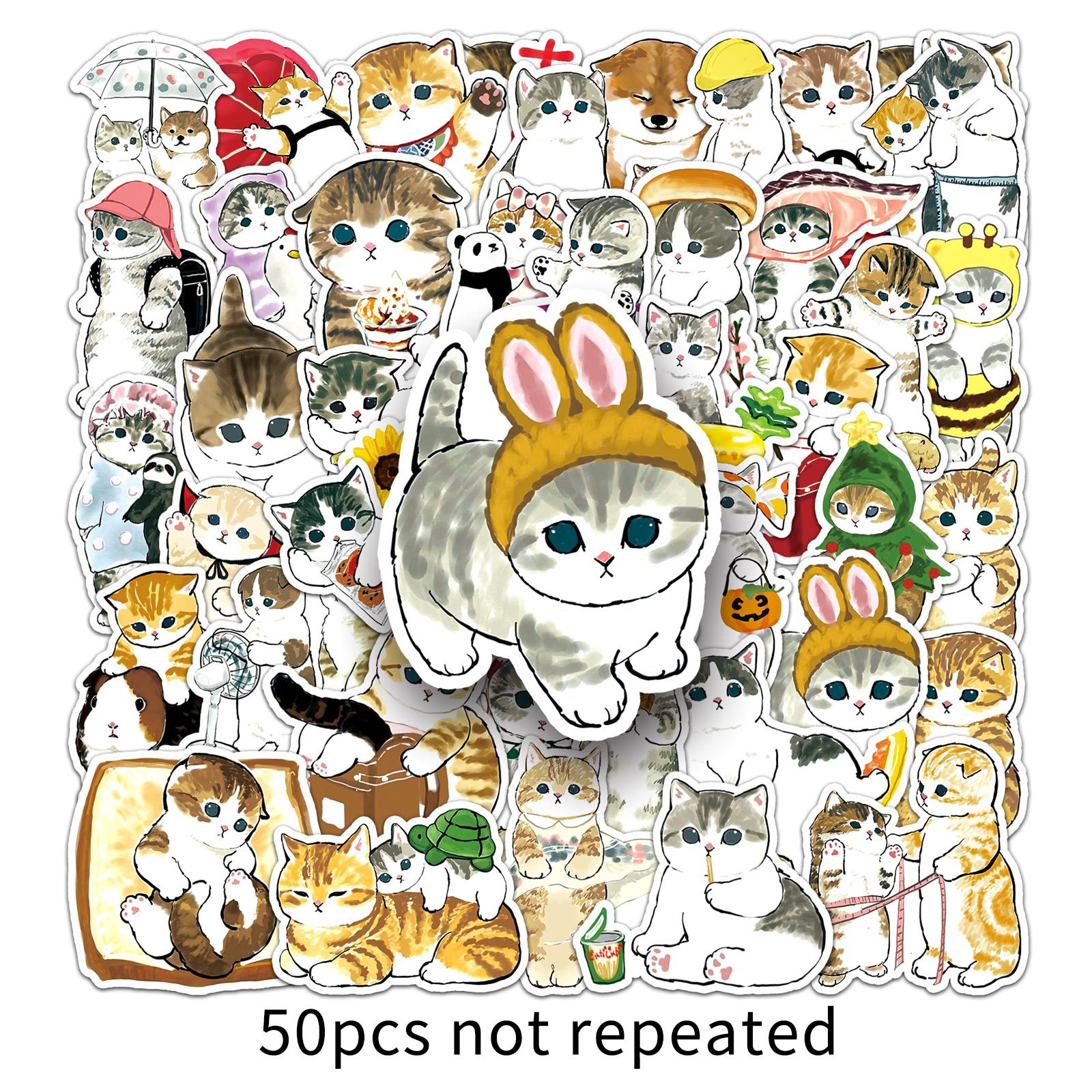 50张手绘小猫咪卡通动物涂鸦防水装饰行李箱咕卡吉他电脑手账贴纸