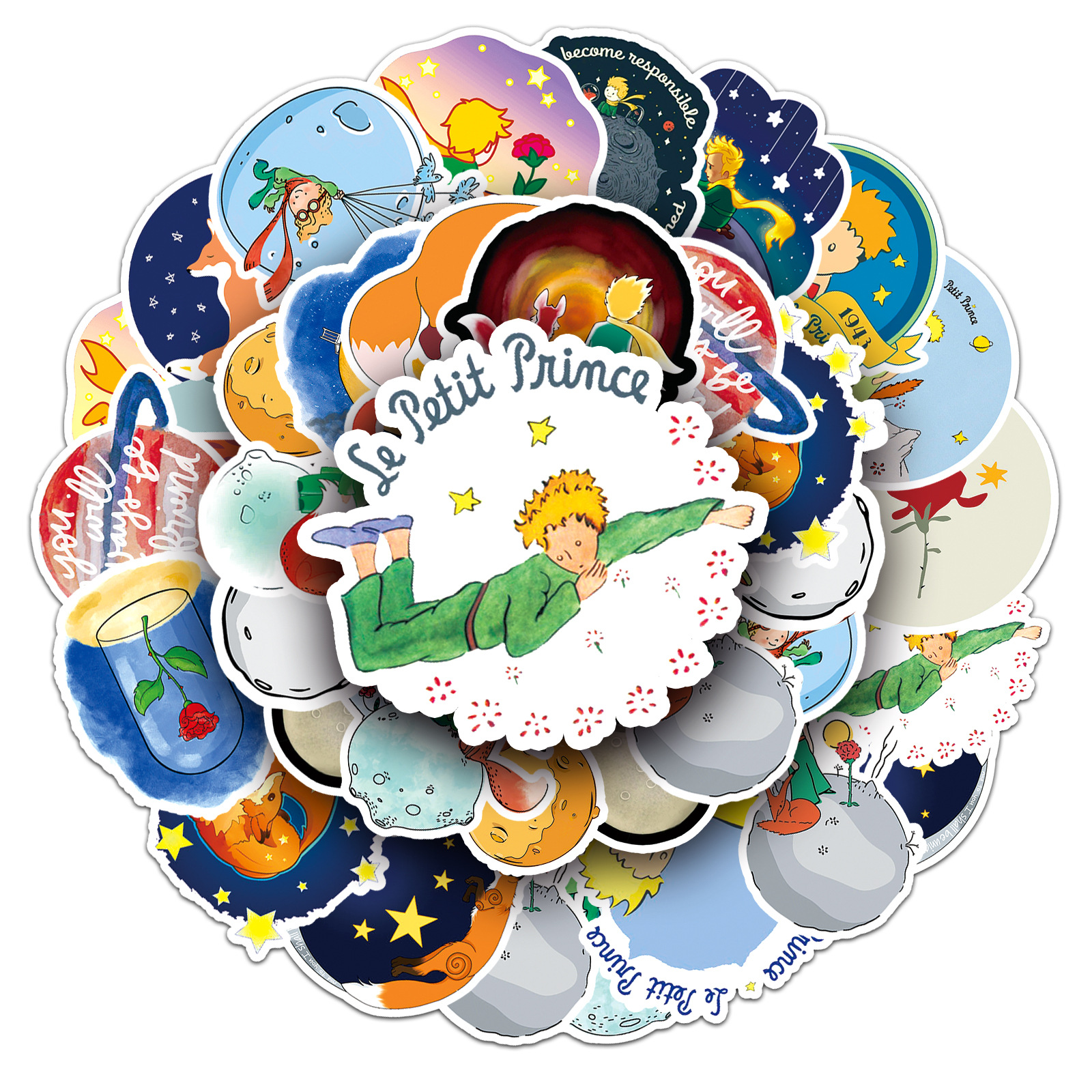 50张小王子手账贴纸卡通儿童diy手机壳笔记本奶茶杯贴画装饰防水