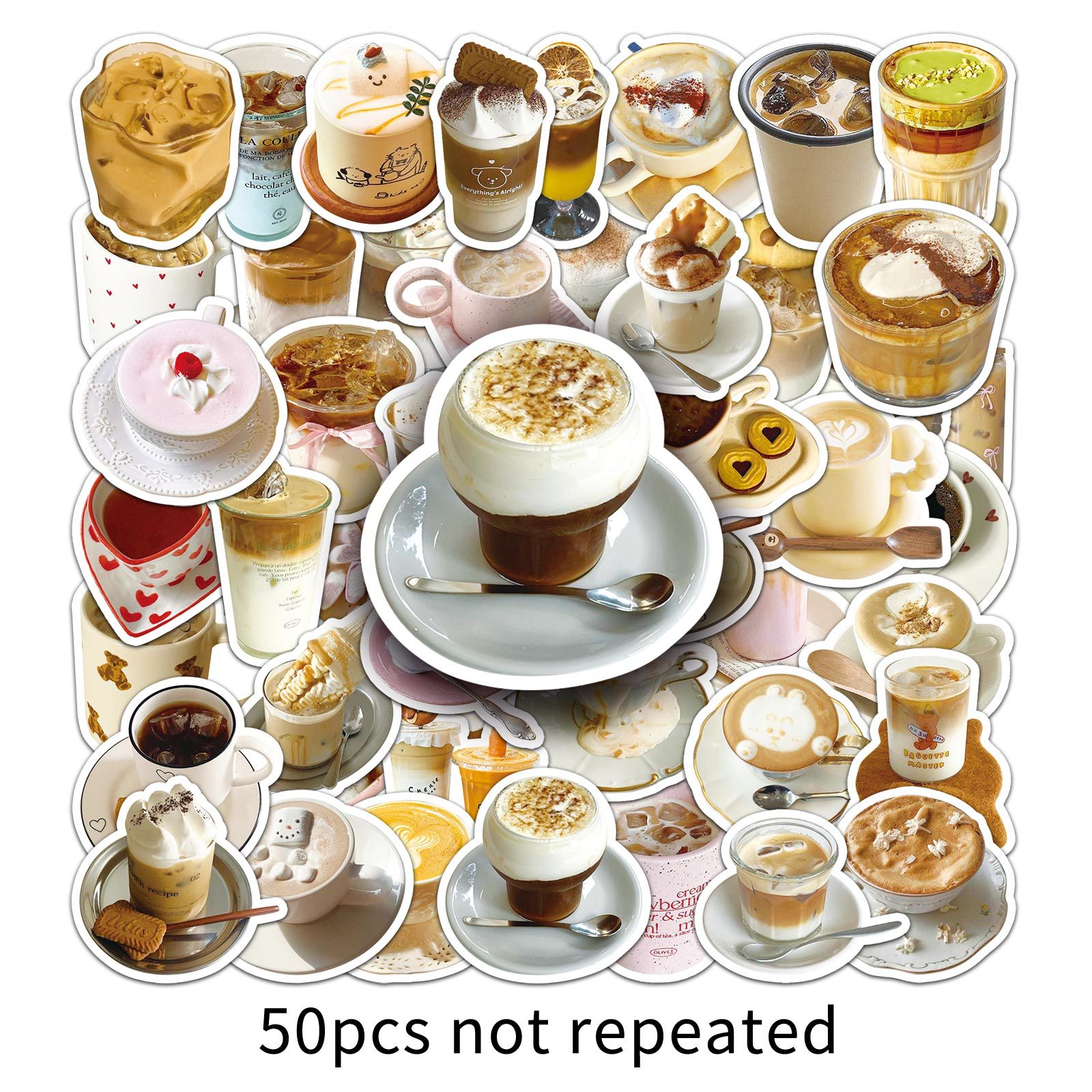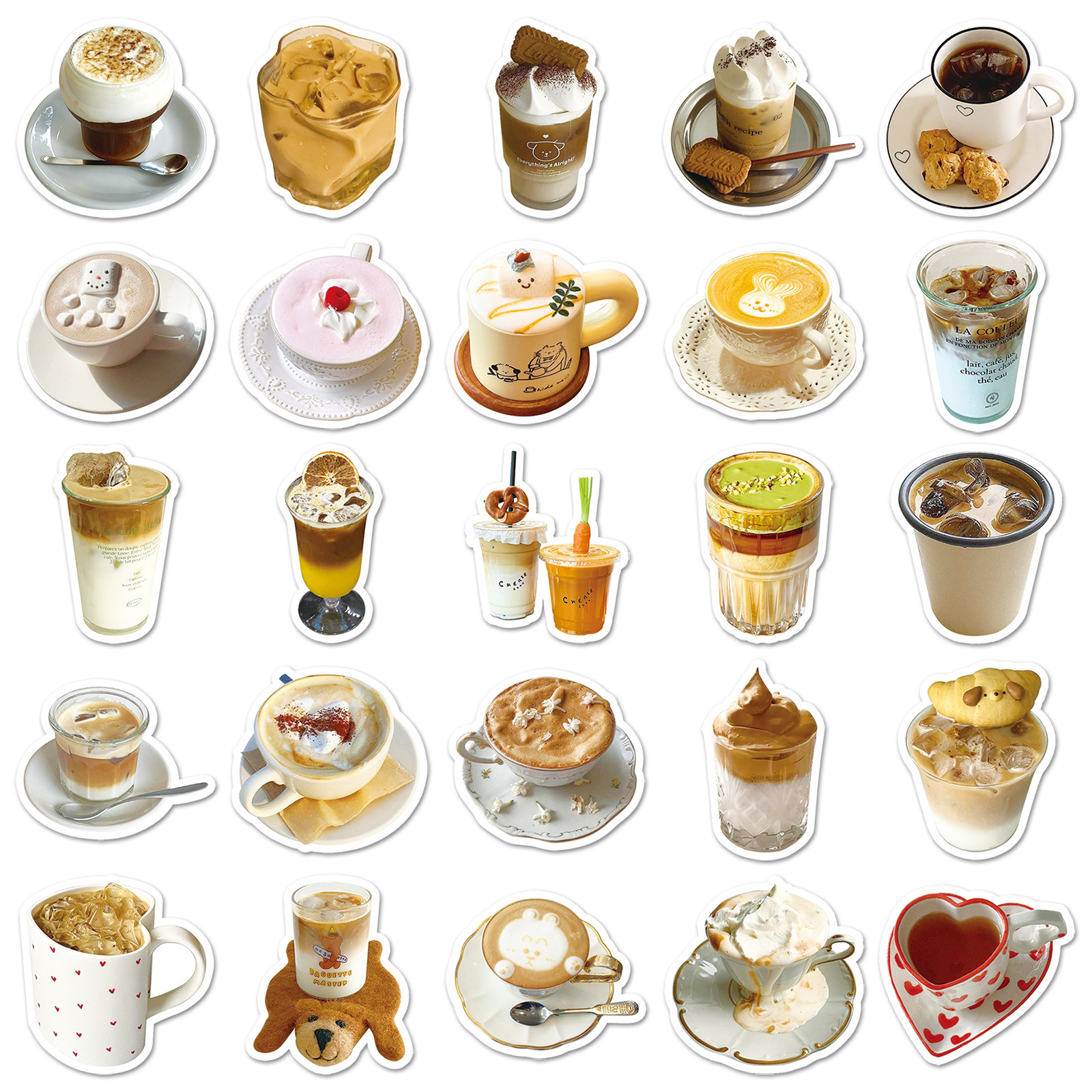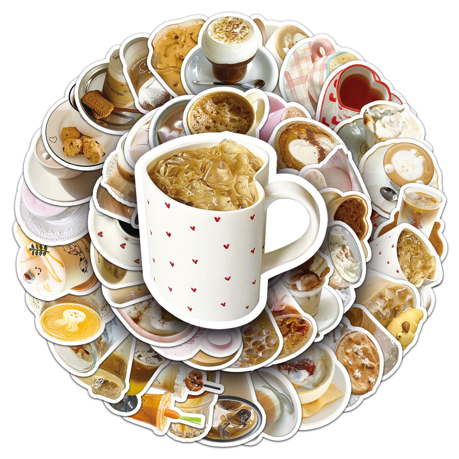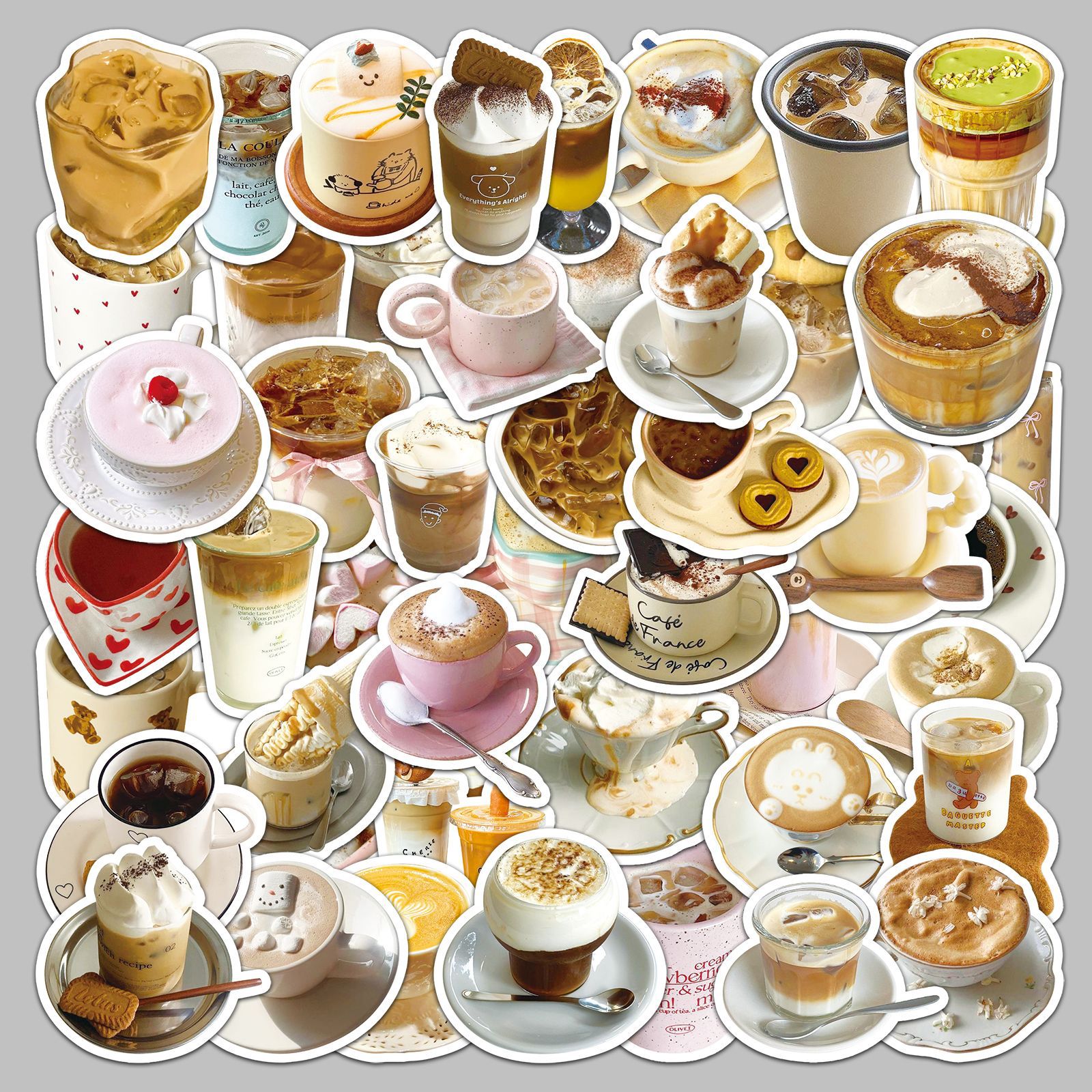50张咖啡ins风贴纸棕色饮品食物美食DIY装饰手帐本防水可滴胶贴纸