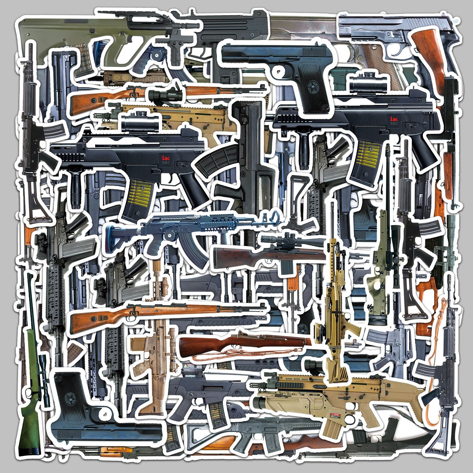 50张军事风枪支手账贴纸儿童炫酷贴画diy手机壳电脑水杯防水装饰
