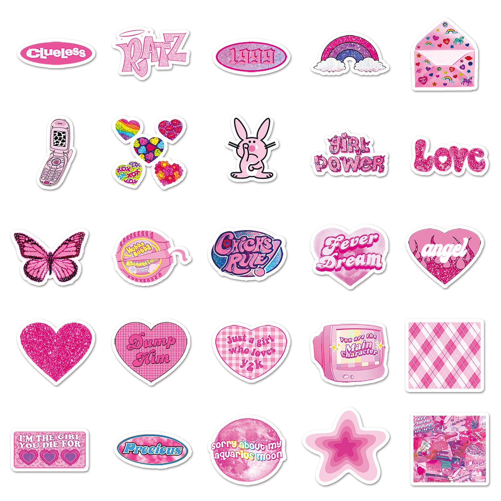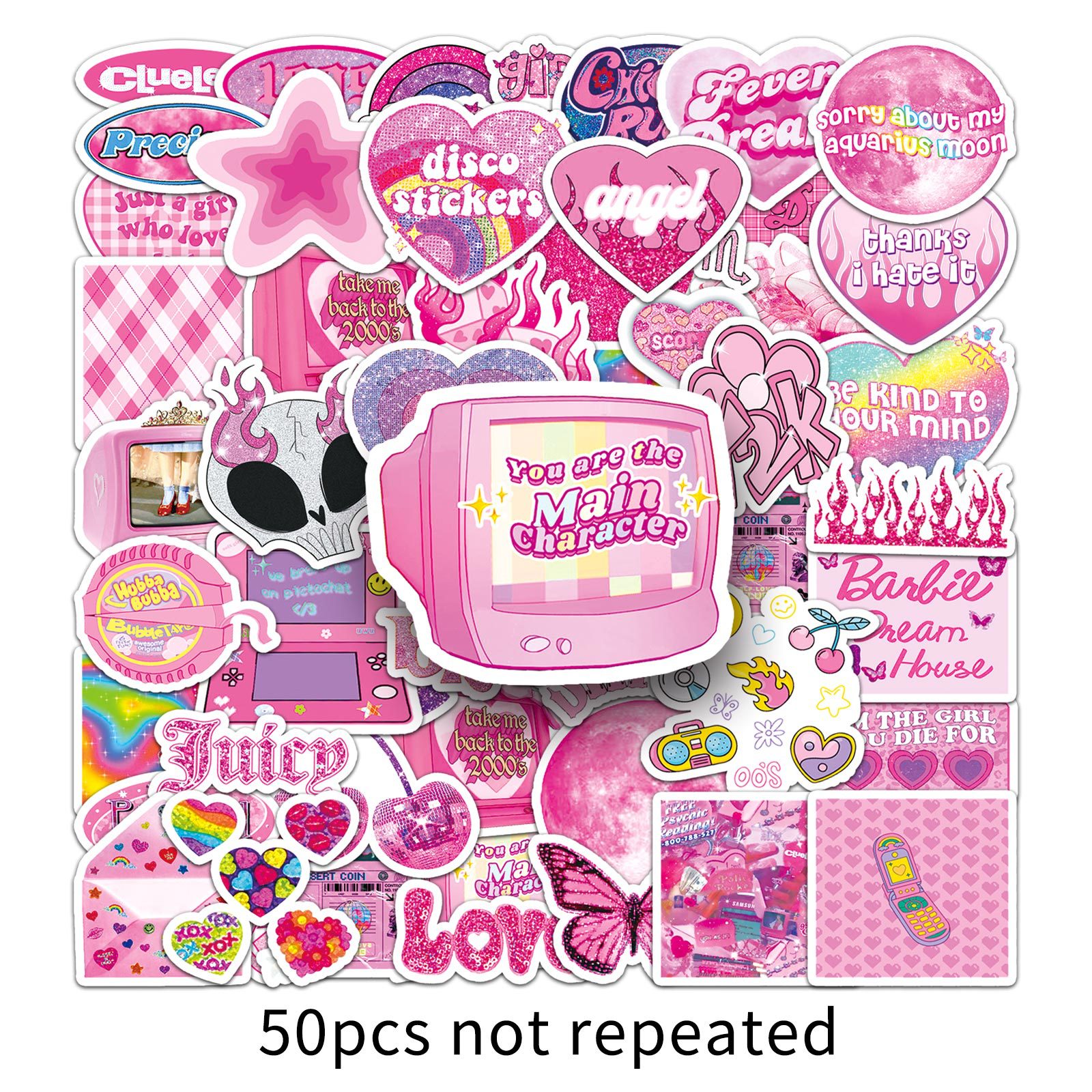 50张Y2K千禧风手账贴纸多巴胺文艺贴画DIY手机壳电脑水杯装饰防水
