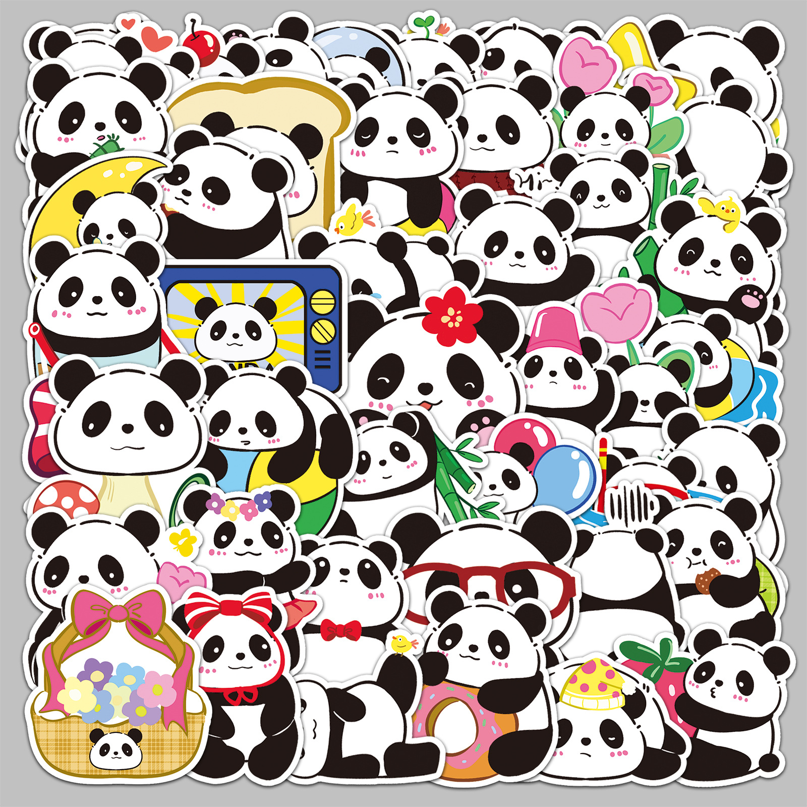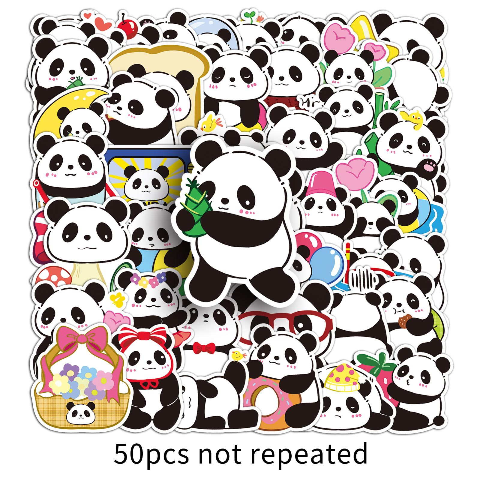 50张原创卡通熊猫贴纸可爱动物跨境防水装饰手帐本小麻薯贴纸批发