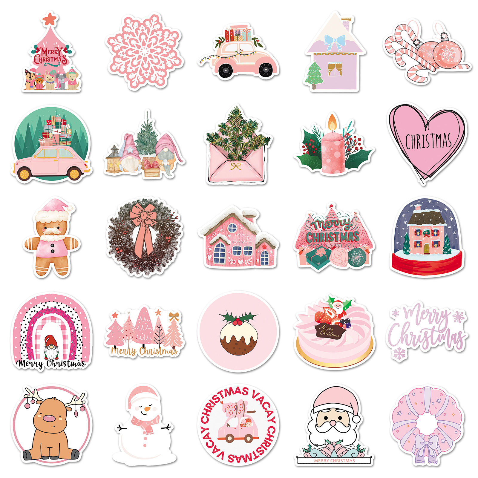 50张粉色圣诞节贴纸Christmas防水节日装饰DIY贺卡手帐本咕卡贴纸