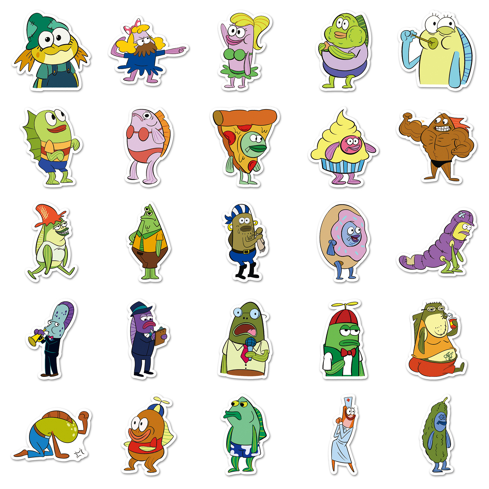 51张海绵宝宝比奇堡路人鱼贴纸手绘动画人物防水装饰水杯滴胶贴纸