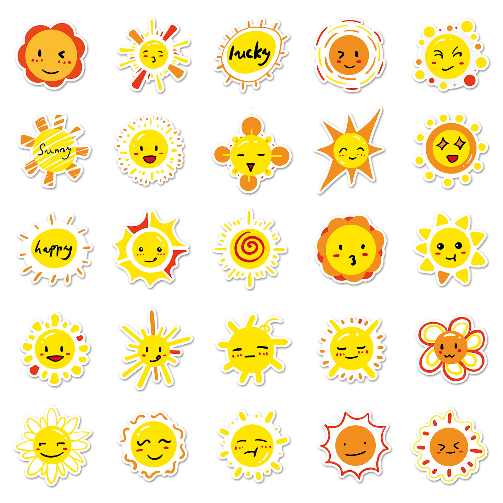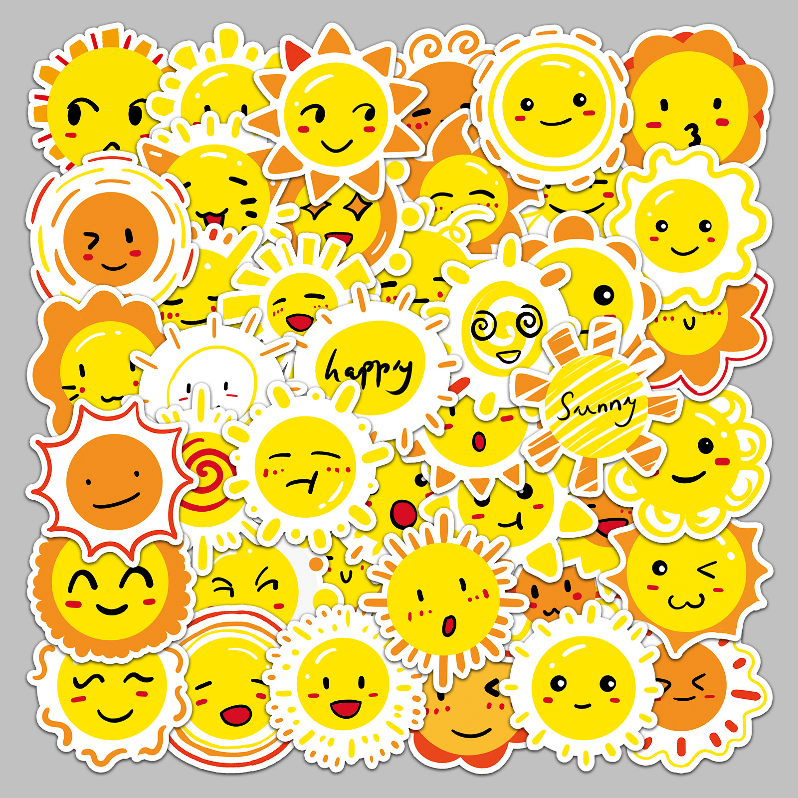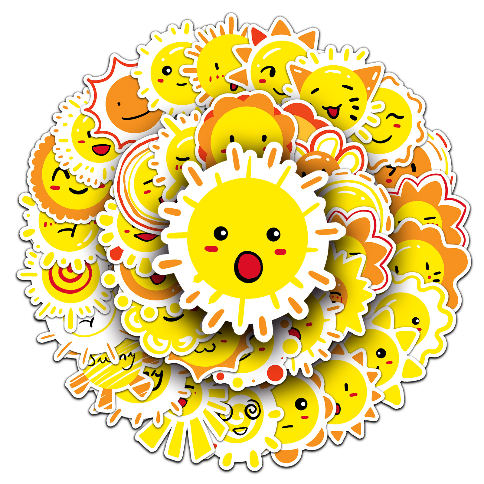 50张卡通太阳手账贴纸晴天开心儿童贴画原创手机壳笔记本防水装饰