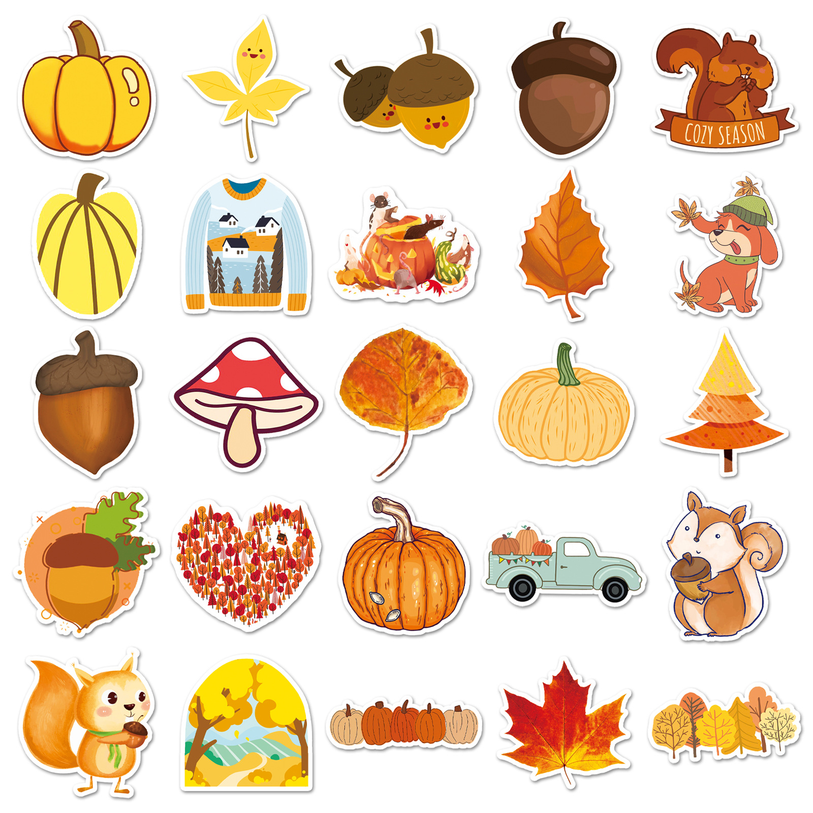 50张秋天创意行李箱贴纸创意防水涂鸦贴纸滑板车电脑平板卡通装饰