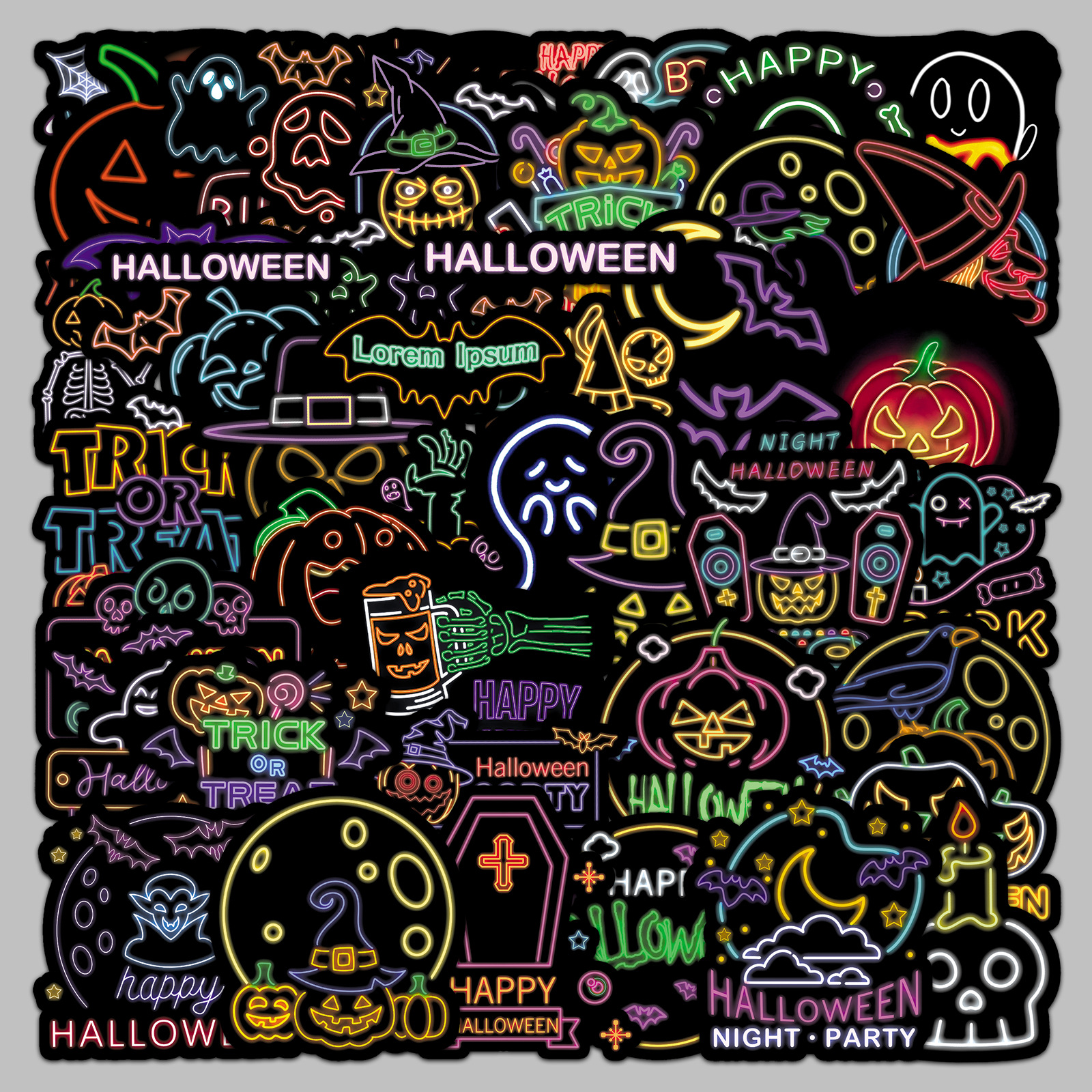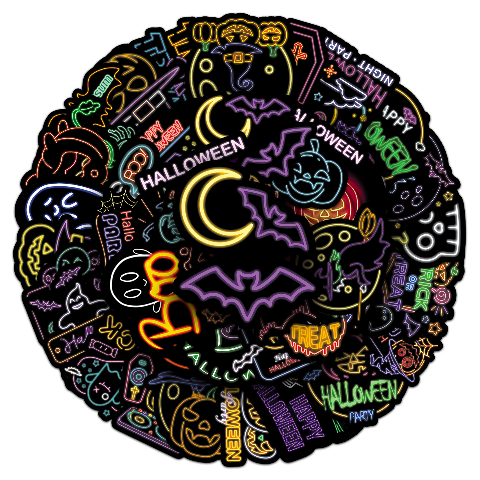 50张霓虹万圣节贴纸节日Halloween防水装饰DIY贺卡笔记本水杯贴纸