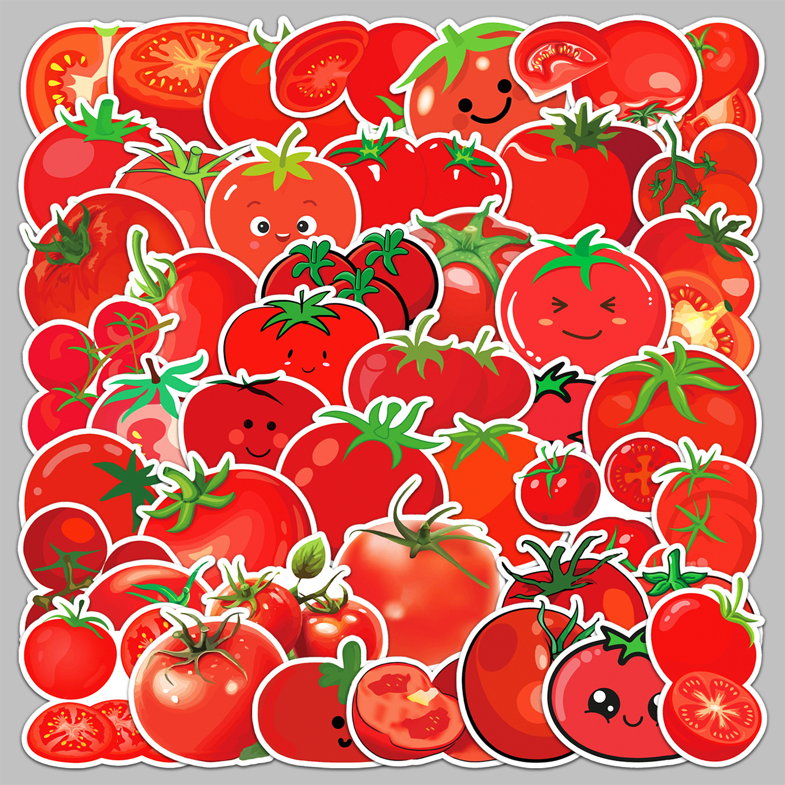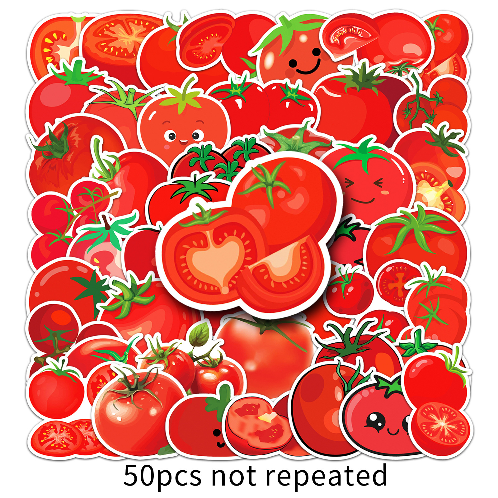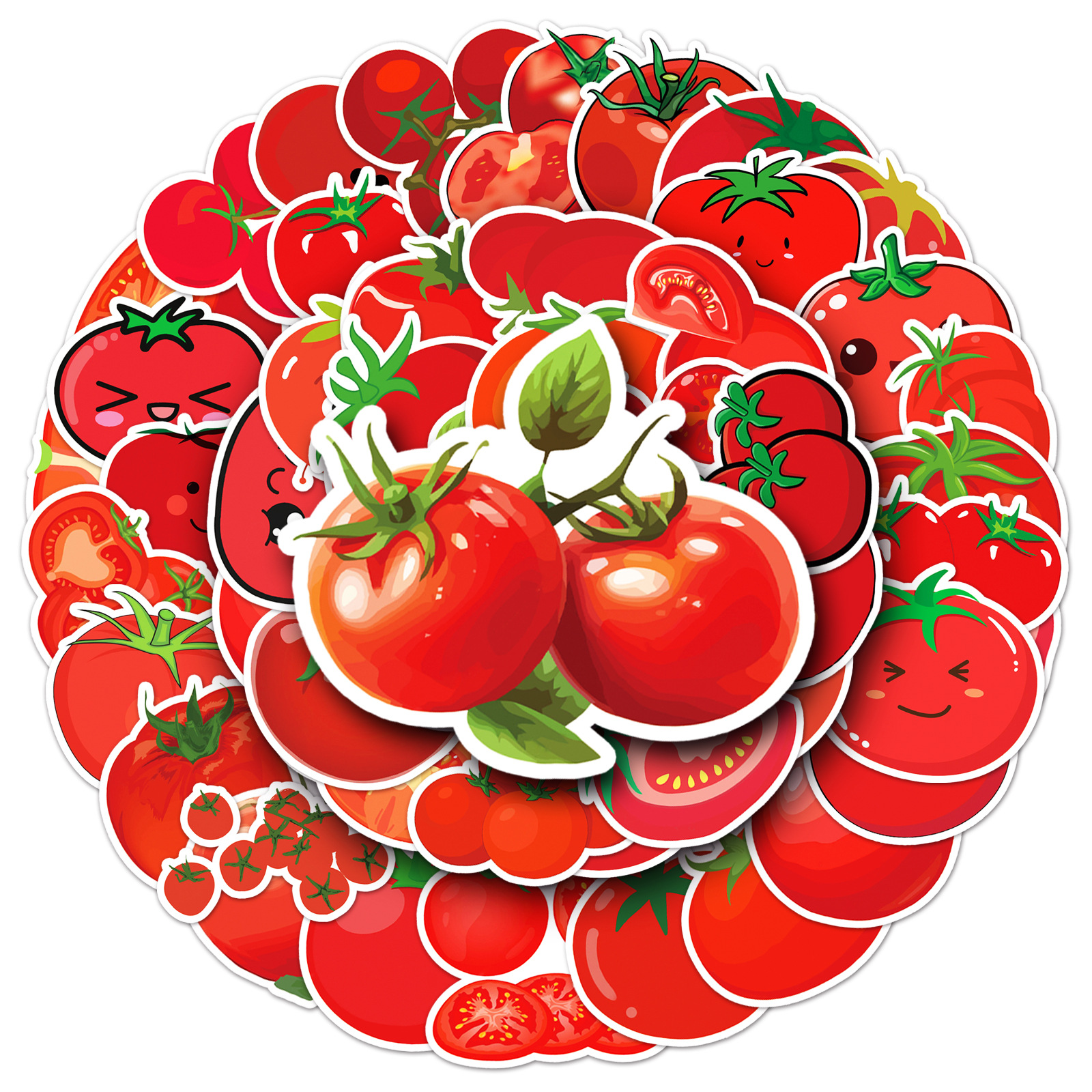 50张番茄卡通贴纸西红柿蔬菜红色防水装饰笔记本电脑手机贴纸批发