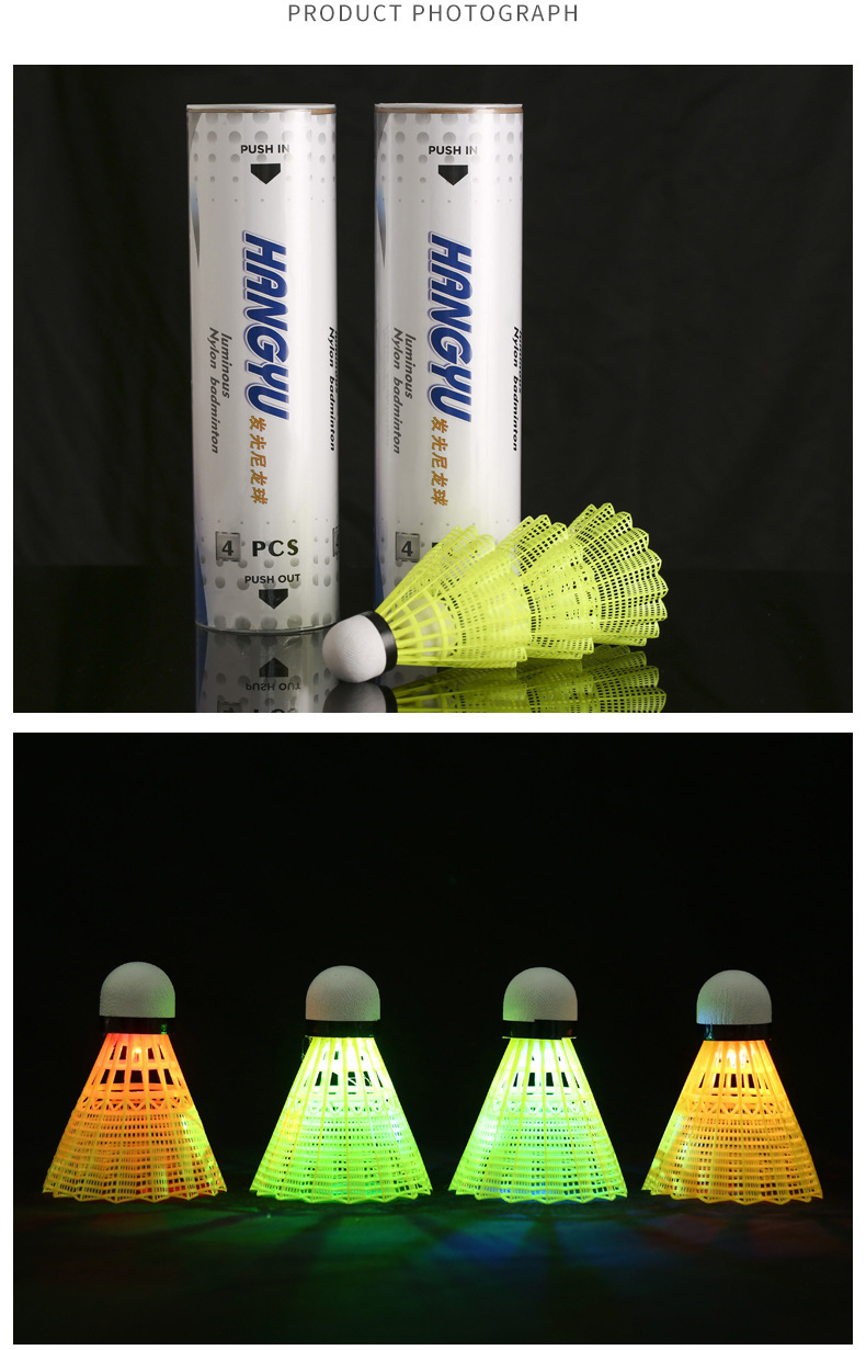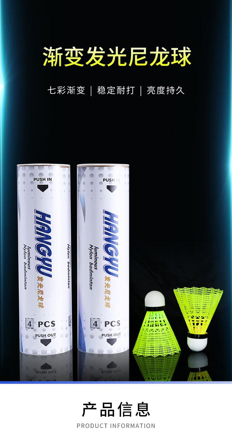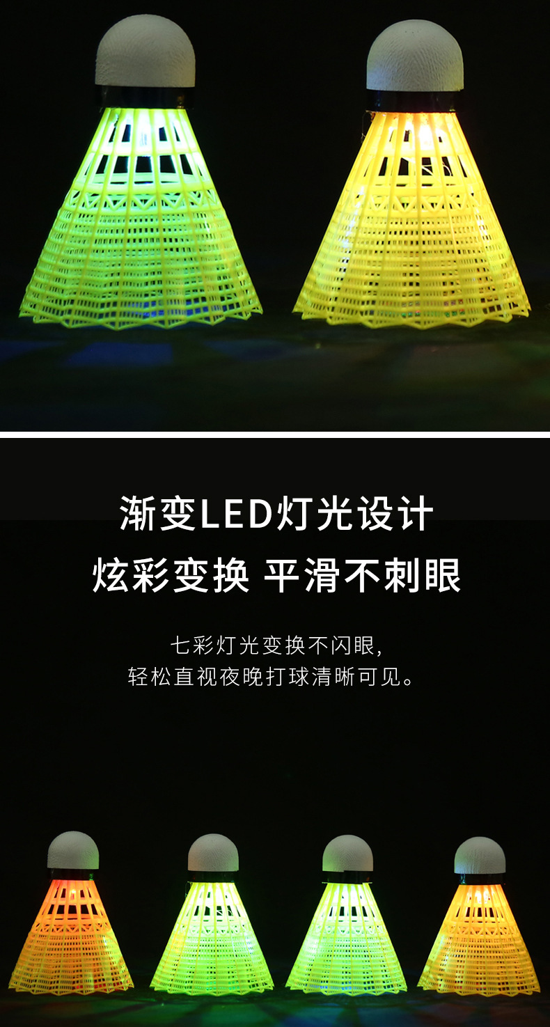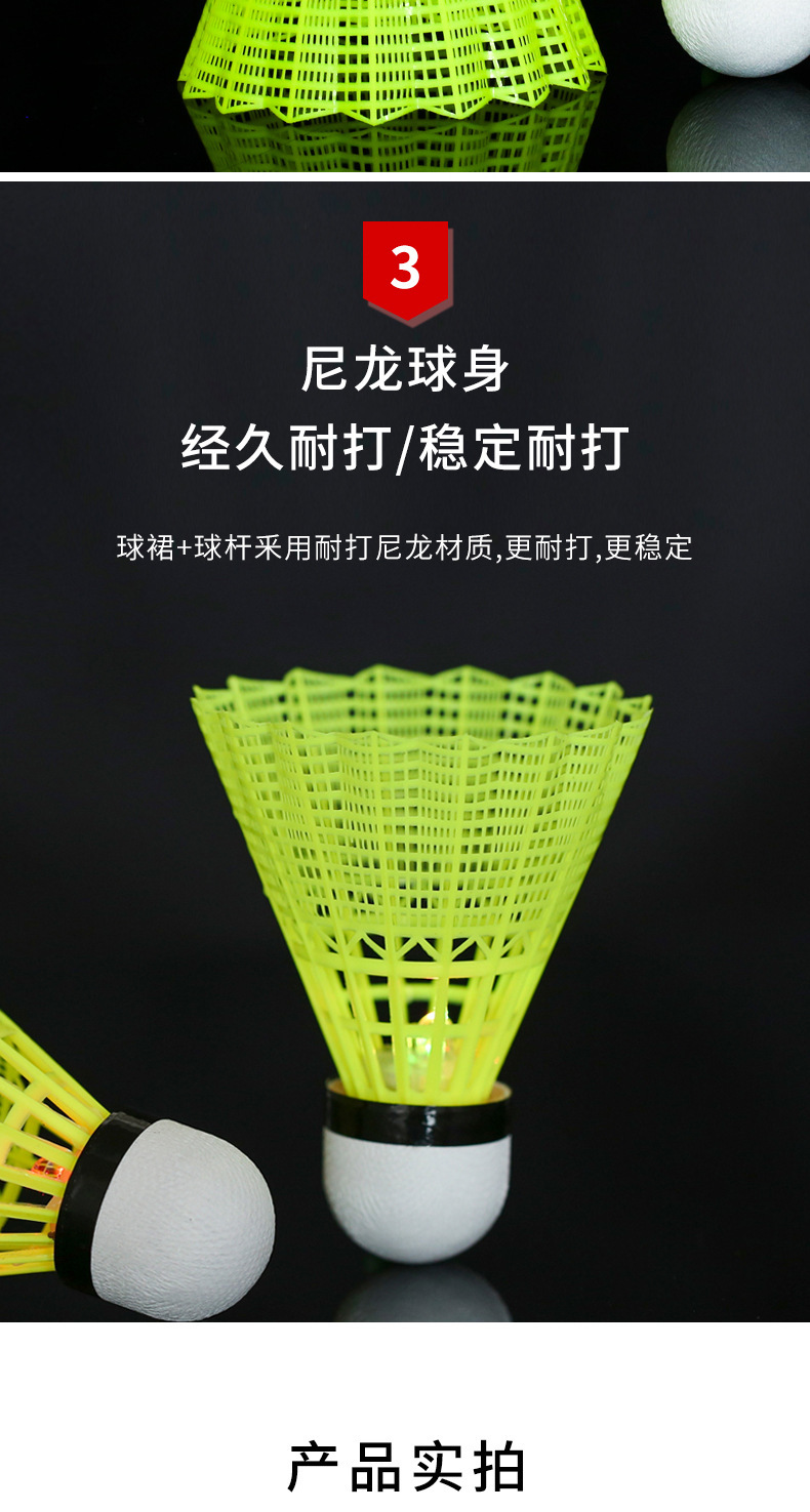 4只装带灯发光LED夜间荧光耐打塑料尼龙球航宇夜光发亮羽毛球批发
