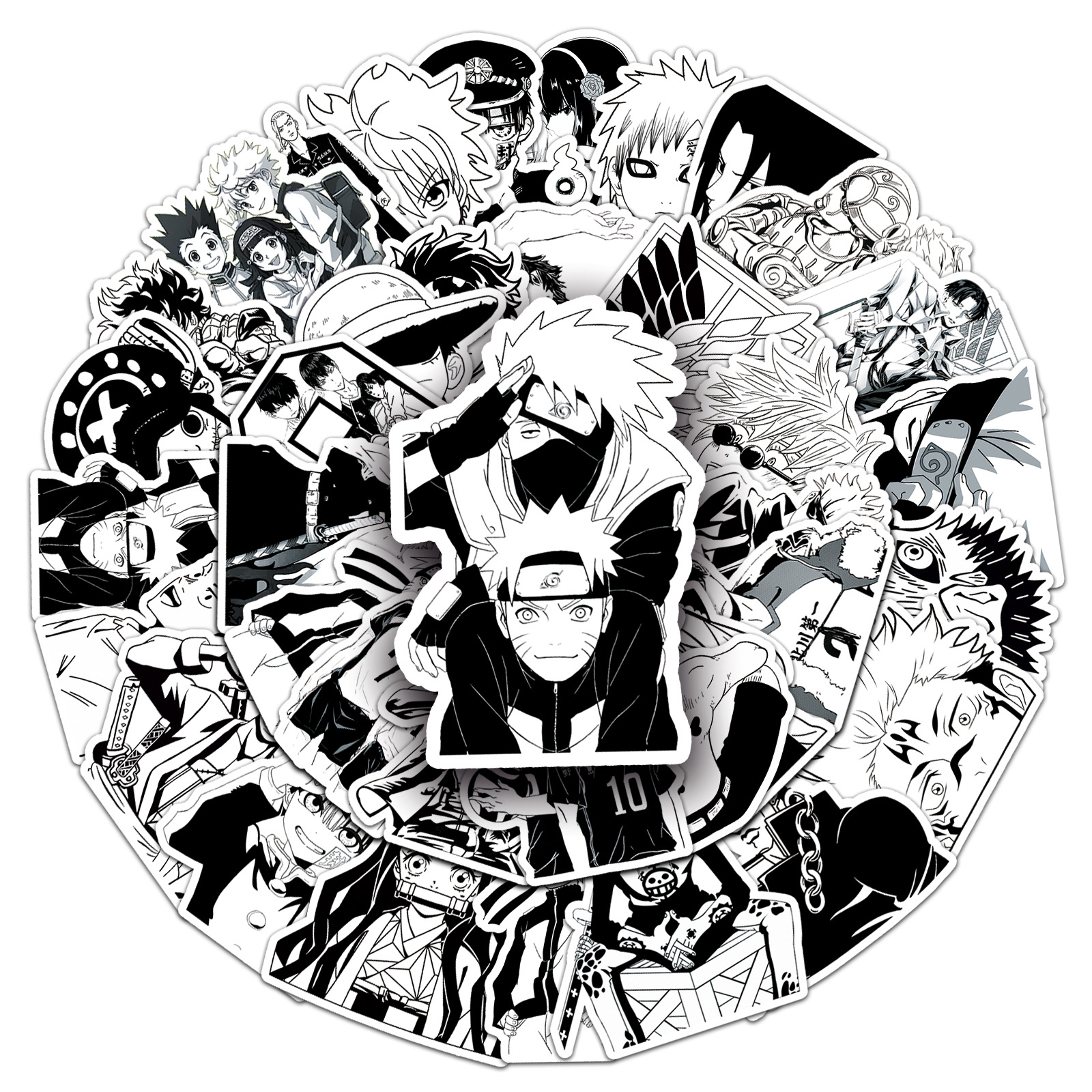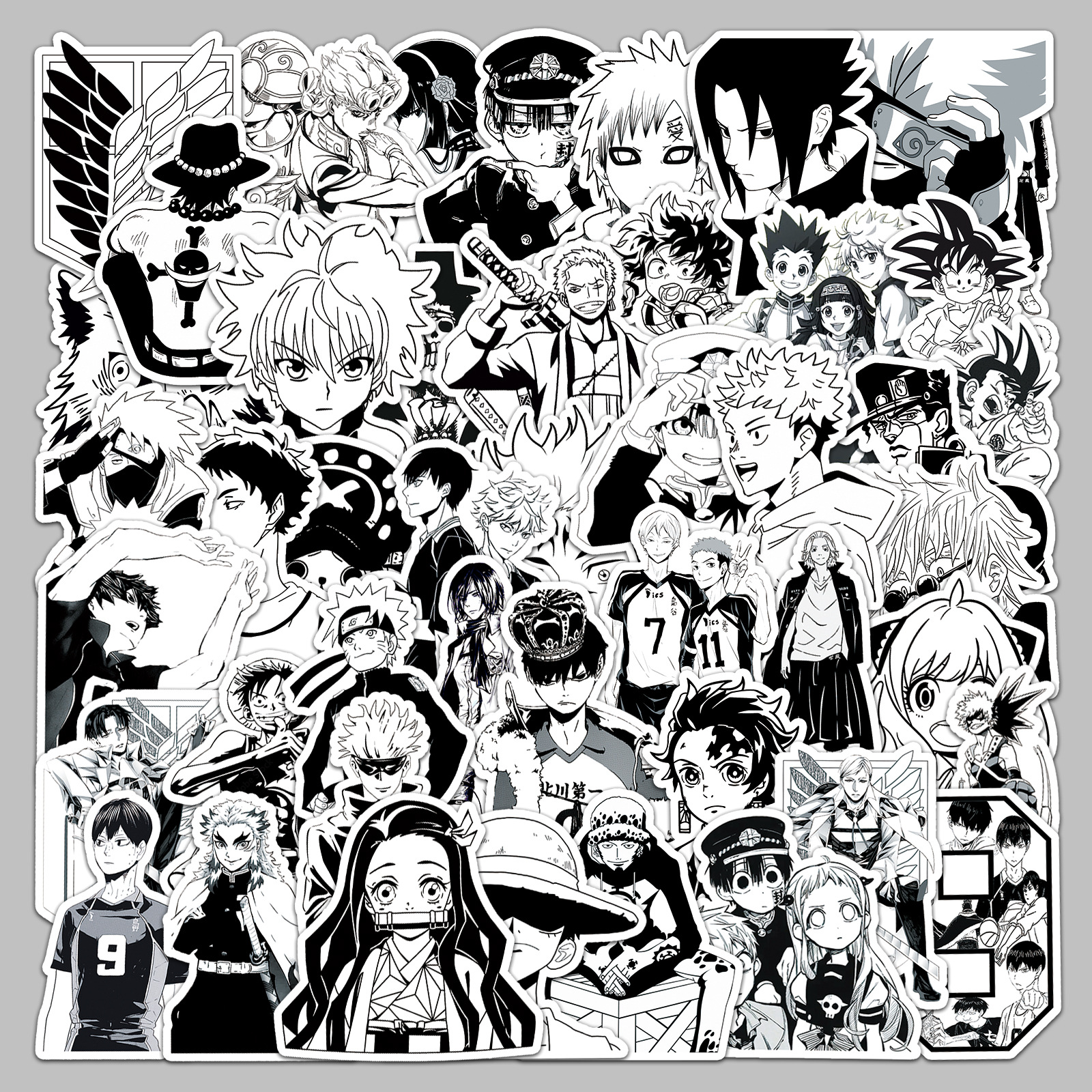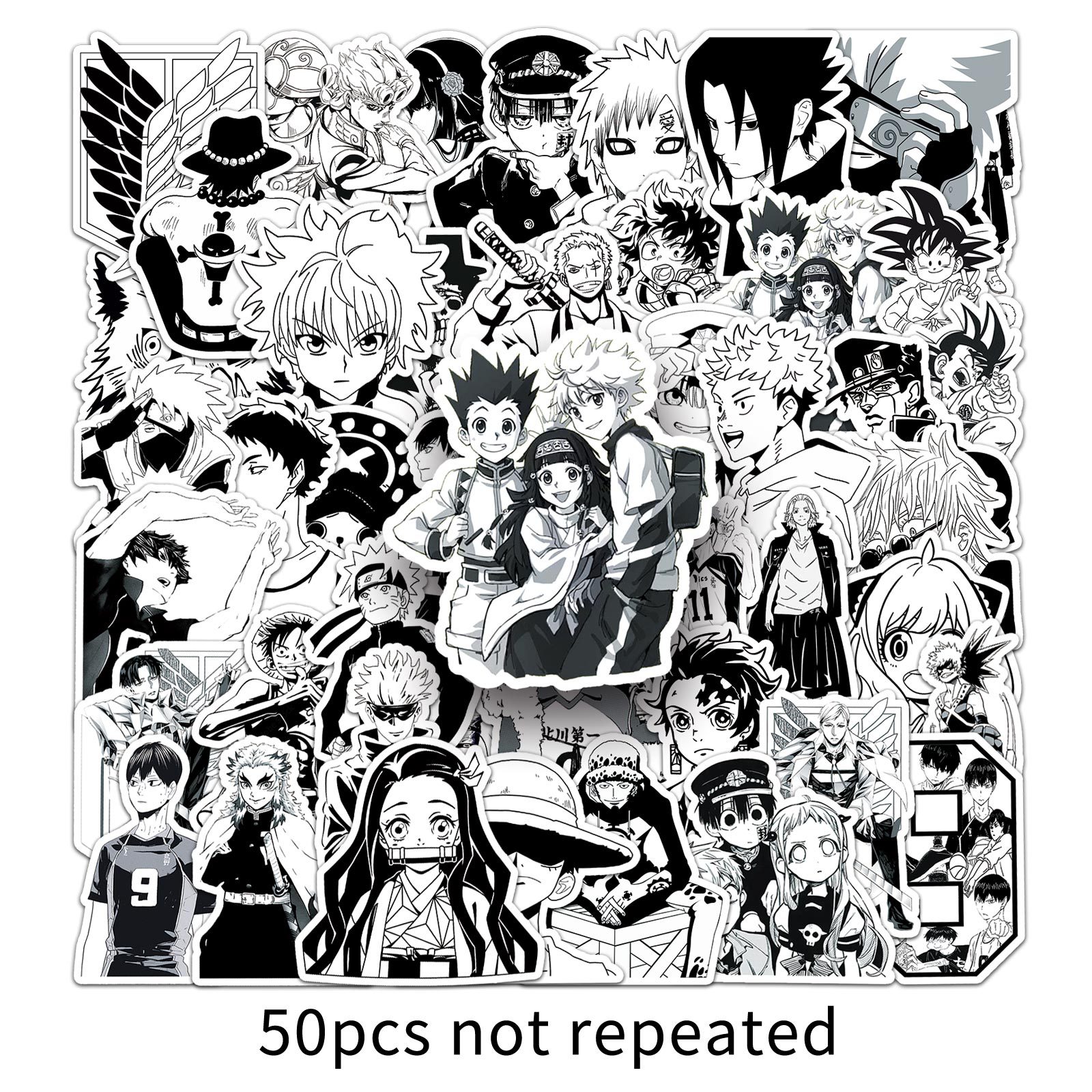 50张黑白日漫手账贴纸漫画周边儿童贴画创意手机壳笔记本防水装饰